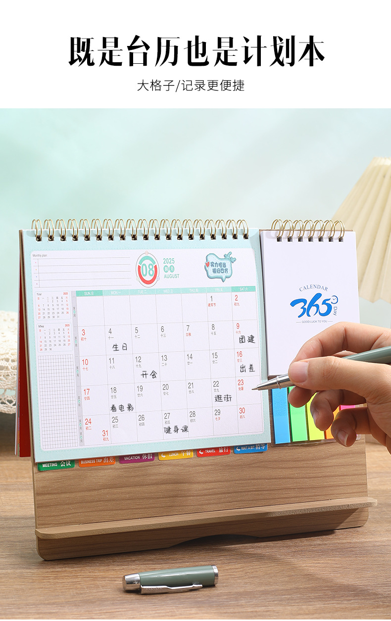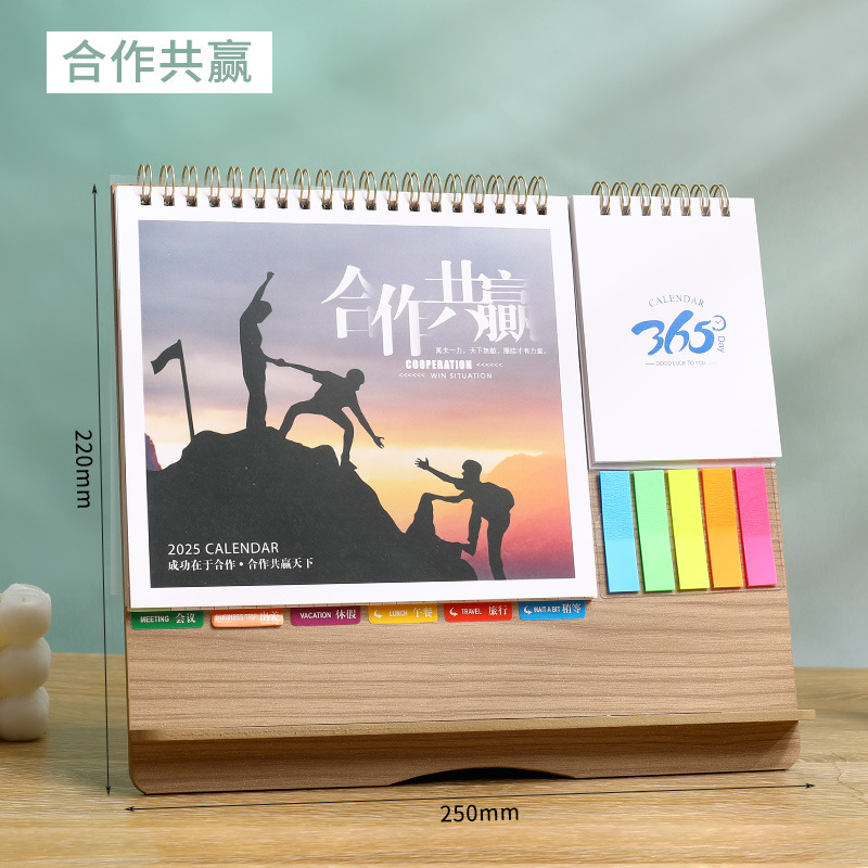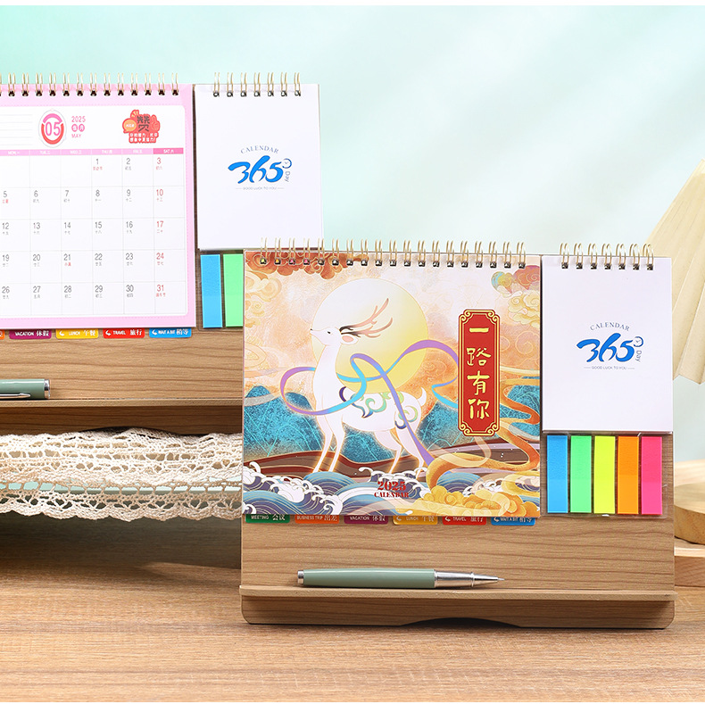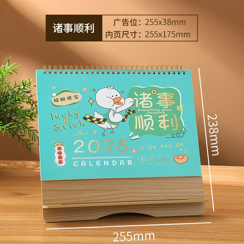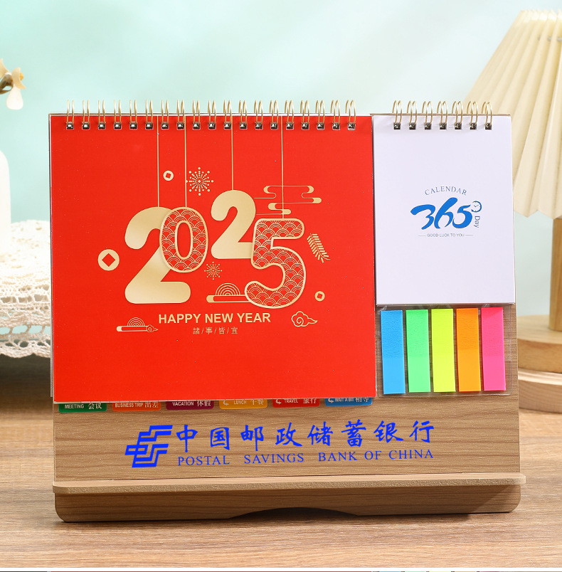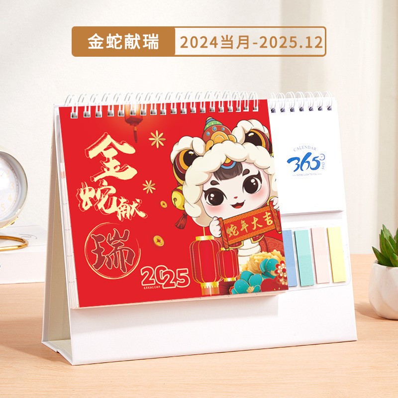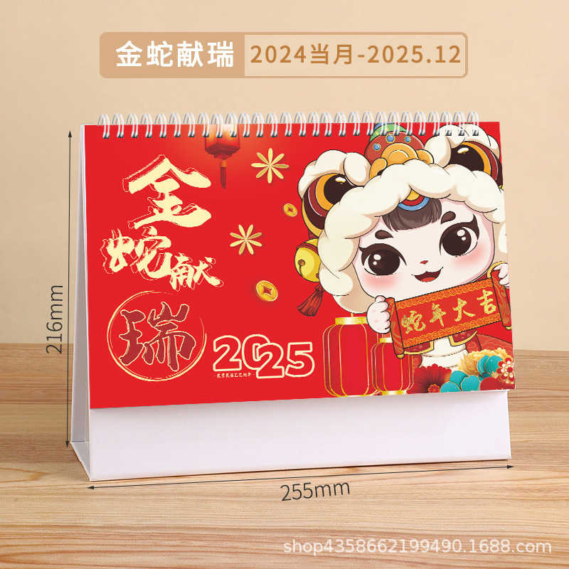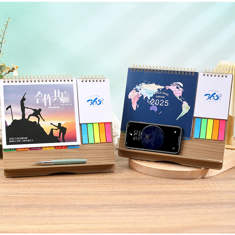 2025台历定制定做新年高端木质架蛇年日历小摆件桌面创意本小批量
