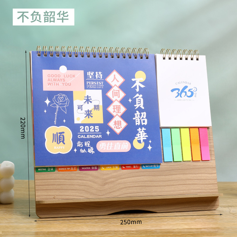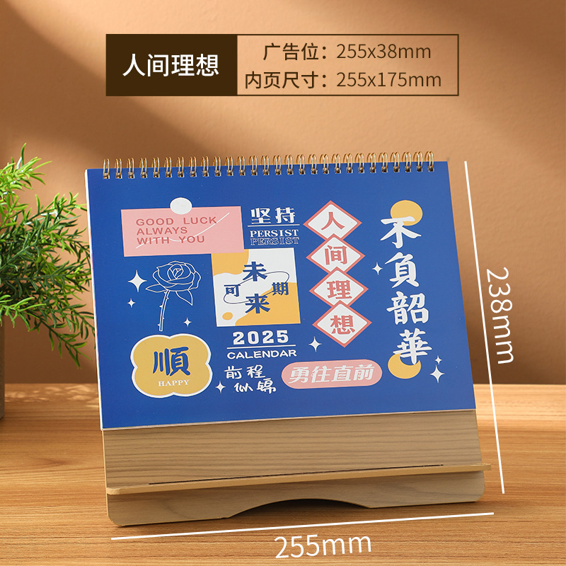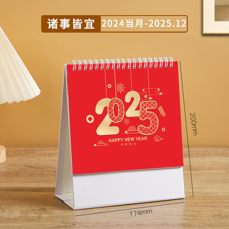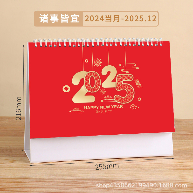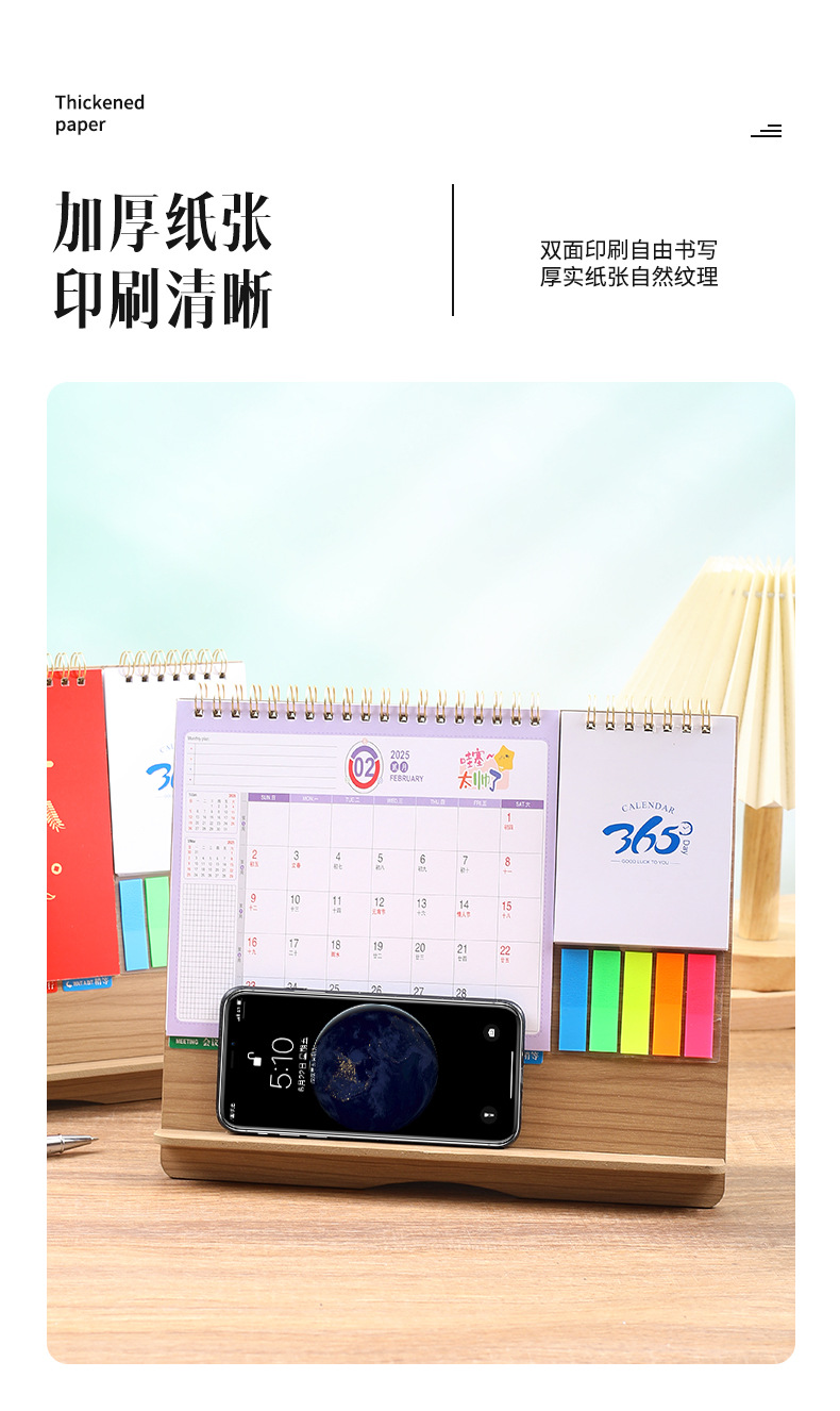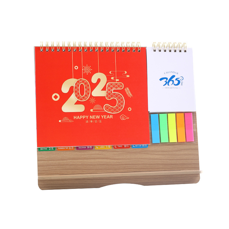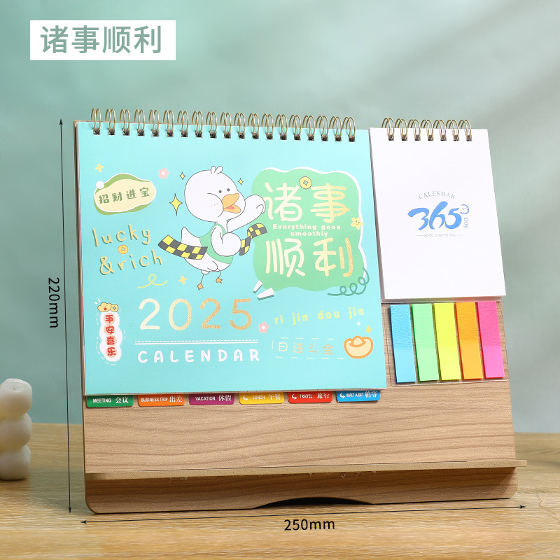 2025台历定制定做新年高端木质架蛇年日历小摆件桌面创意本小批量
