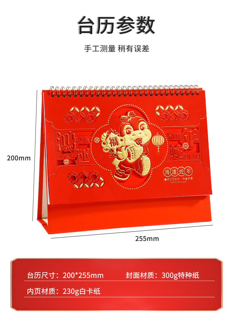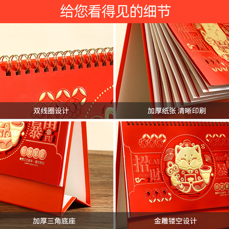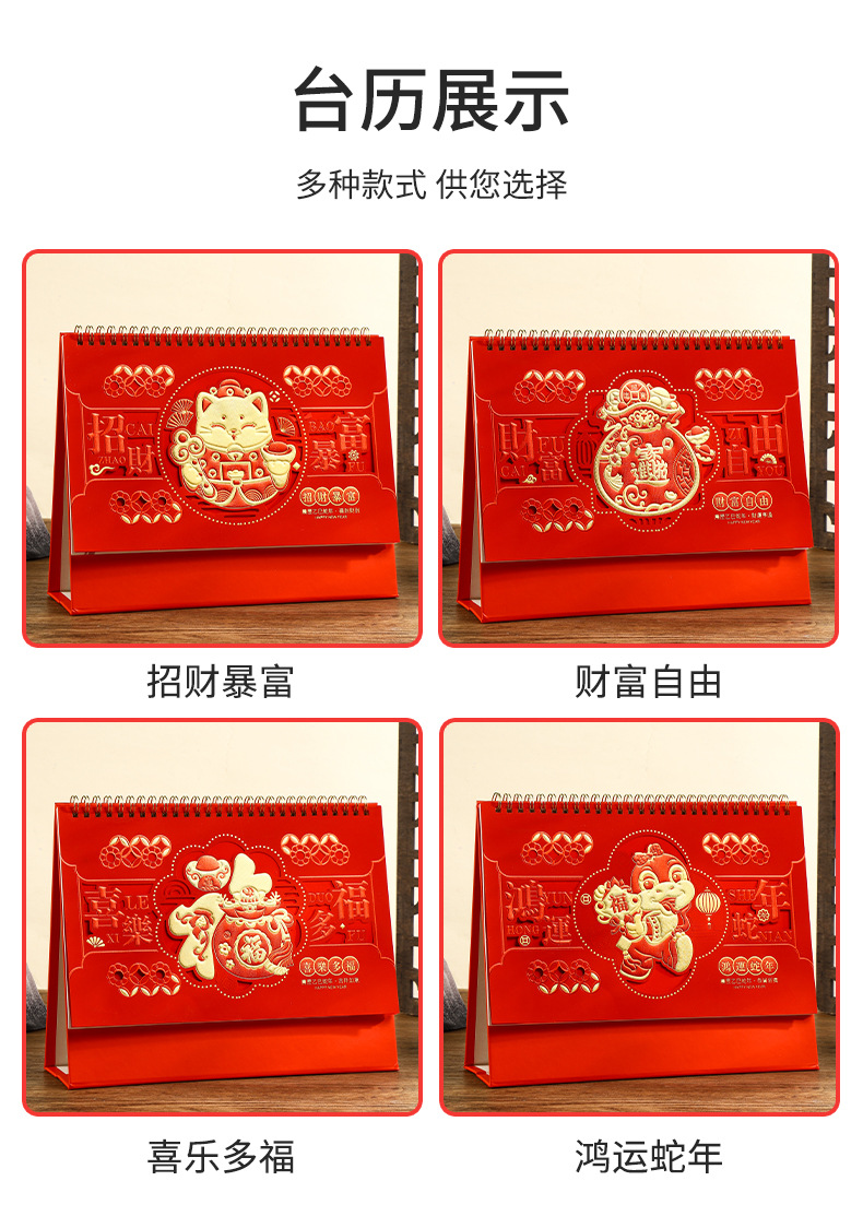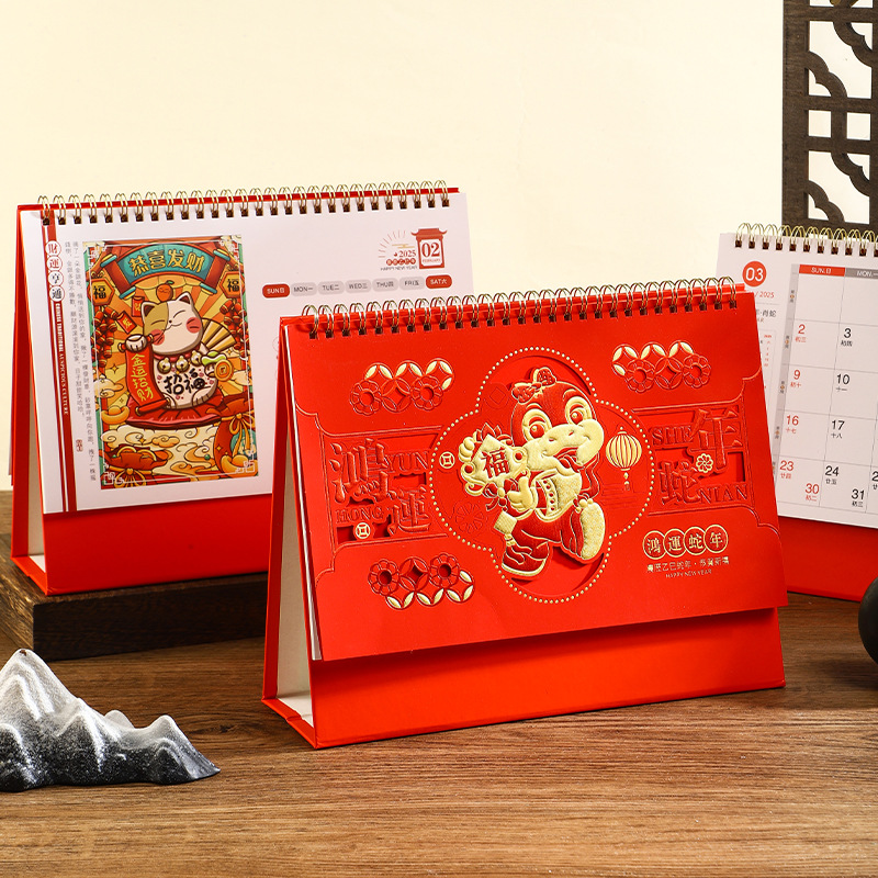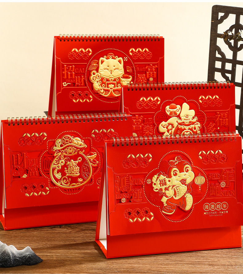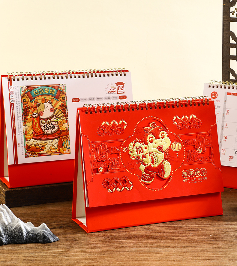 2025年日历台历定制定做蛇年新款创意小摆件桌面月历喜庆中国风