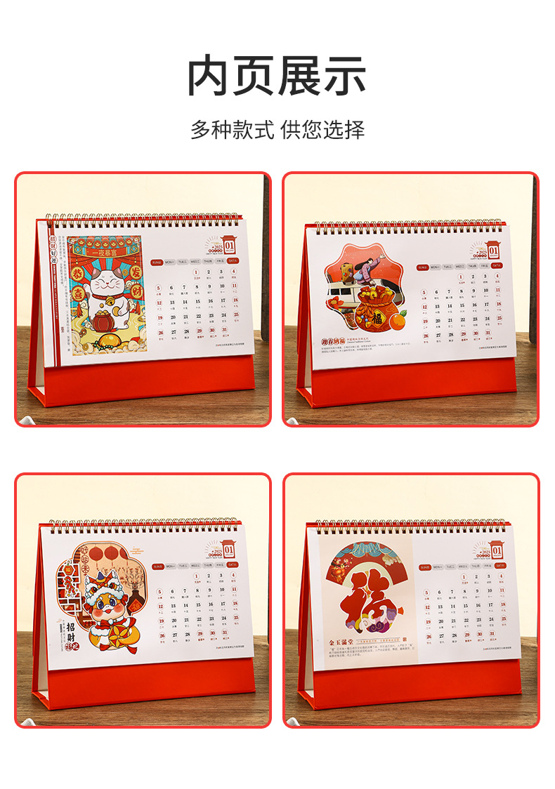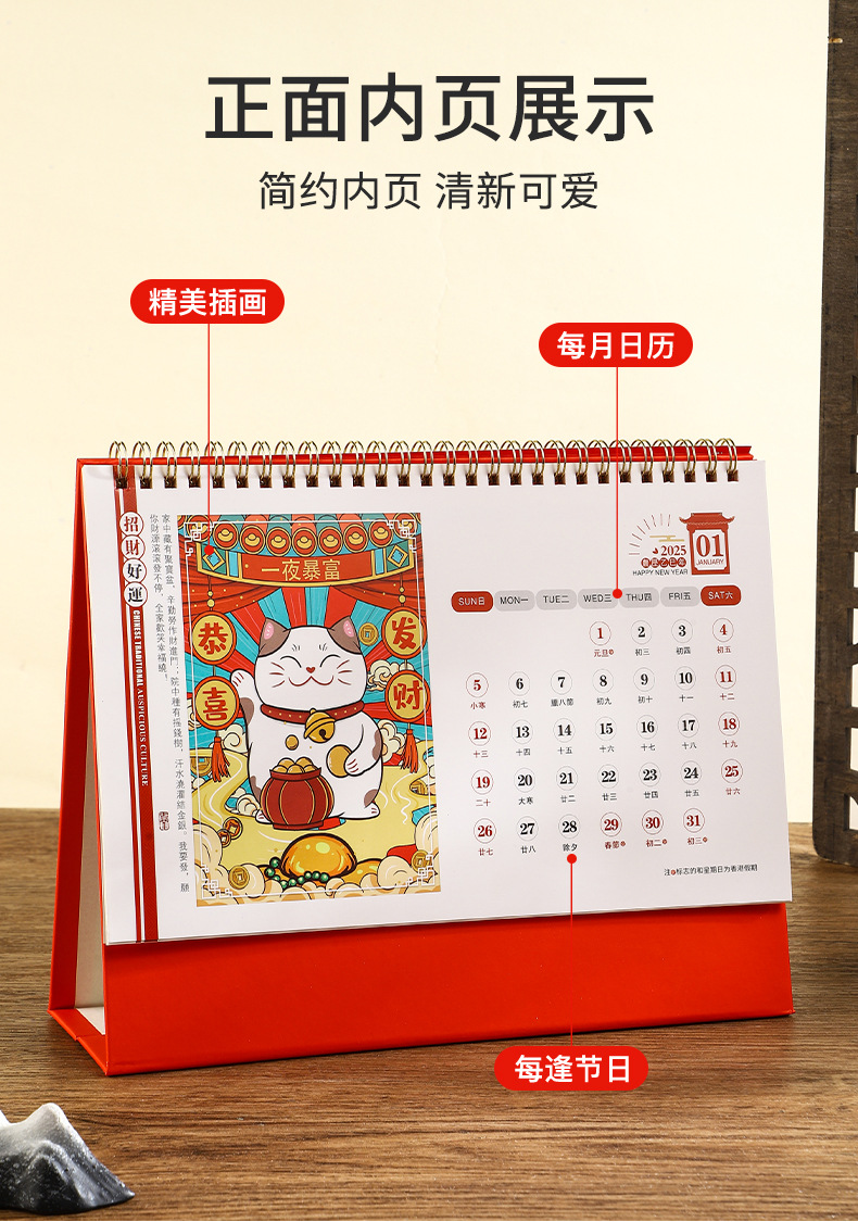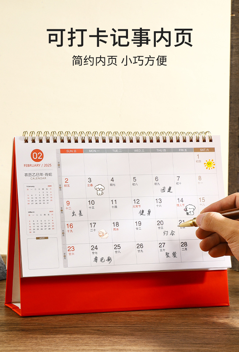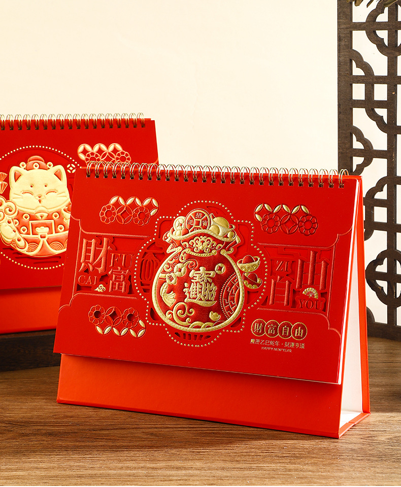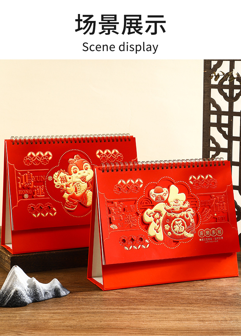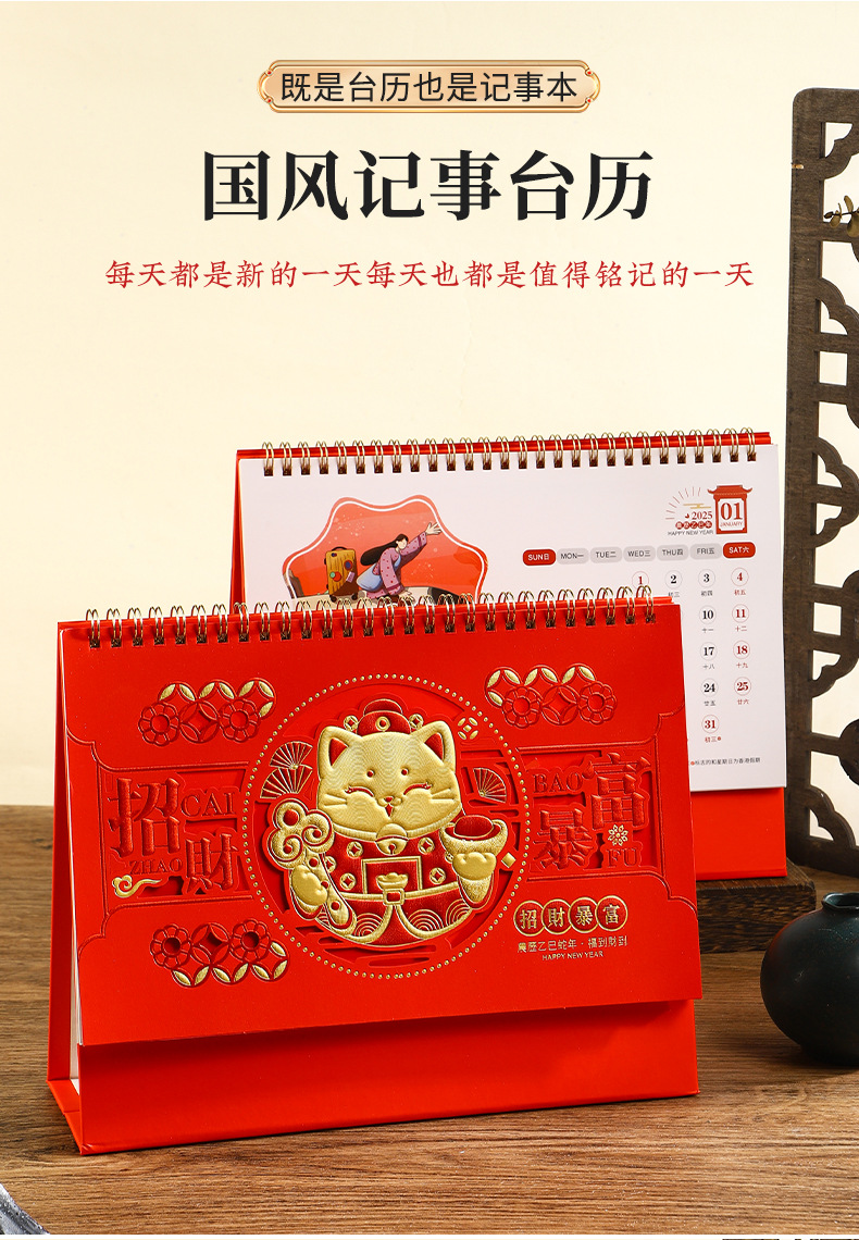 2025年日历台历定制定做蛇年新款创意小摆件桌面月历喜庆中国风