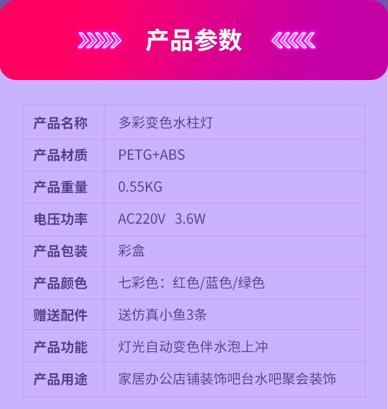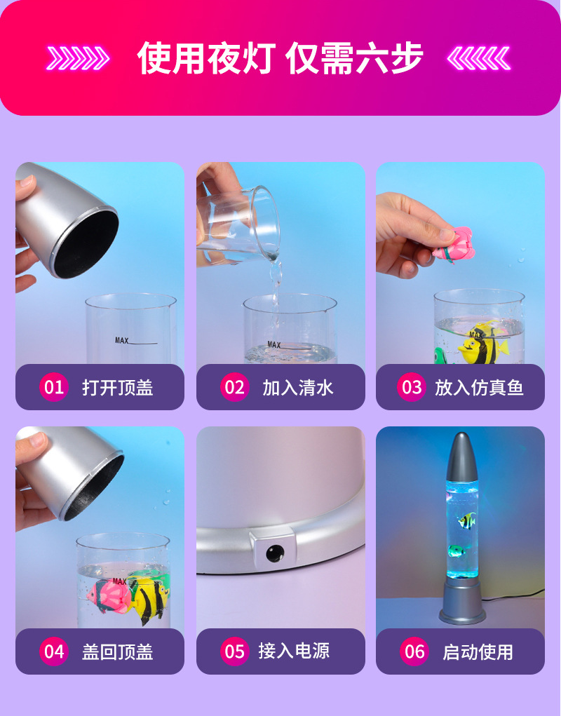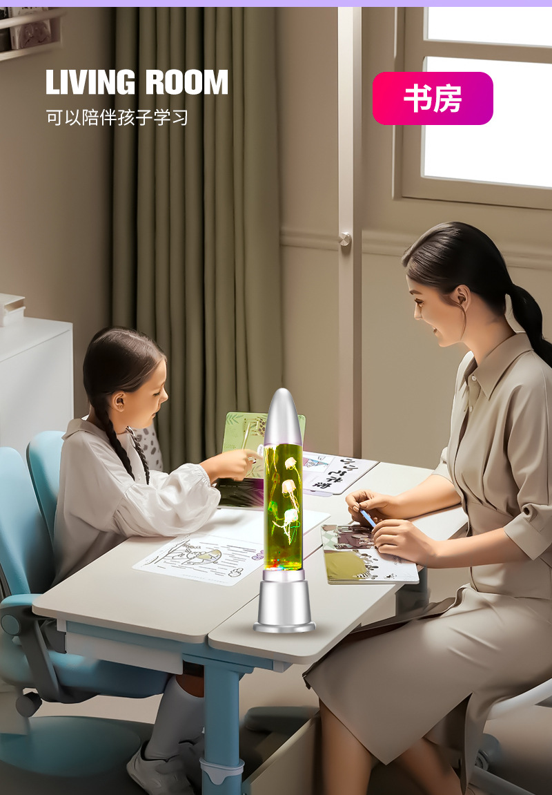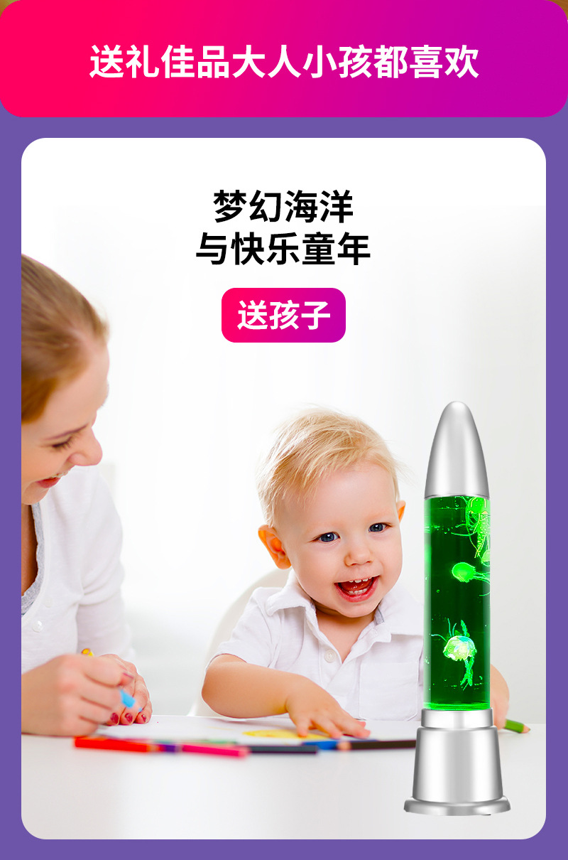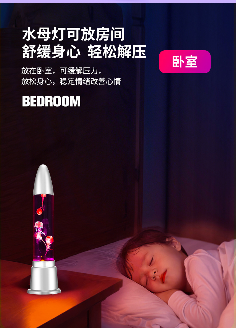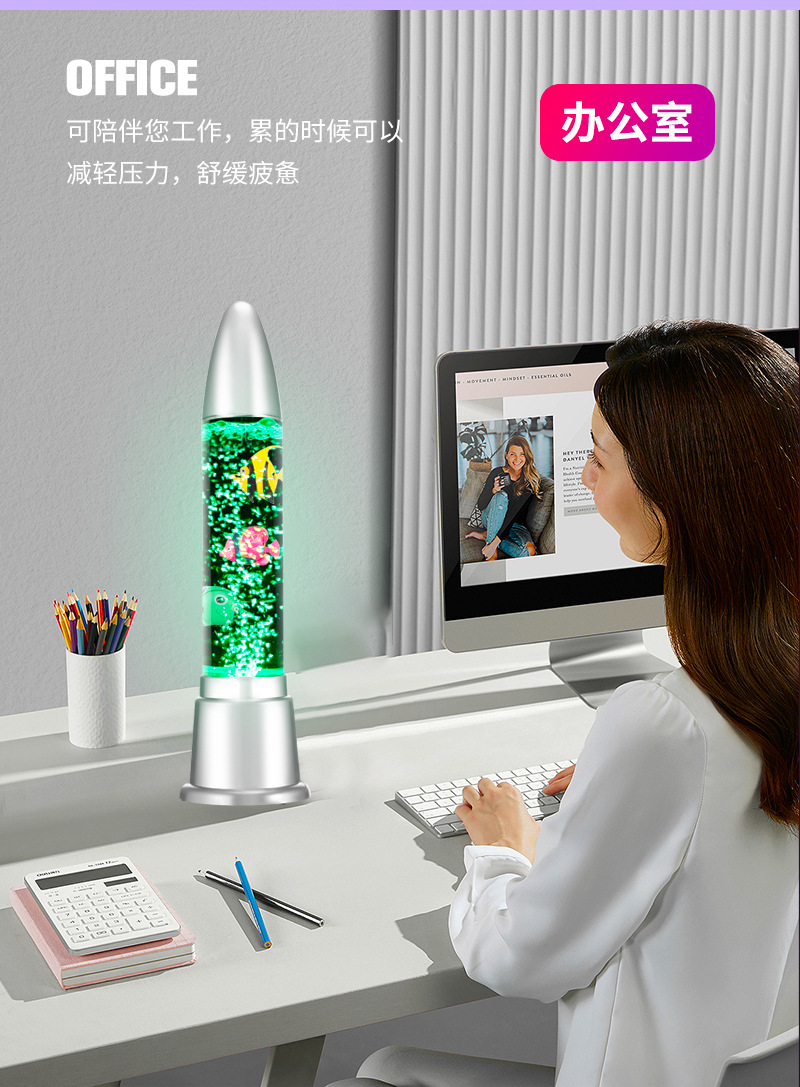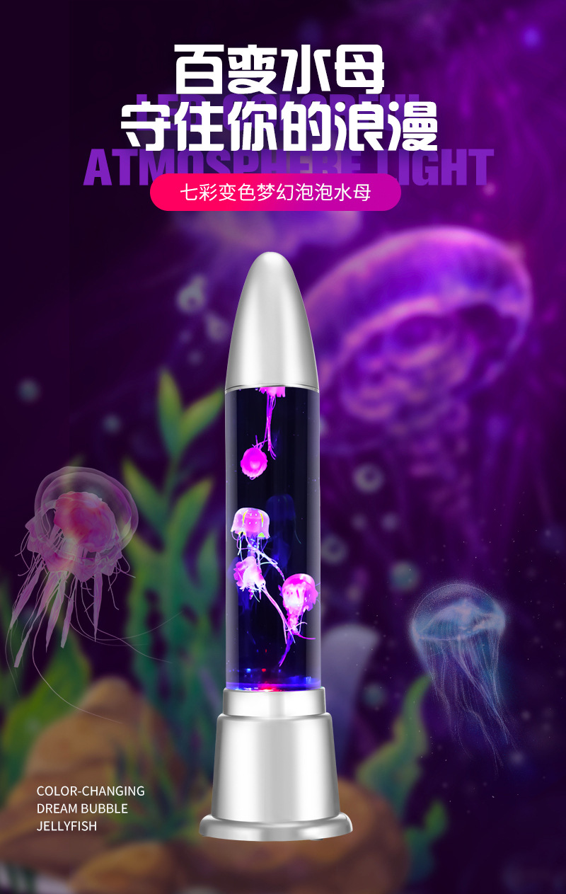 外贸专供水柱灯小夜灯氛围灯气泡灯led七彩鱼灯卧室装饰灯 水母灯