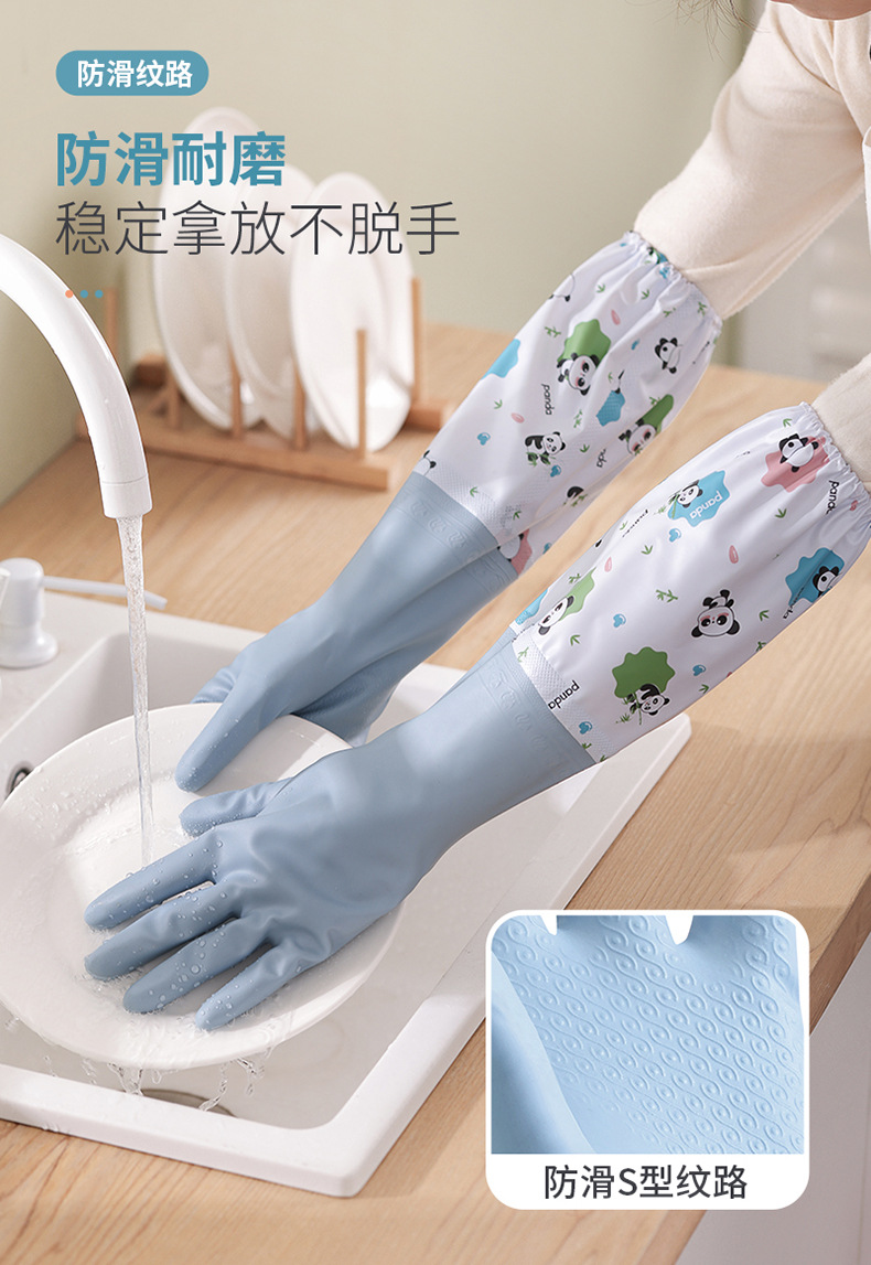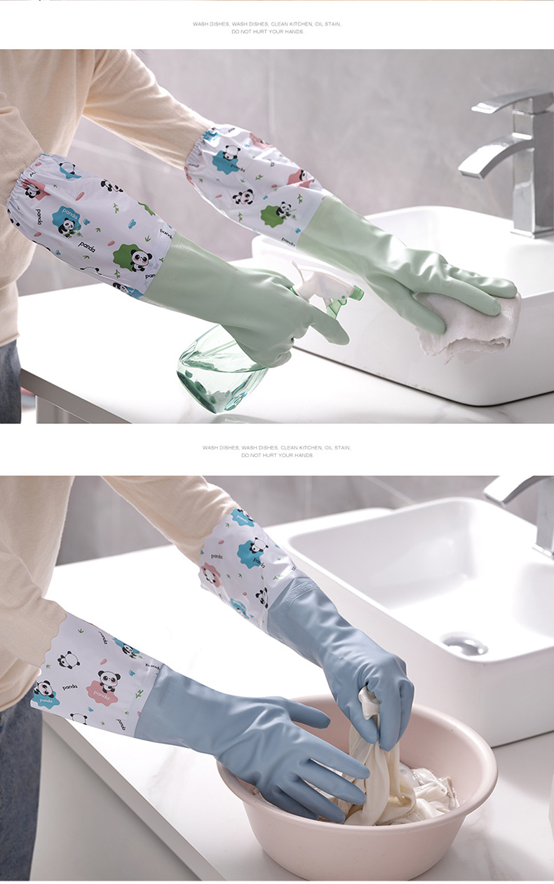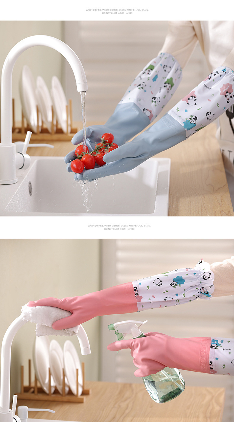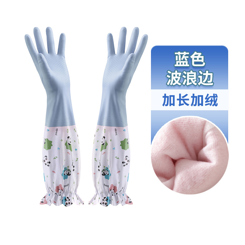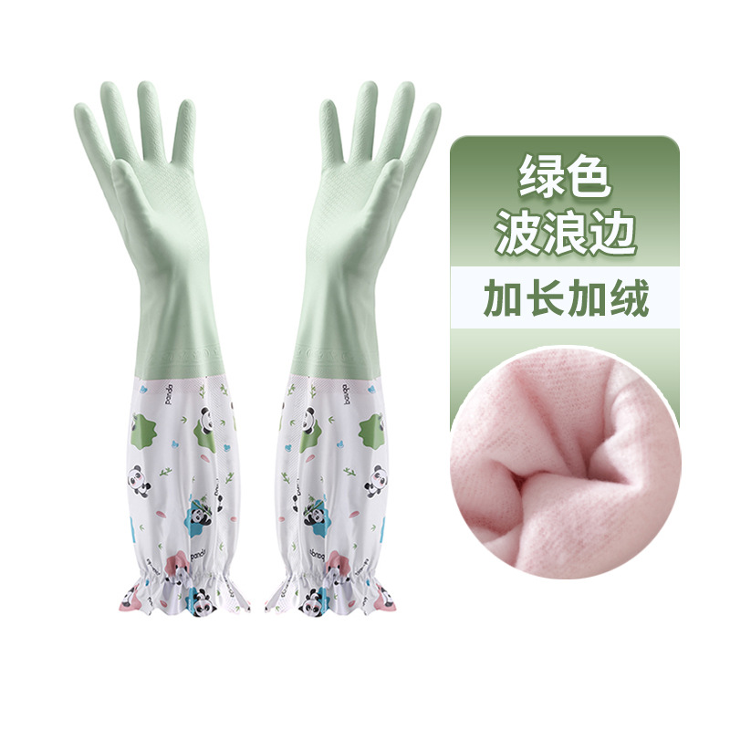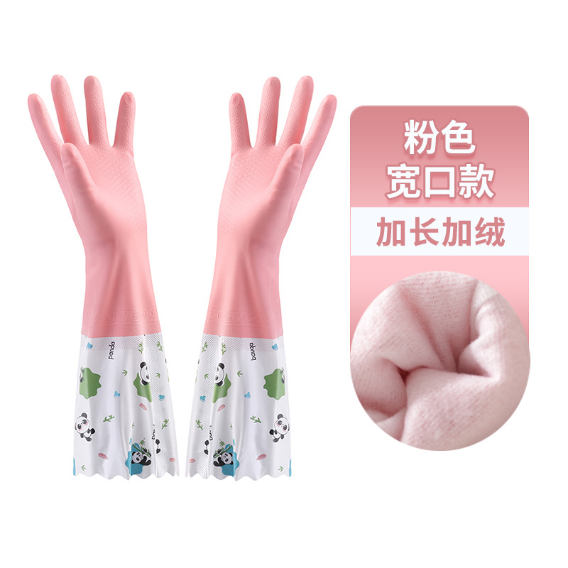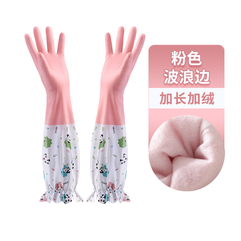 冬季加绒橡胶手套女耐用家务清洁家用厨房洗碗洗衣服刷锅防水加厚