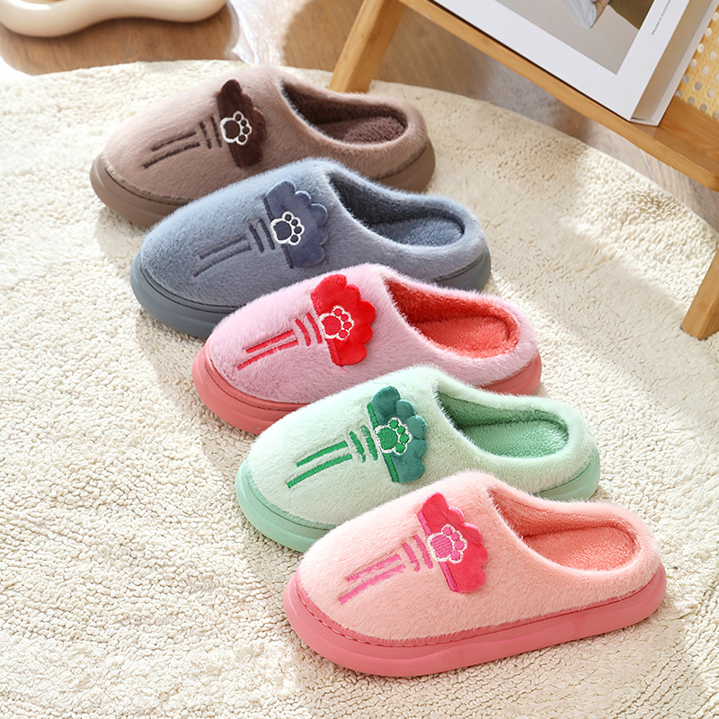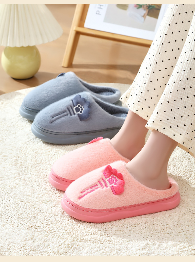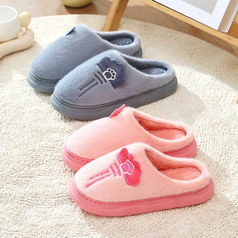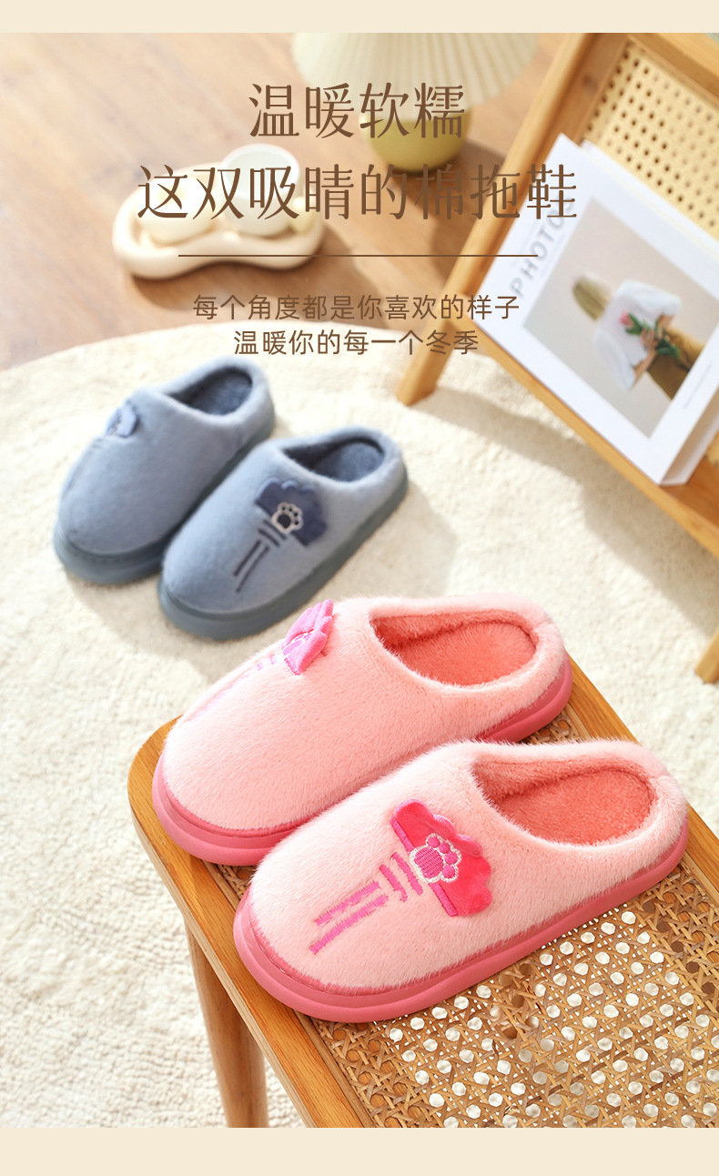 2024新款冬季保暖棉拖鞋地板加厚拖鞋情侣防滑绣花卡通居家秒拖鞋
