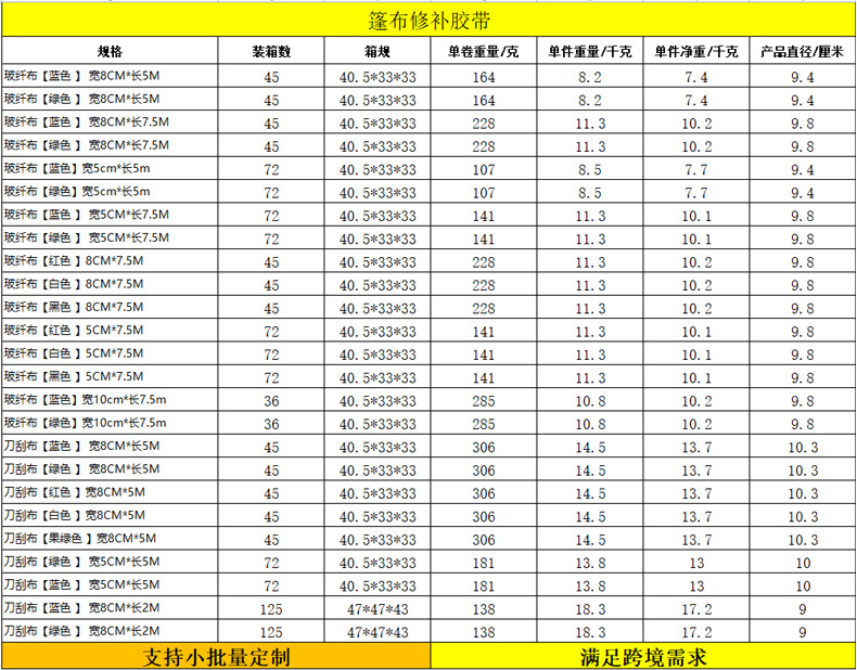 跨境篷布修补胶带货车雨布刀刮布PVC油布补漏胶带玻纤布篷布胶带