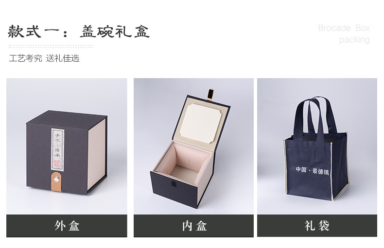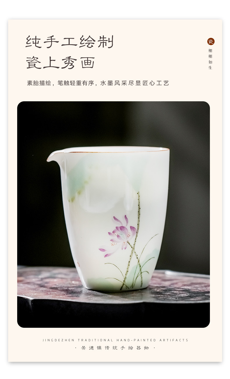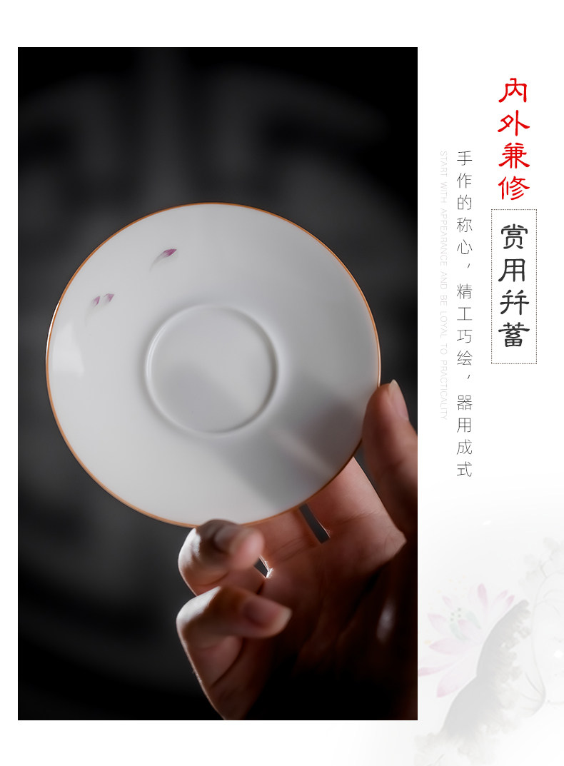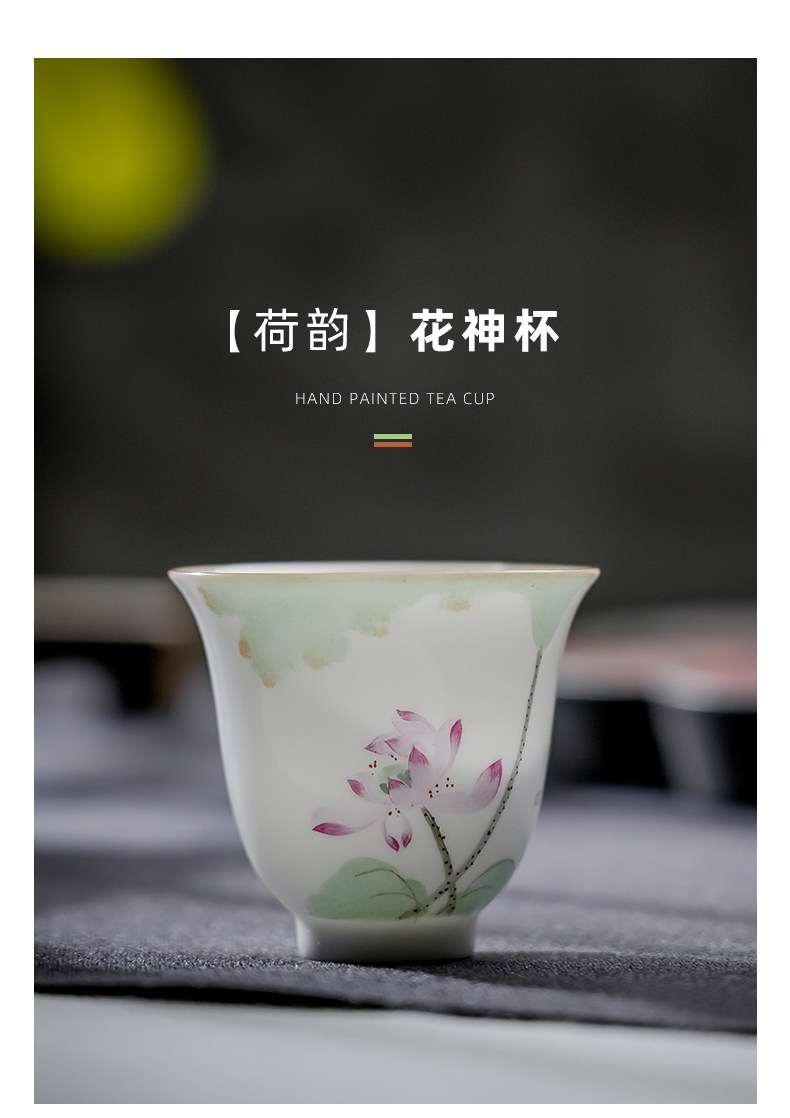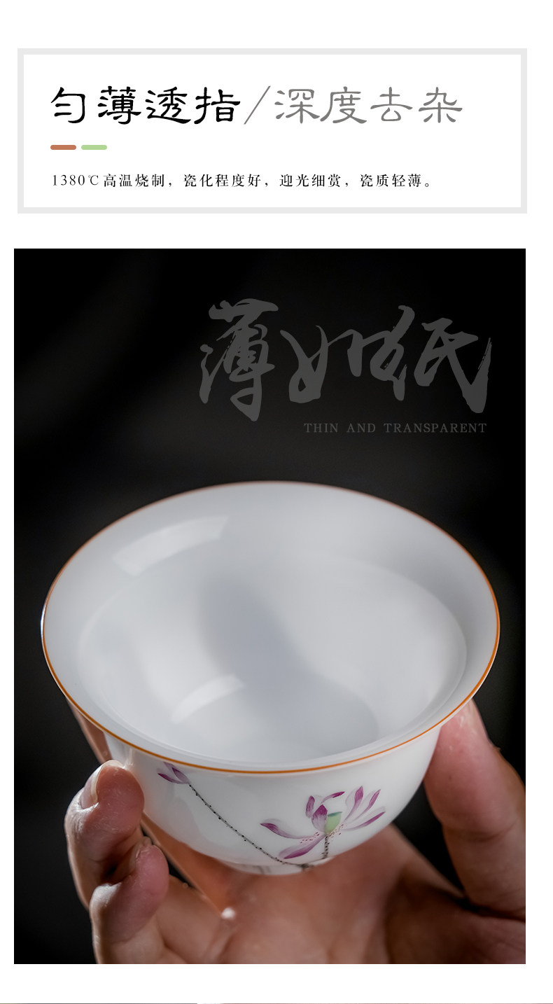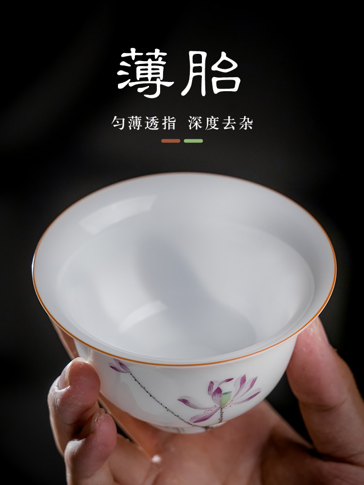 景德镇茶具套装 陶瓷手绘荷花三才盖碗茶杯 单个不烫手白瓷泡茶碗