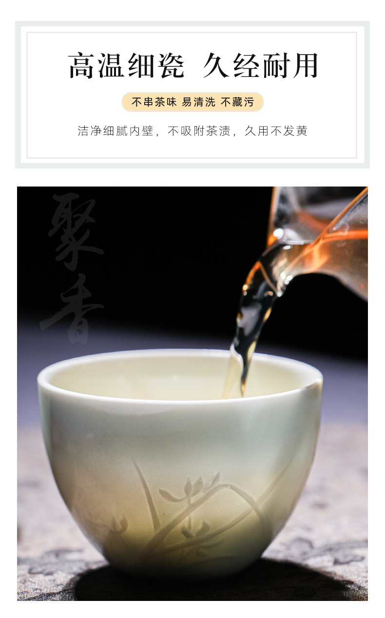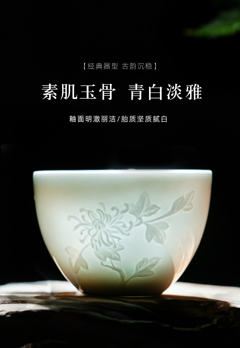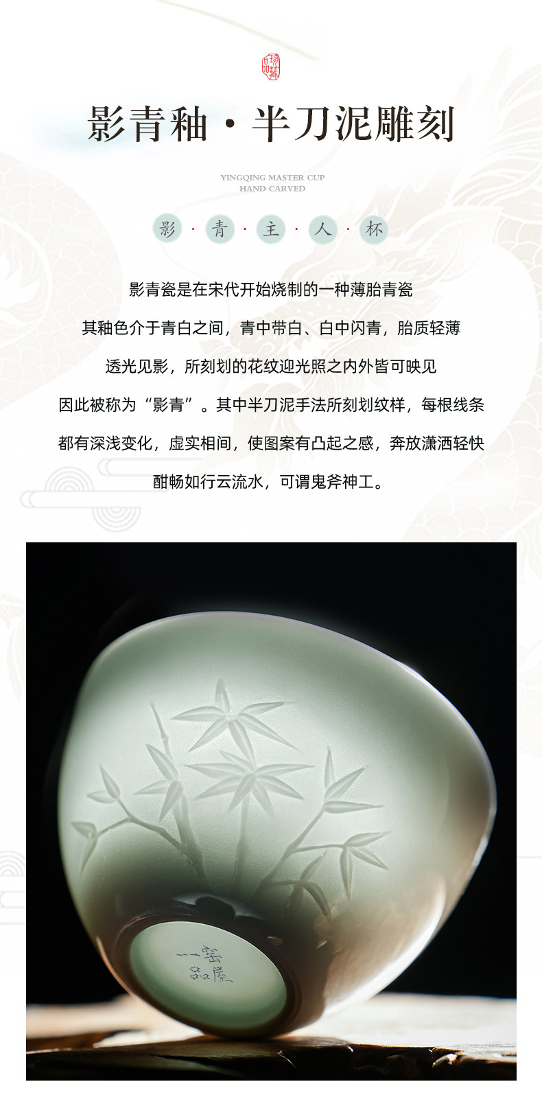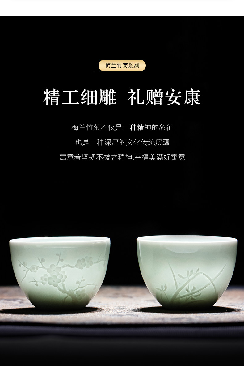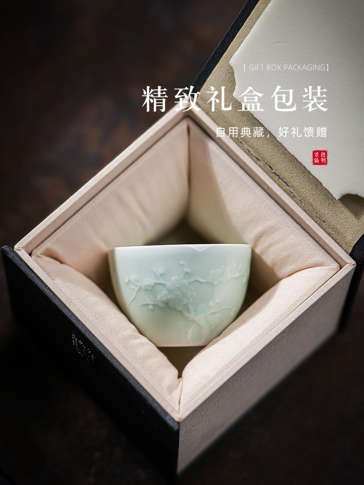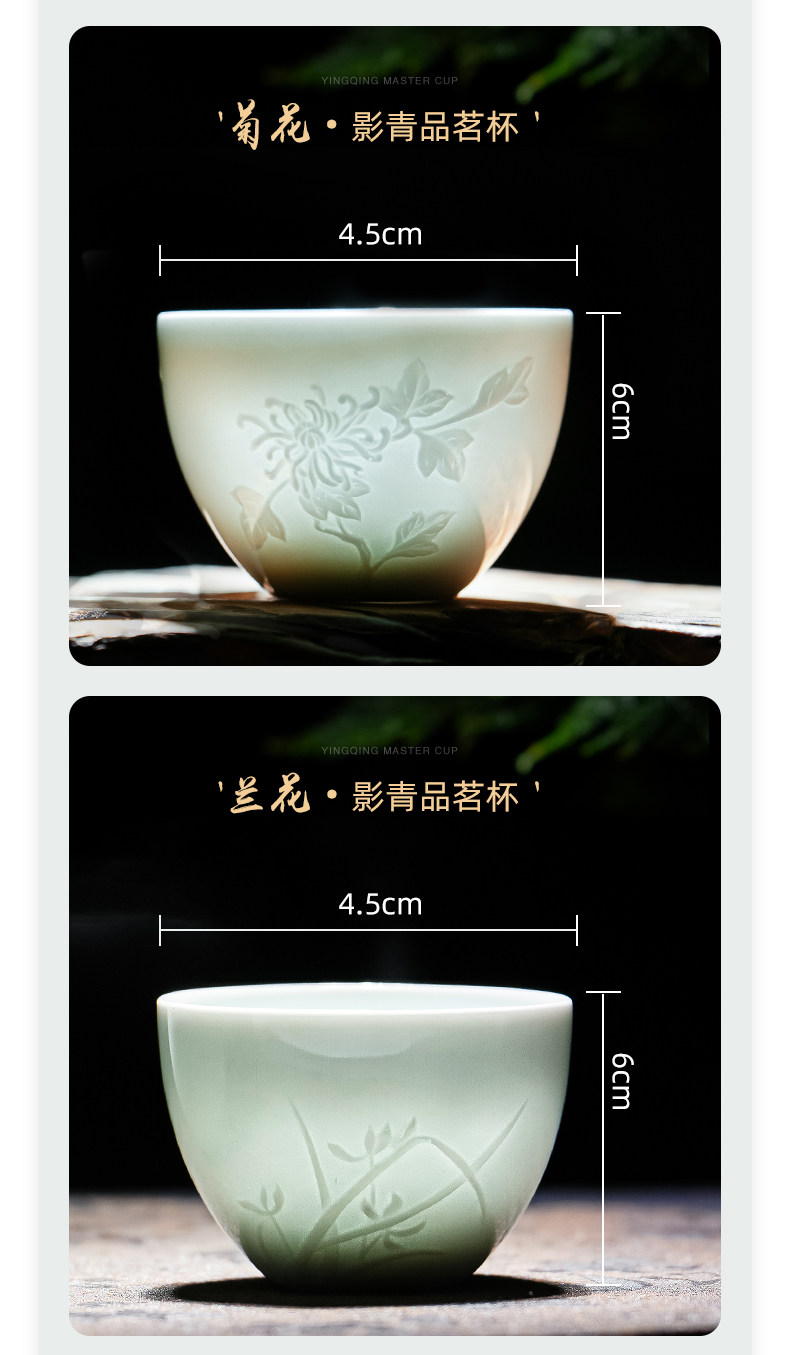 梅兰竹菊影青雕刻白瓷薄胎品茗杯主人杯单杯客杯茶杯男女景德镇