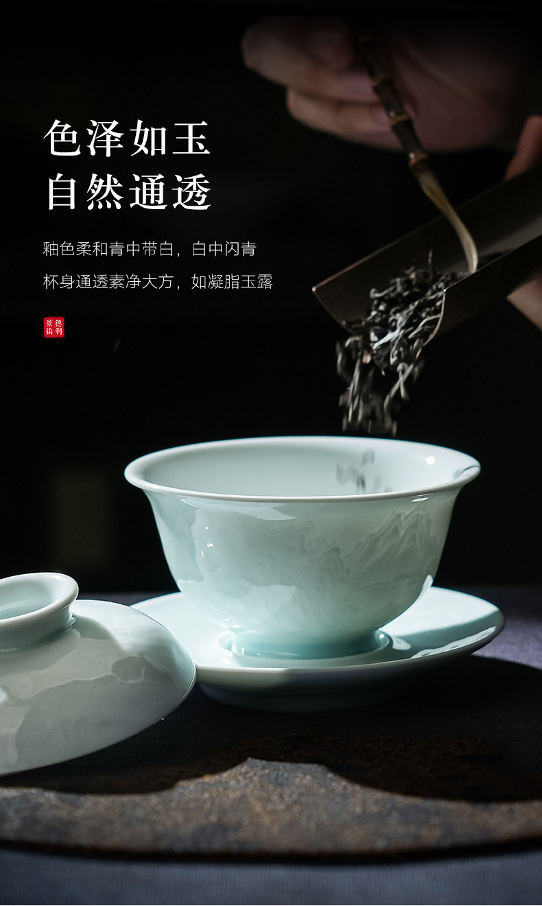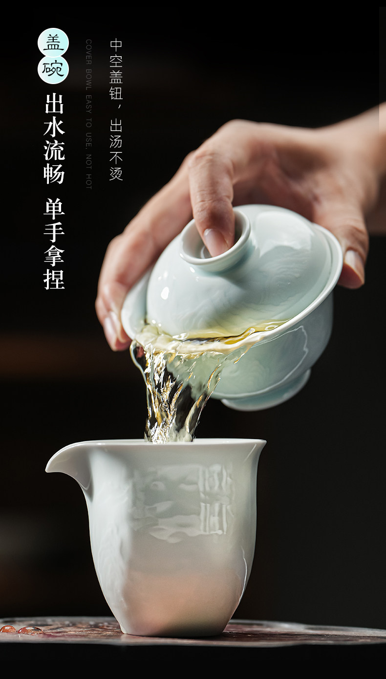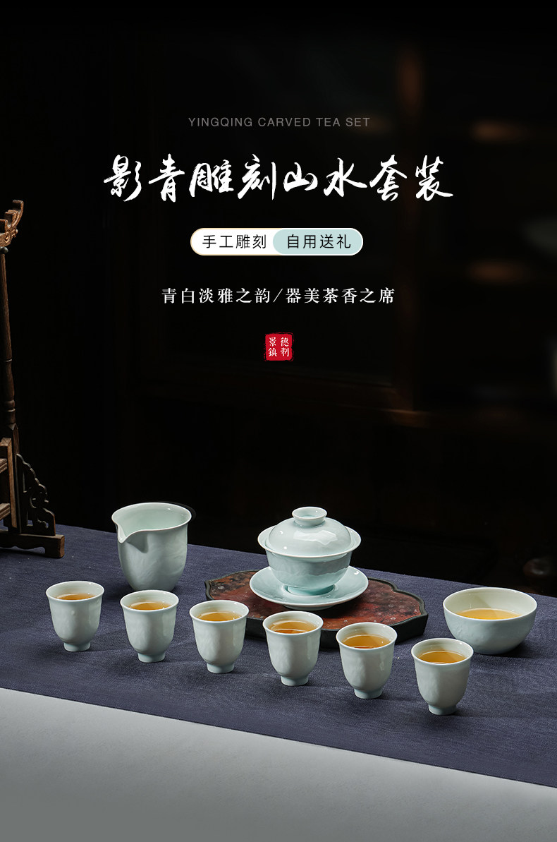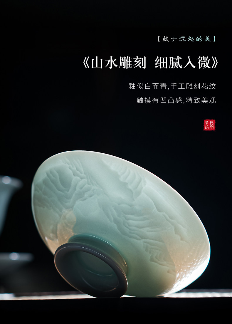景德镇陶瓷影青雕刻山水功夫茶具办公室茶艺泡茶盖碗茶杯套装家用