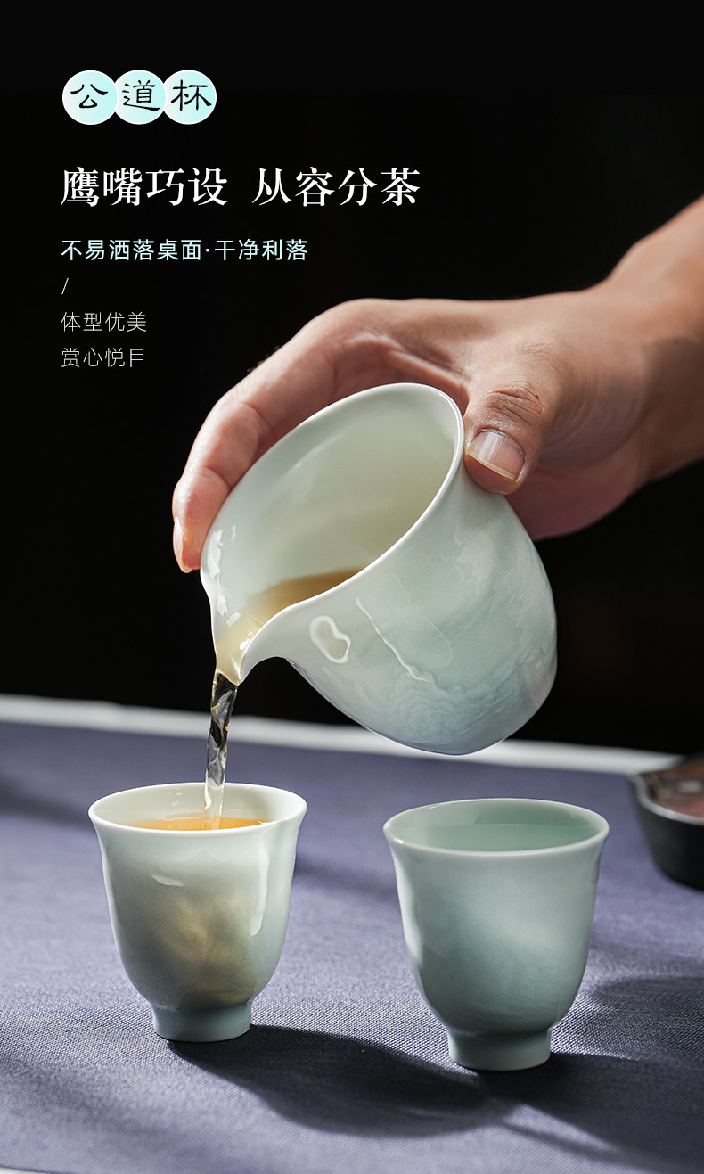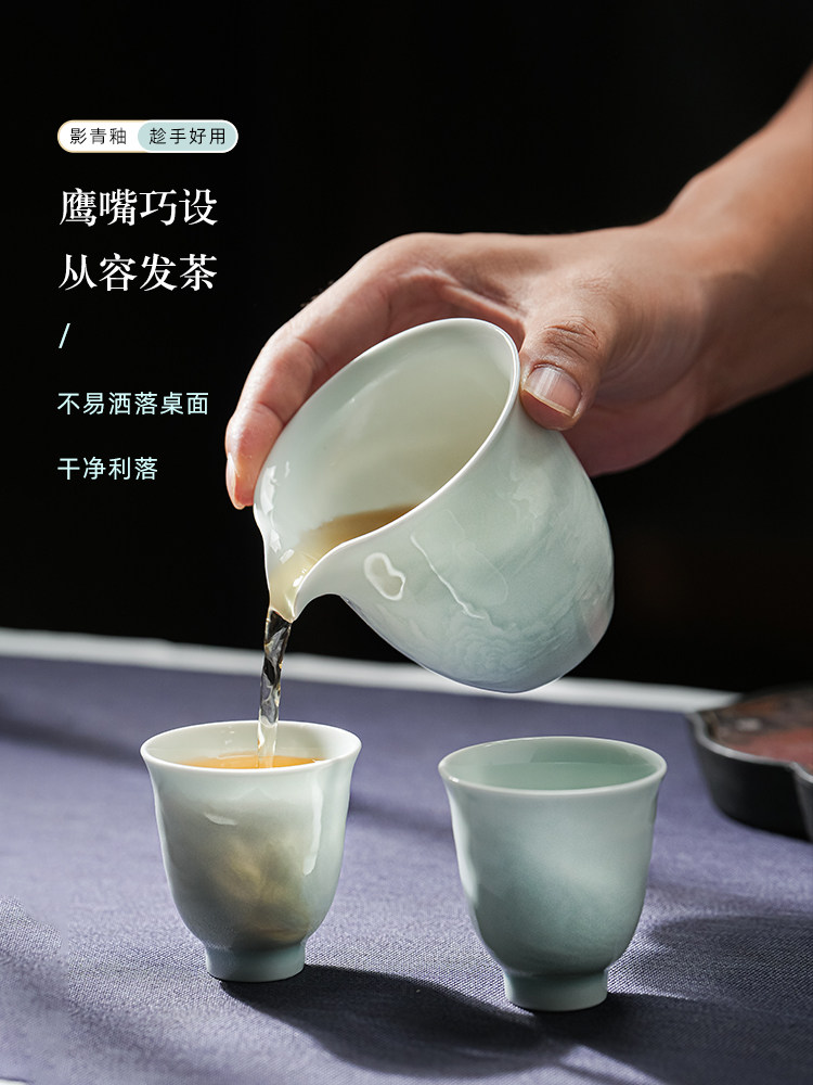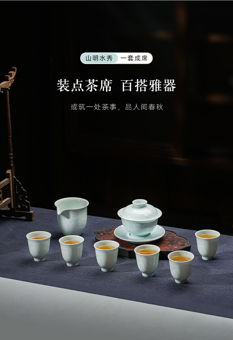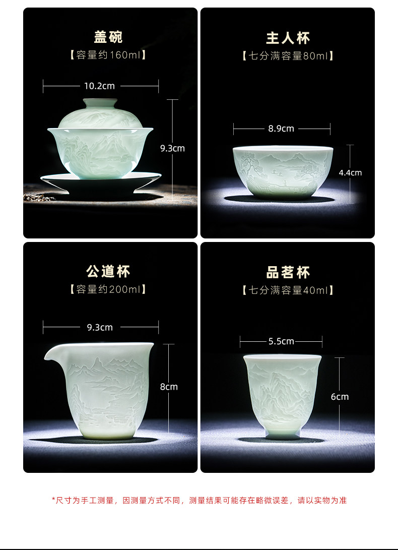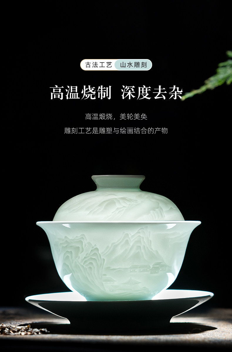 景德镇陶瓷影青雕刻山水功夫茶具办公室茶艺泡茶盖碗茶杯套装家用