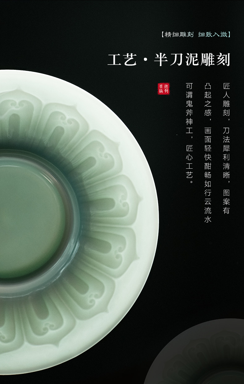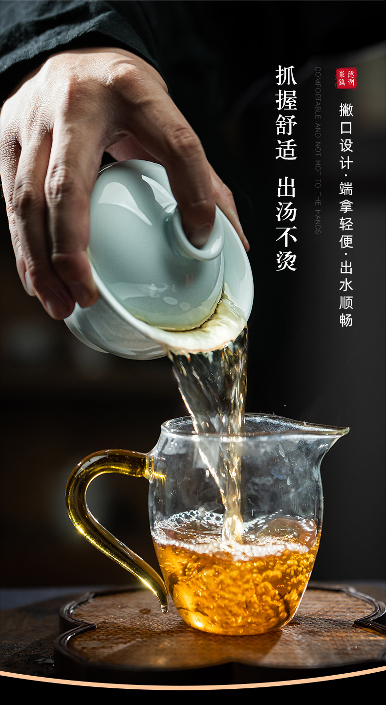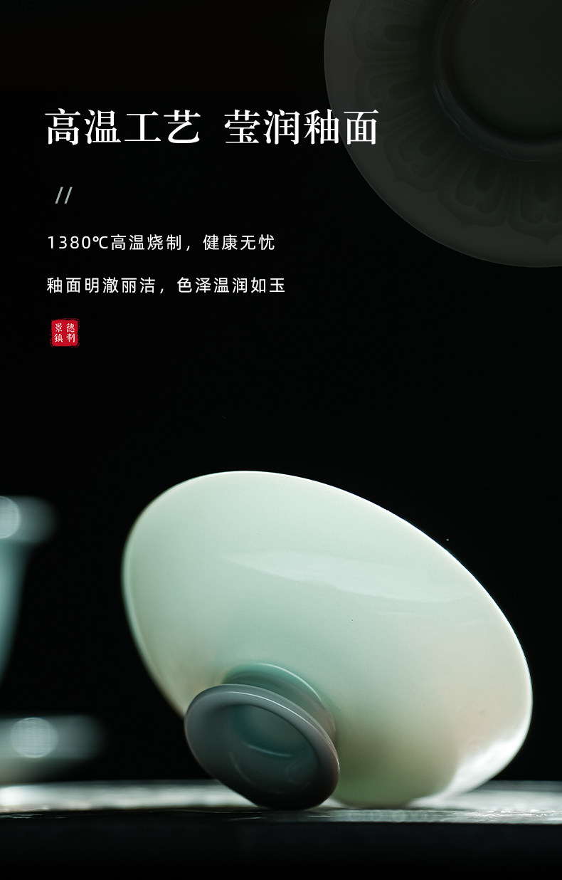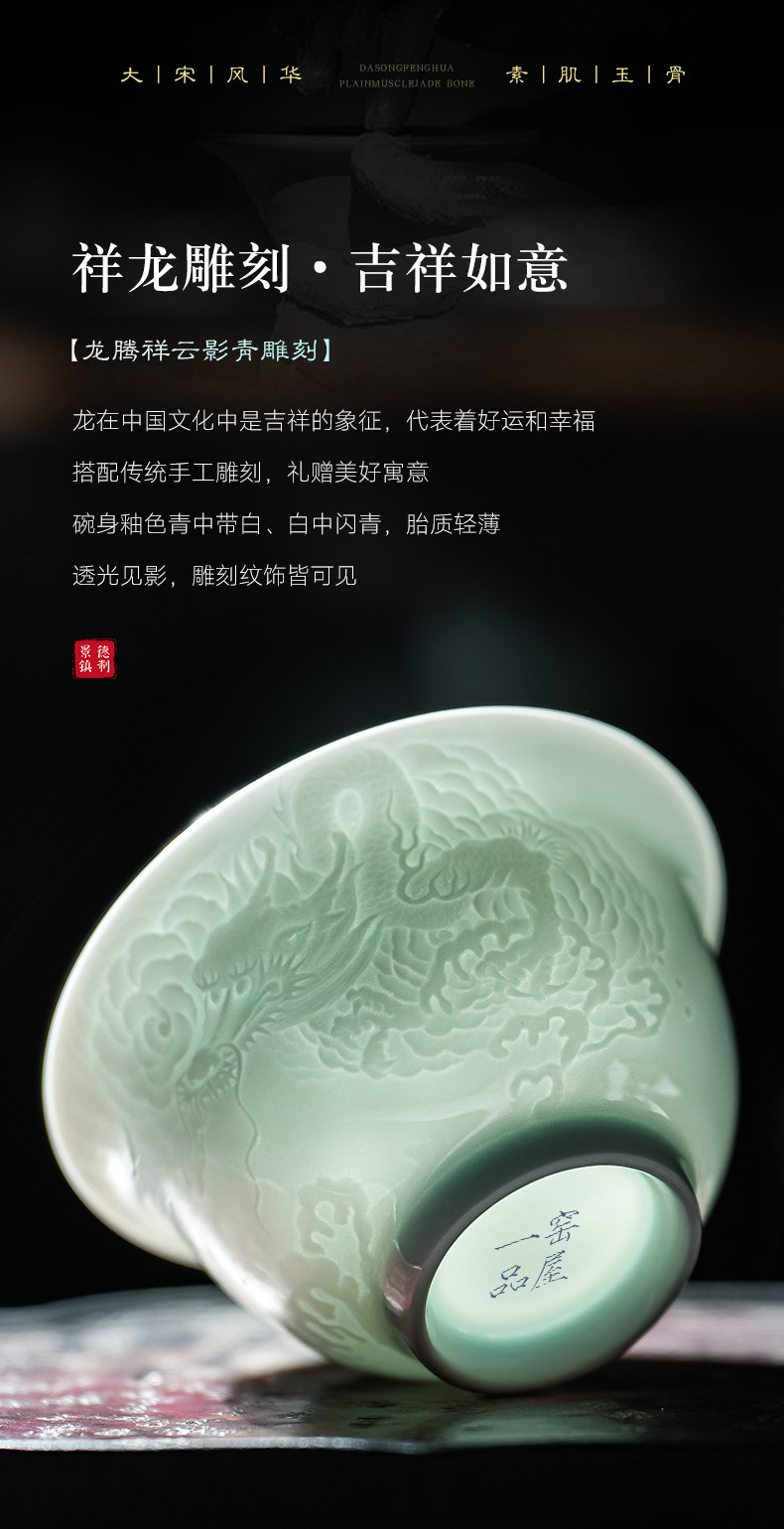 景德镇陶瓷影青雕刻龙腾祥云三才盖碗茶杯茶具套装泡茶茶碗不烫手