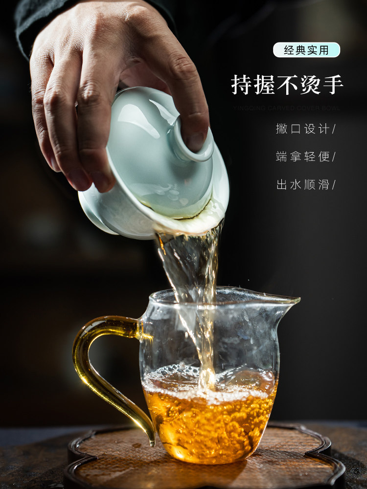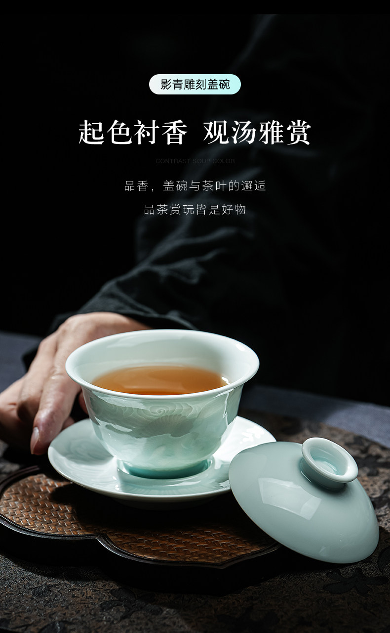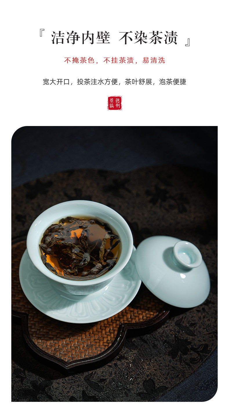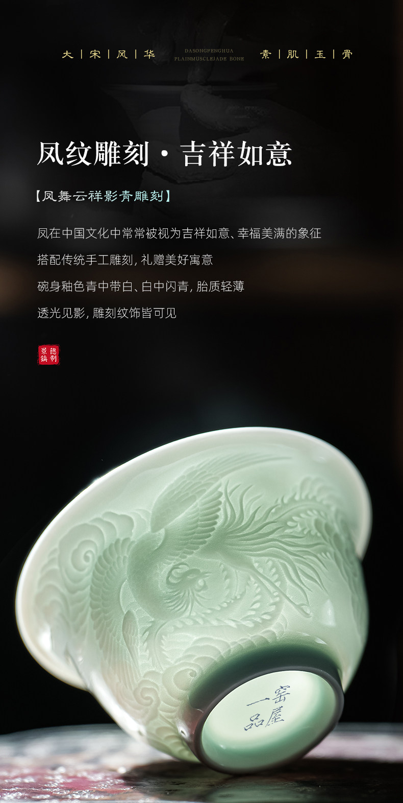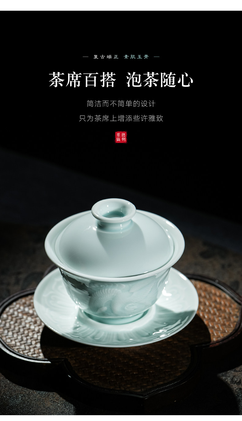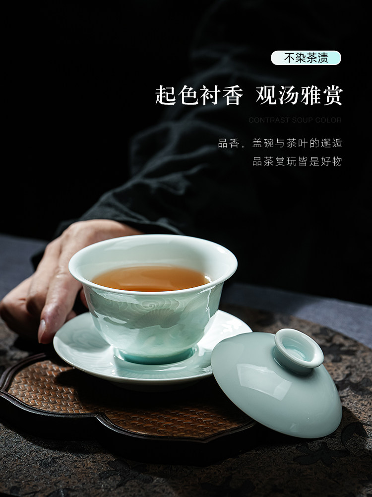 景德镇手工雕刻凤凰三才盖碗防烫单个泡茶功夫茶具薄胎茶碗礼盒装