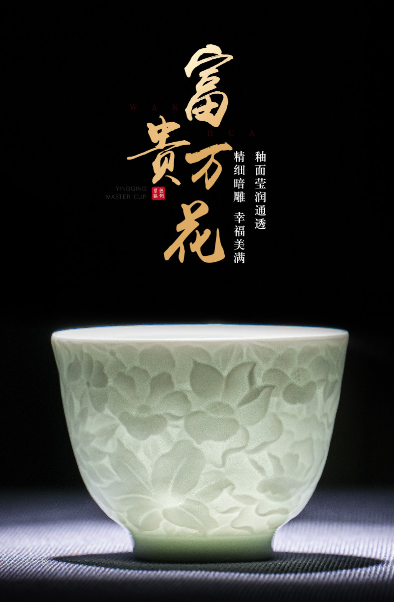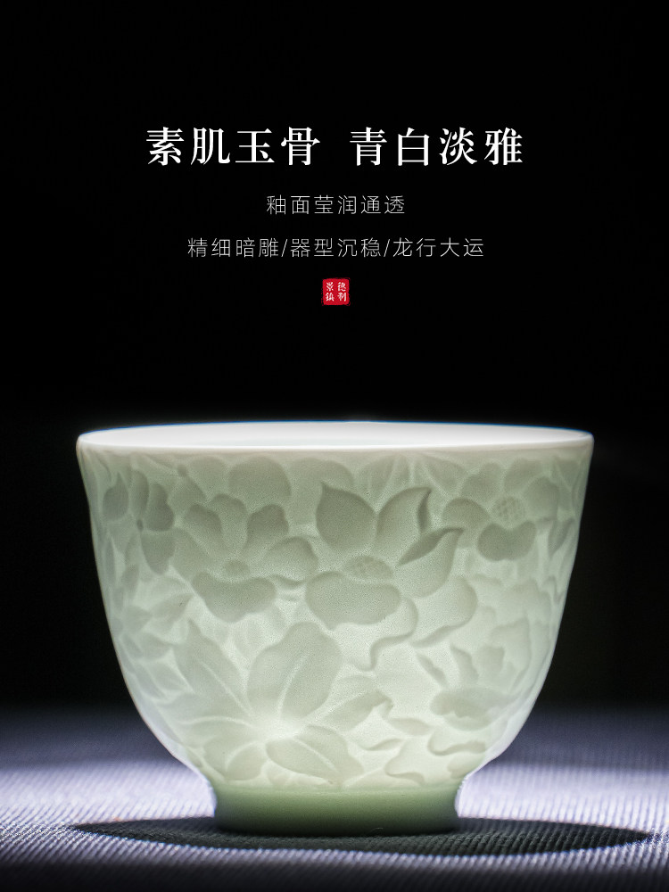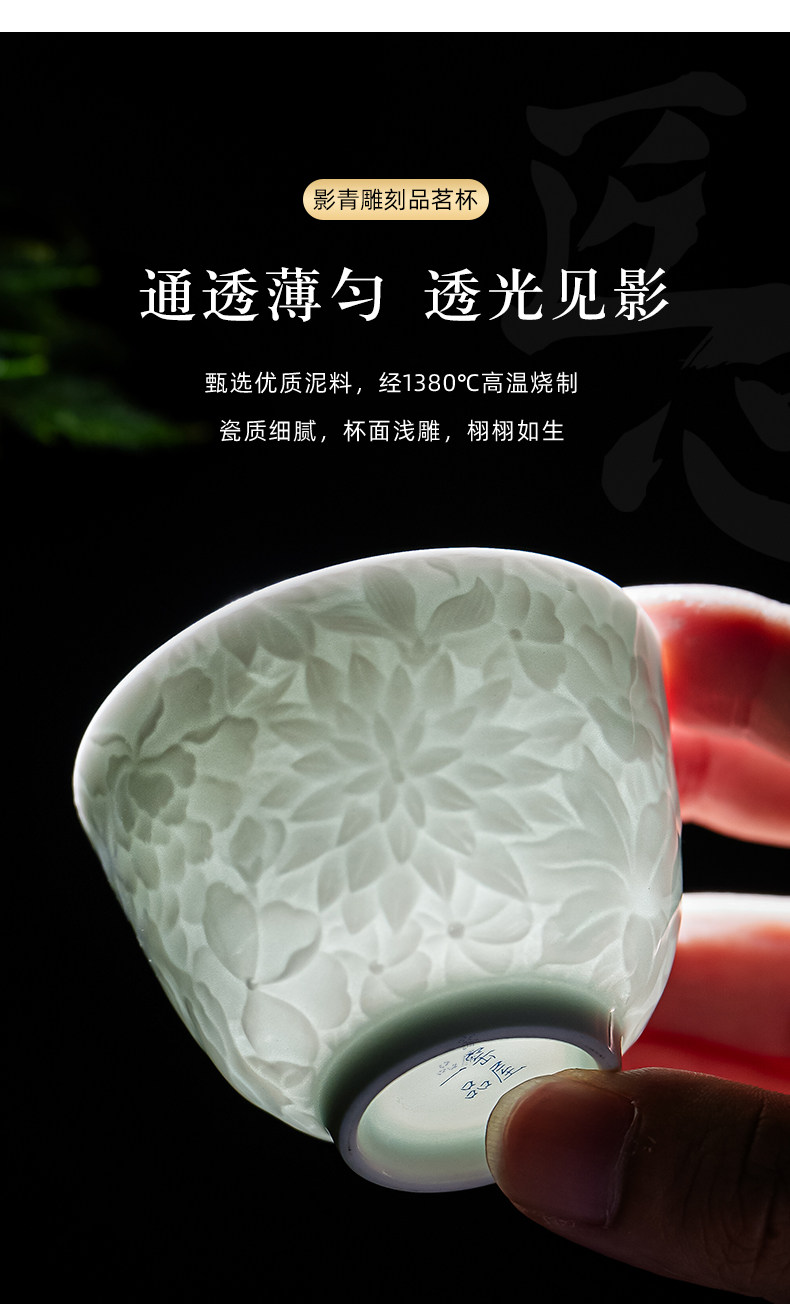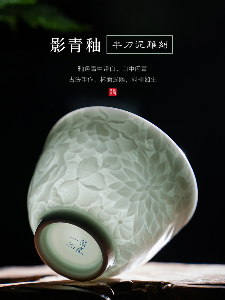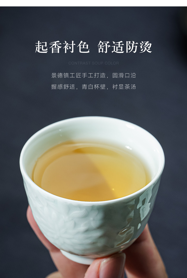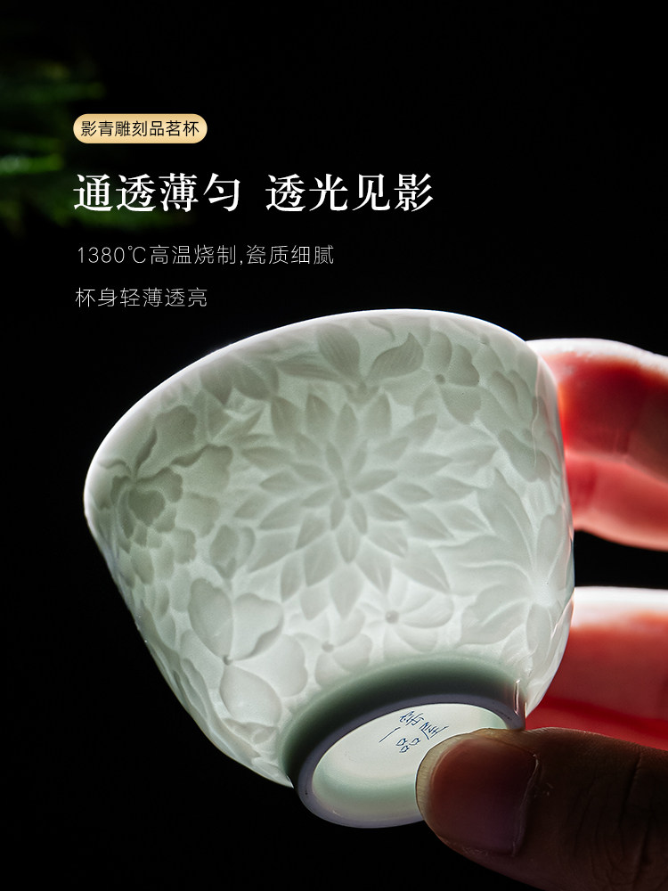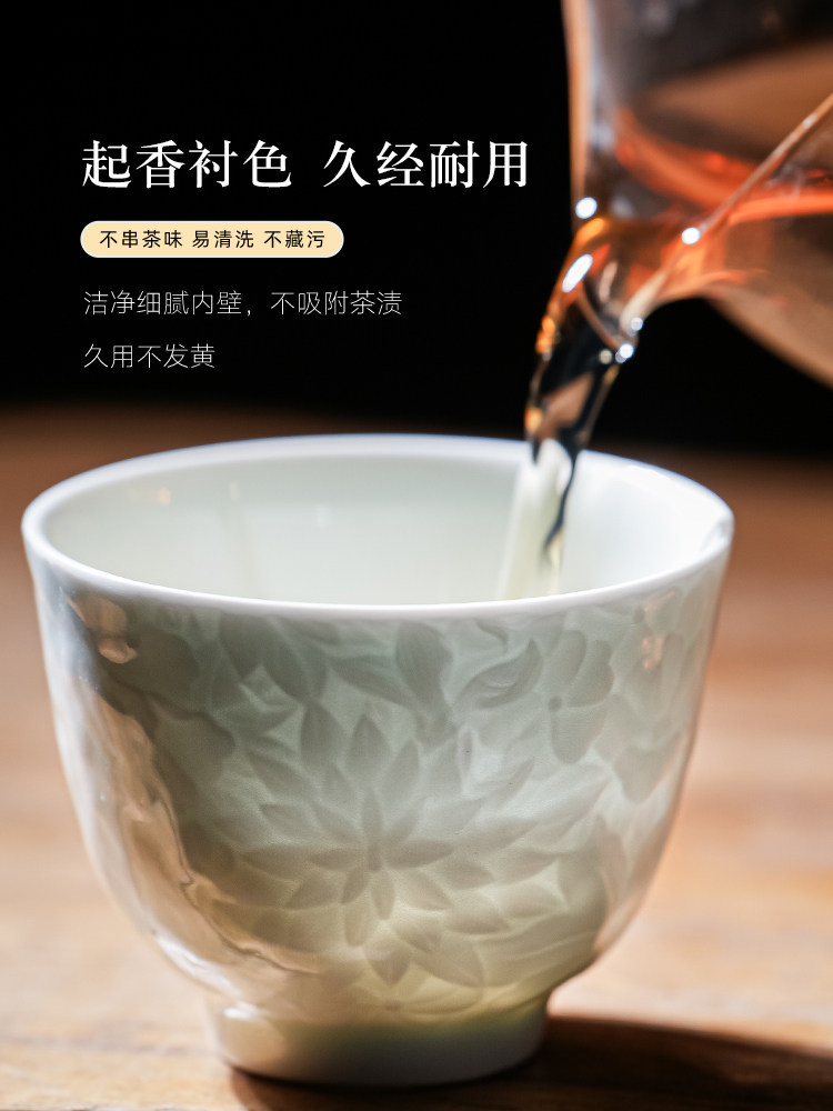 景德镇纯手工雕刻影青万花小茶杯主人杯薄胎白瓷品茗杯单个送礼