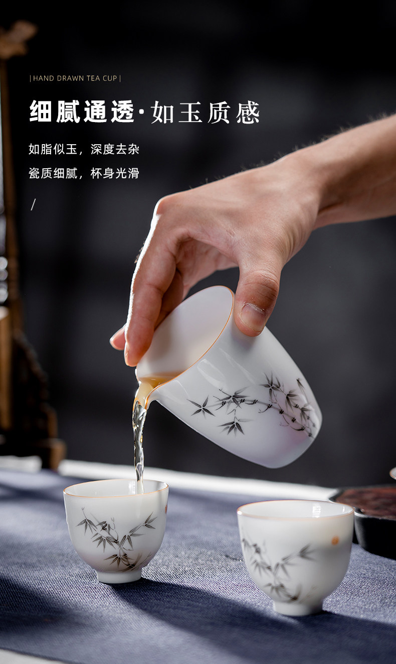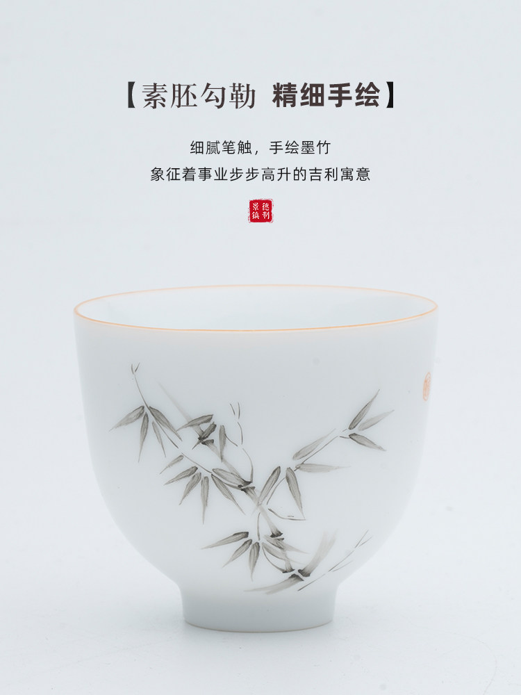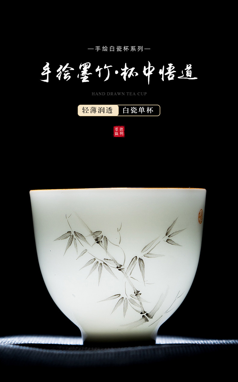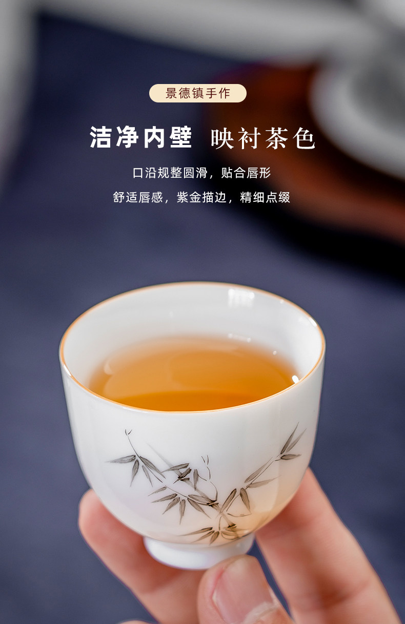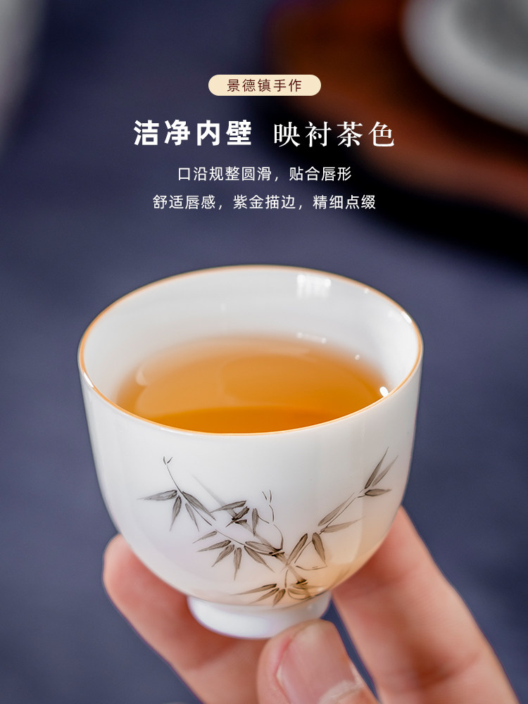 景德镇手绘粉彩白瓷薄胎品茗杯单杯喝茶功夫小茶杯甜白闻香杯茶具