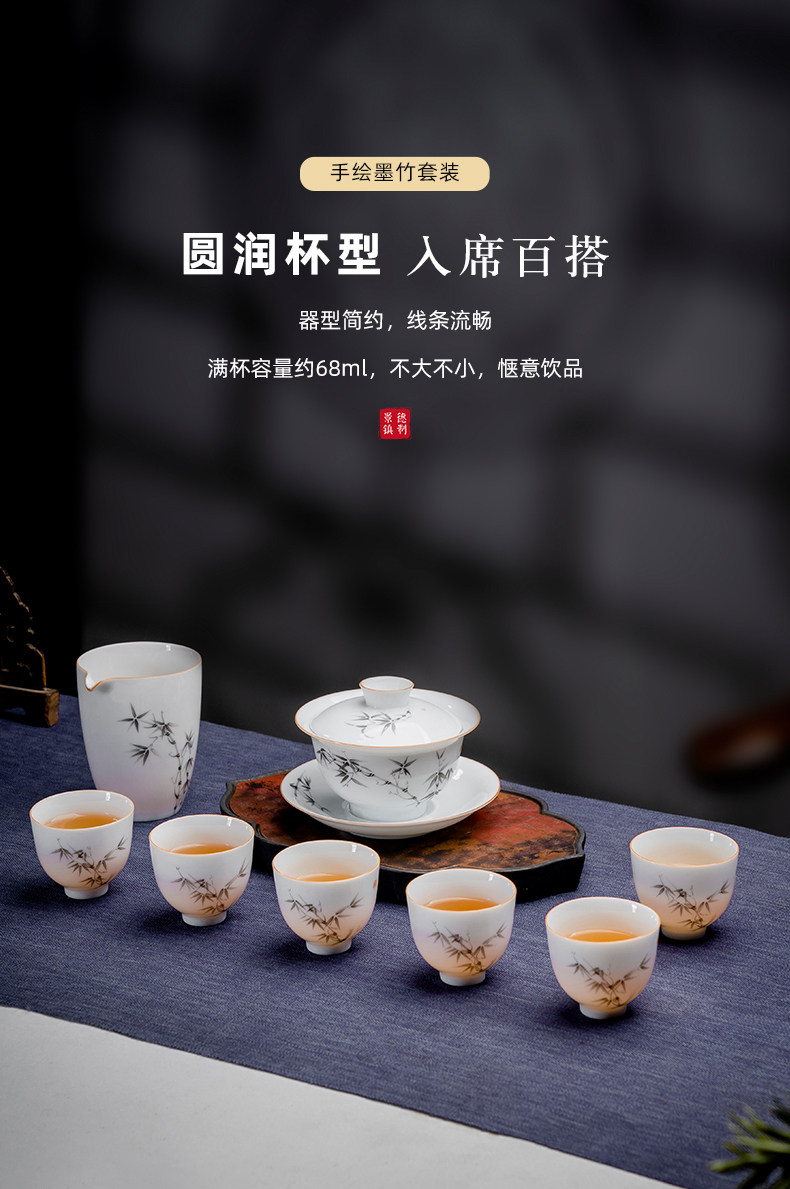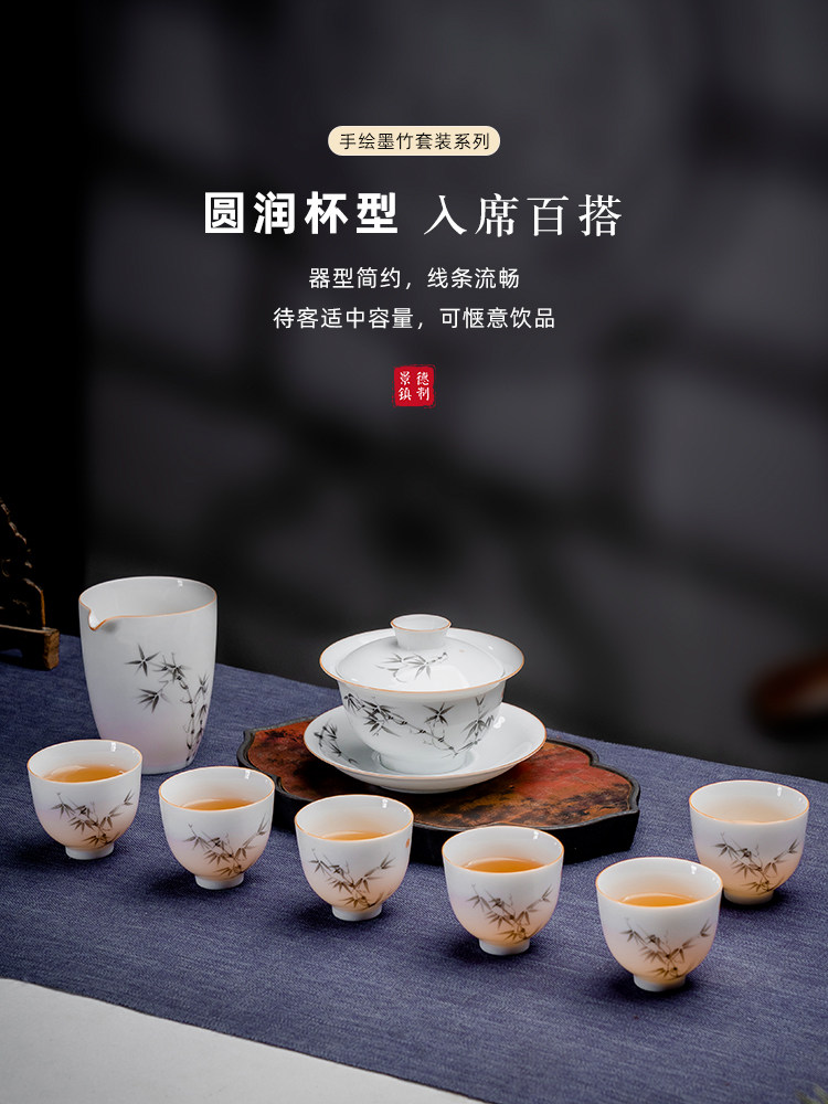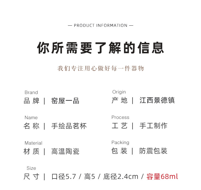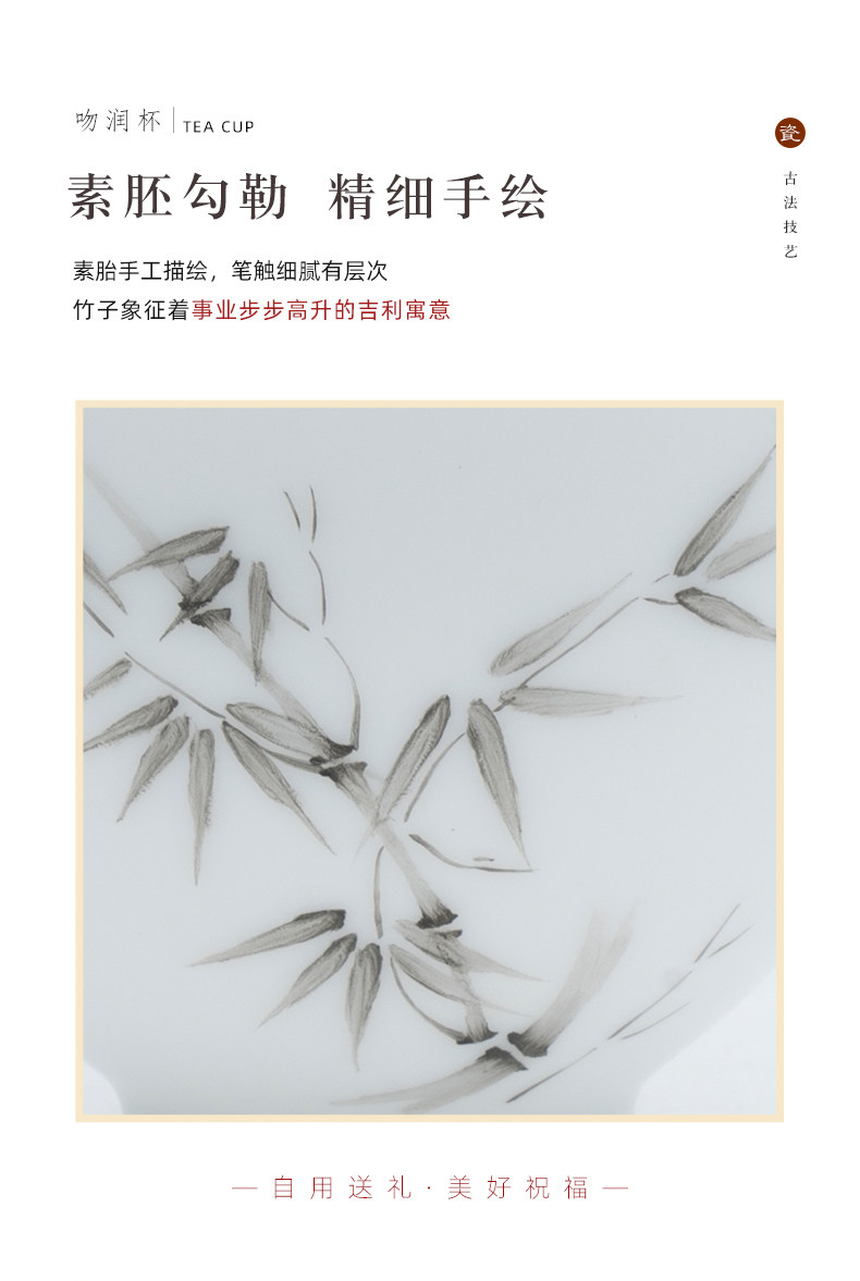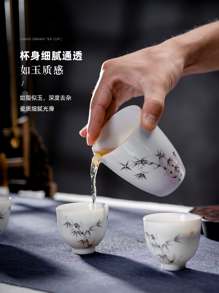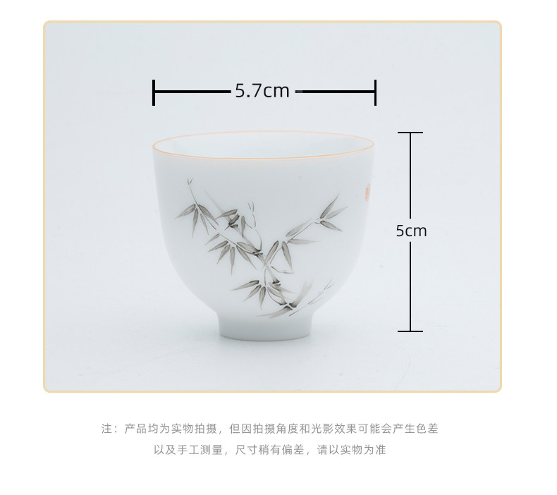 景德镇手绘粉彩白瓷薄胎品茗杯单杯喝茶功夫小茶杯甜白闻香杯茶具