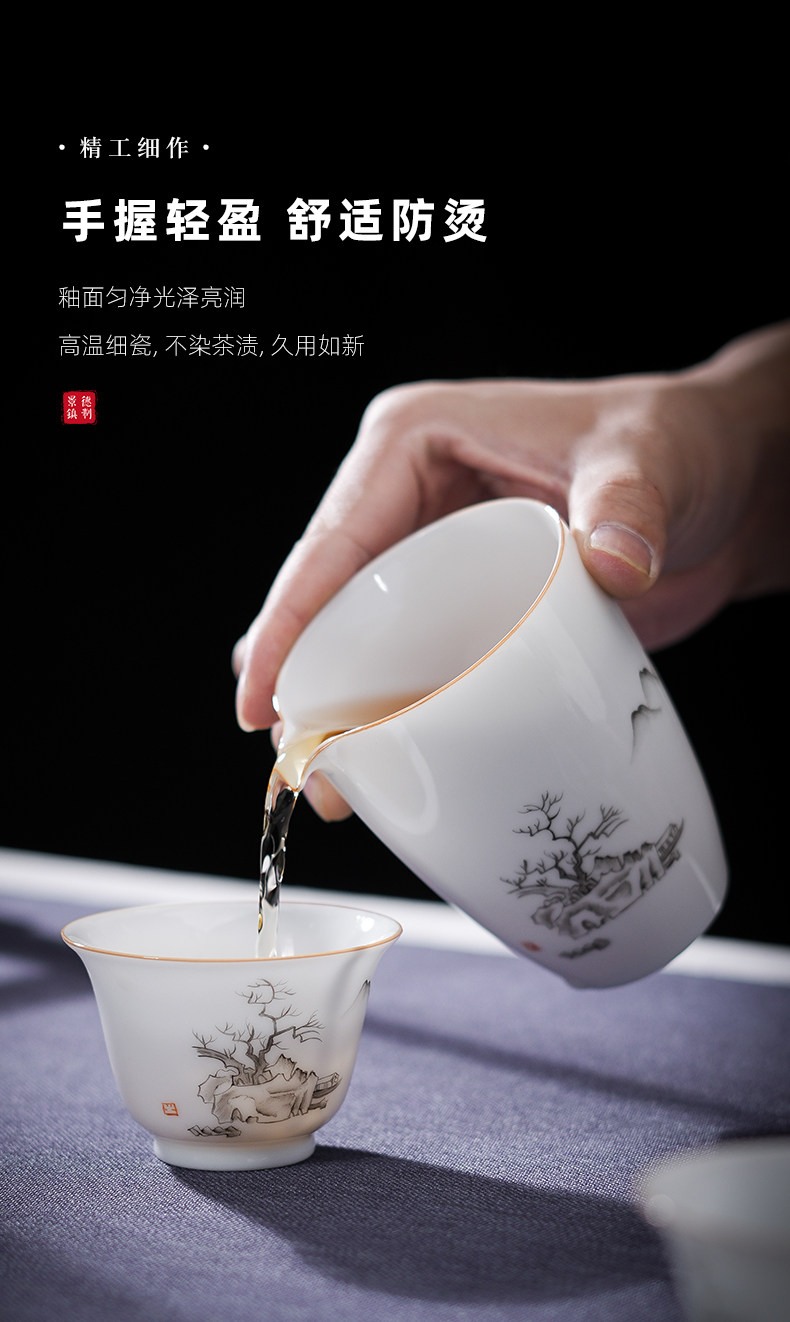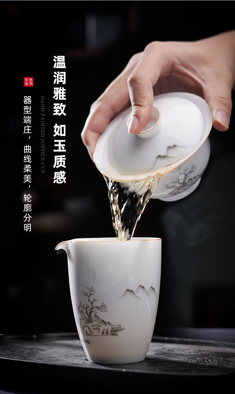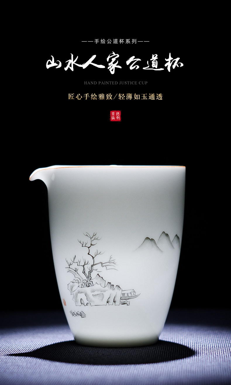 景德镇手工手绘山水公道杯陶瓷茶具分茶器高端公杯茶海