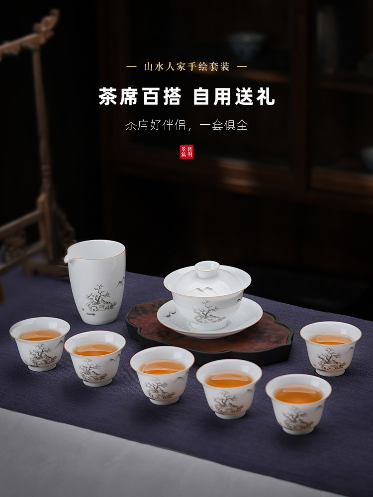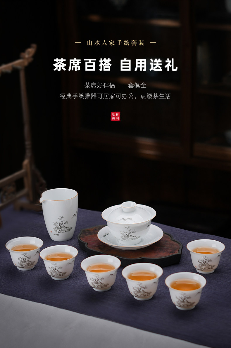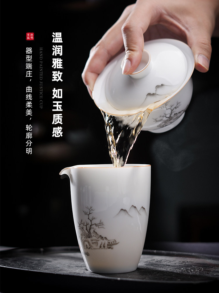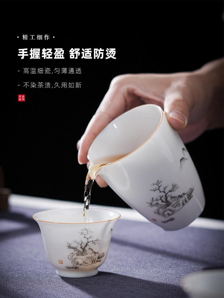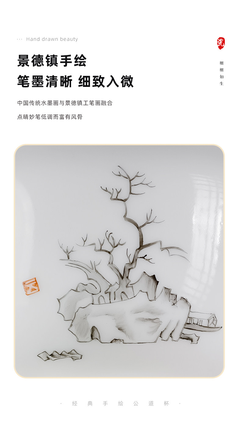 景德镇手工手绘山水公道杯陶瓷茶具分茶器高端公杯茶海