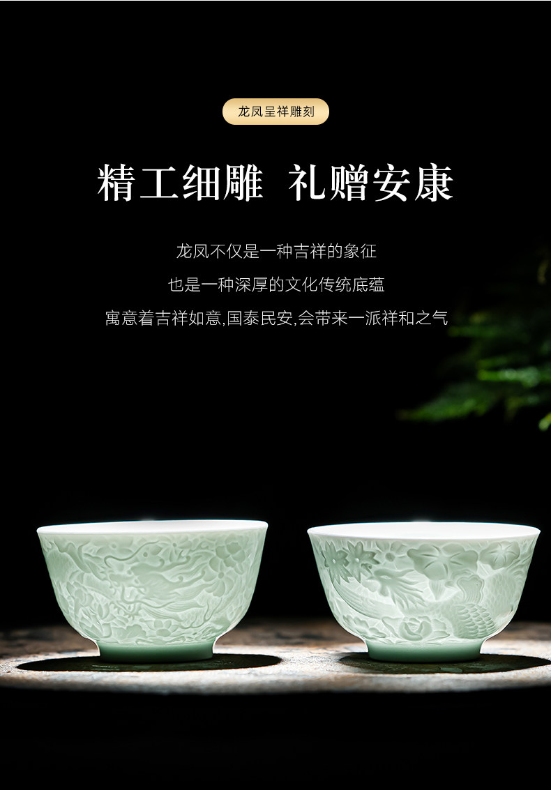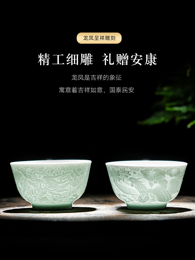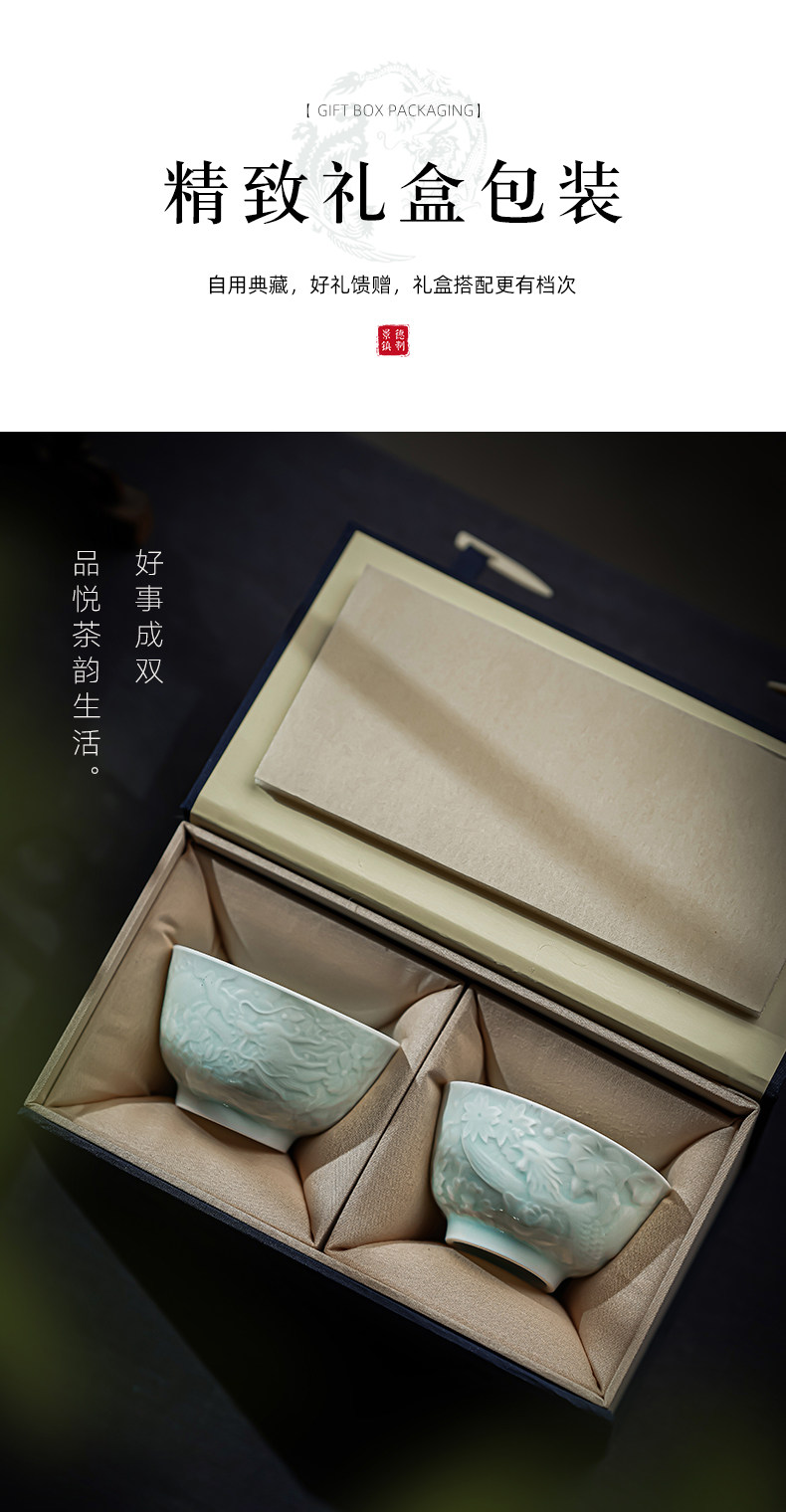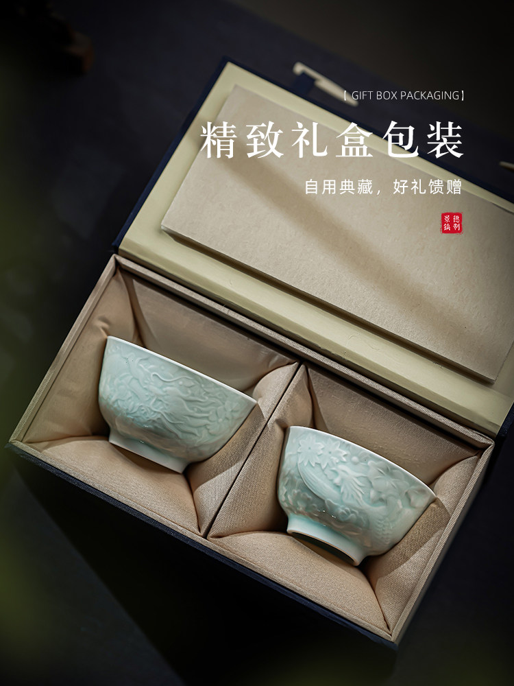 陶瓷功夫小茶杯单个主人杯单杯品茗杯喝茶杯子送礼龙凤杯情侣一对