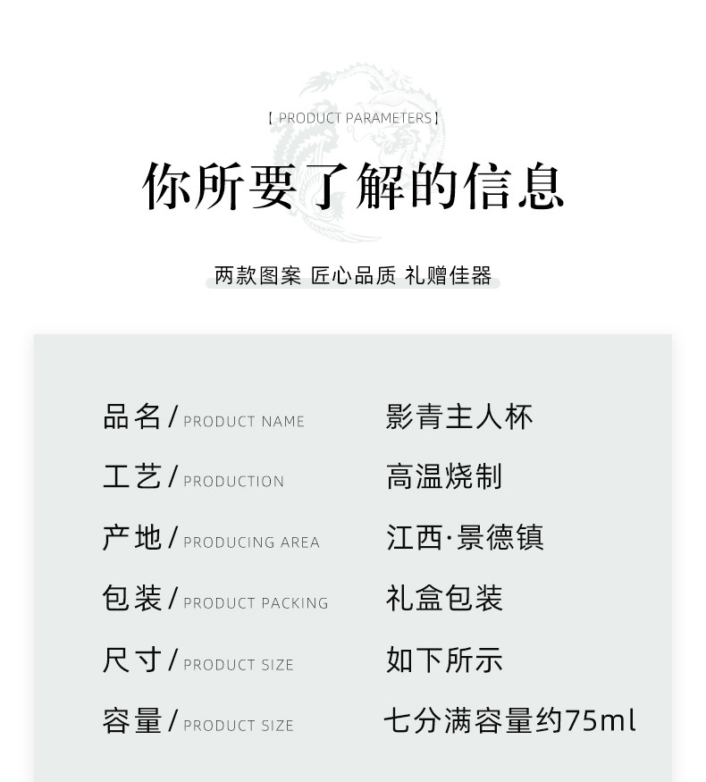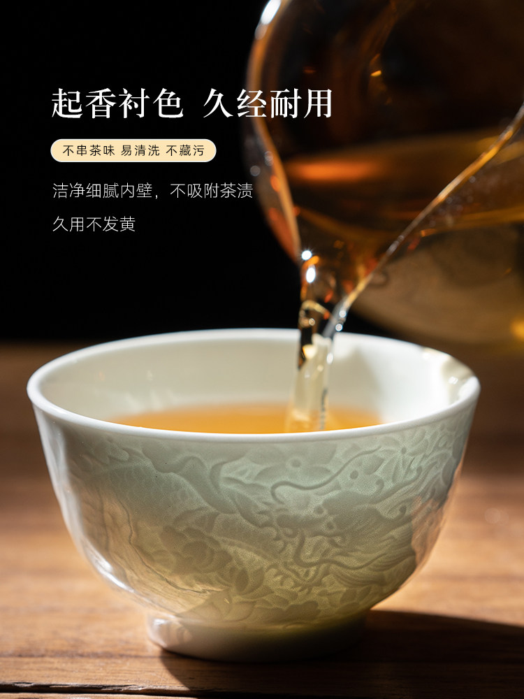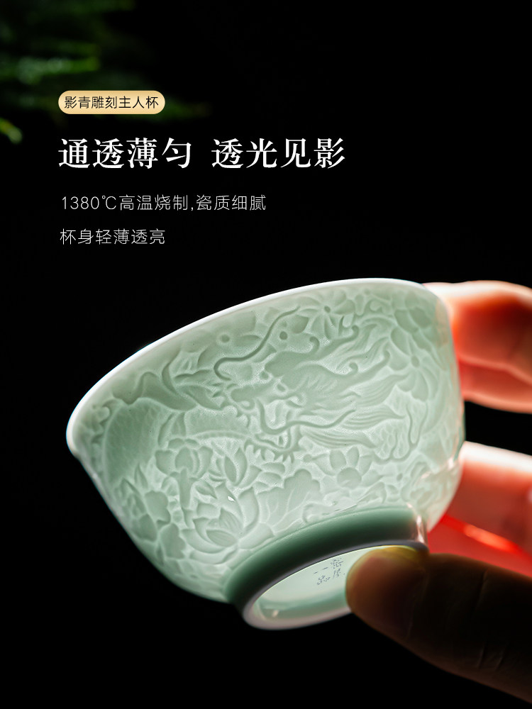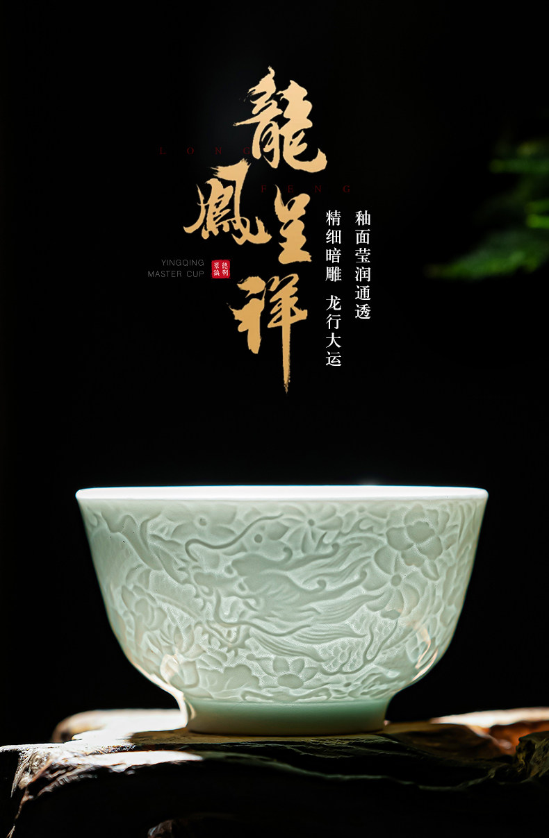 陶瓷功夫小茶杯单个主人杯单杯品茗杯喝茶杯子送礼龙凤杯情侣一对