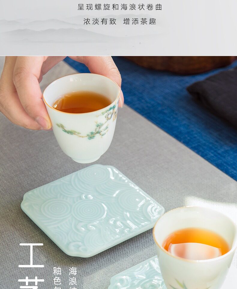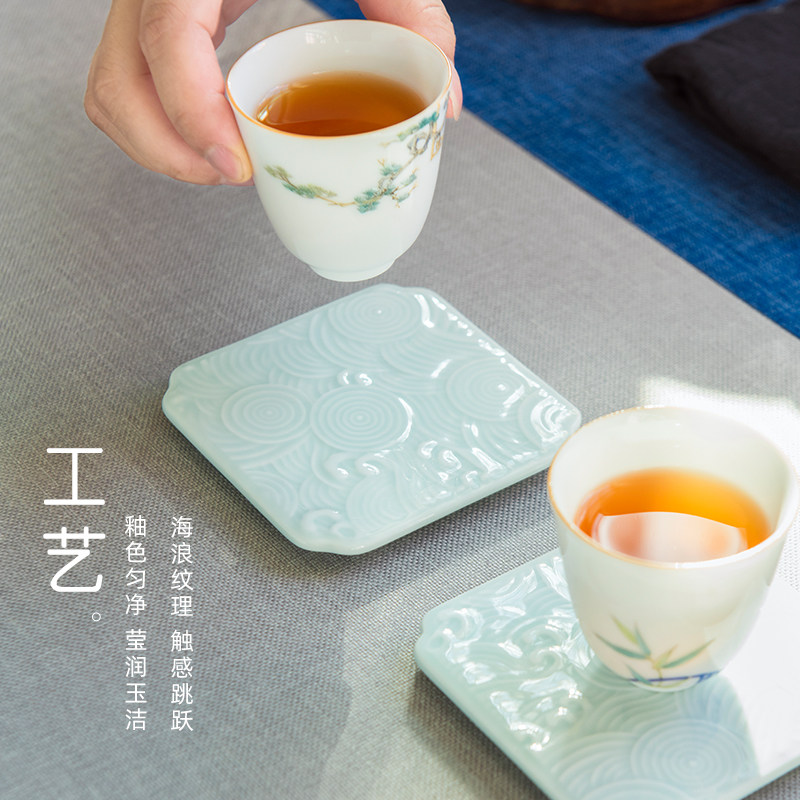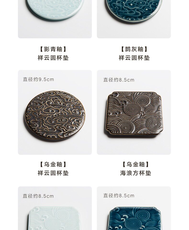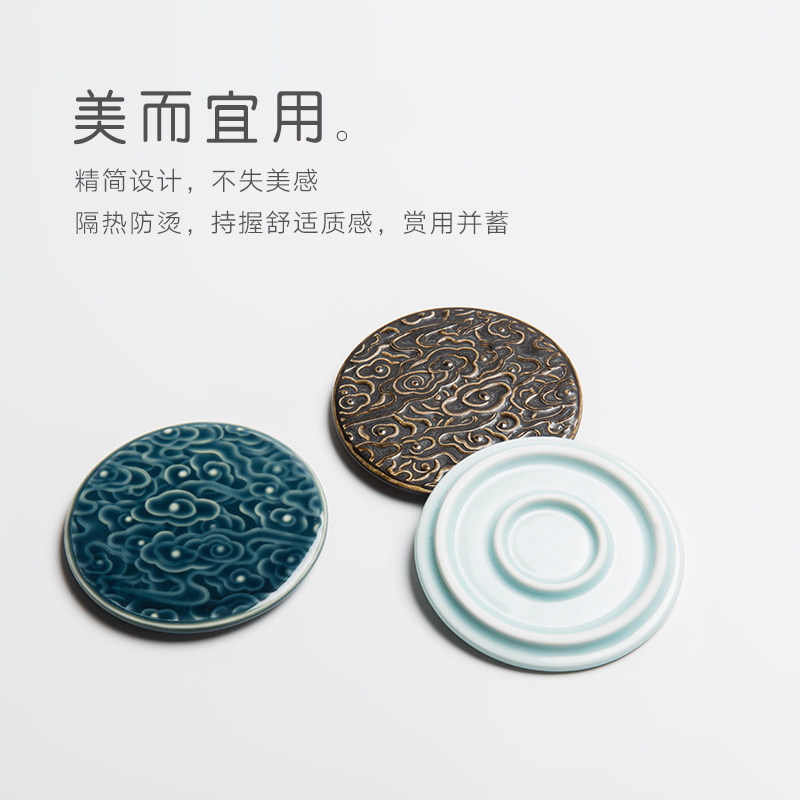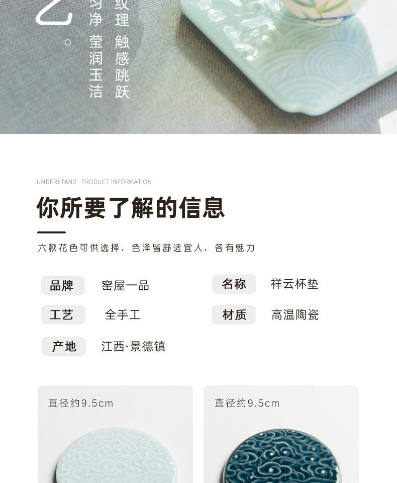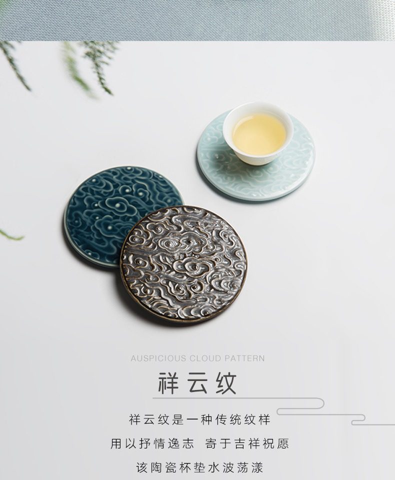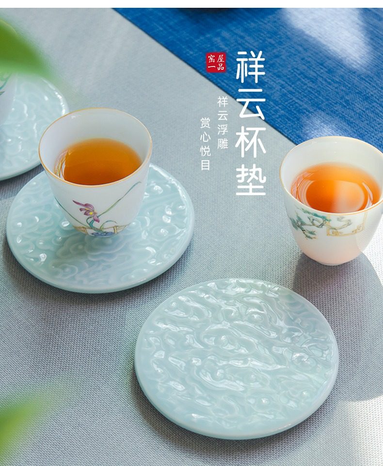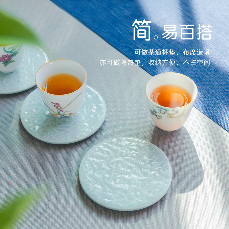 景德镇圆形祥云陶瓷浮雕图案杯垫茶托简约家用客厅功夫茶具配件