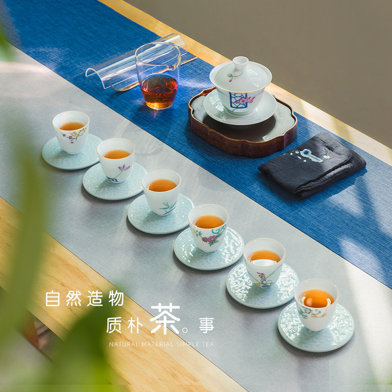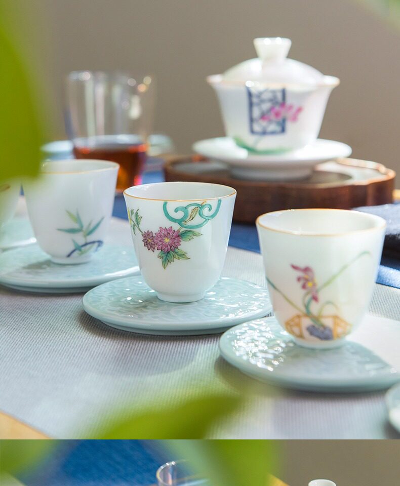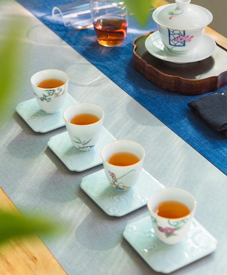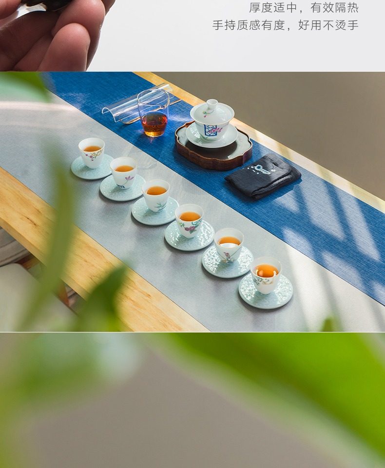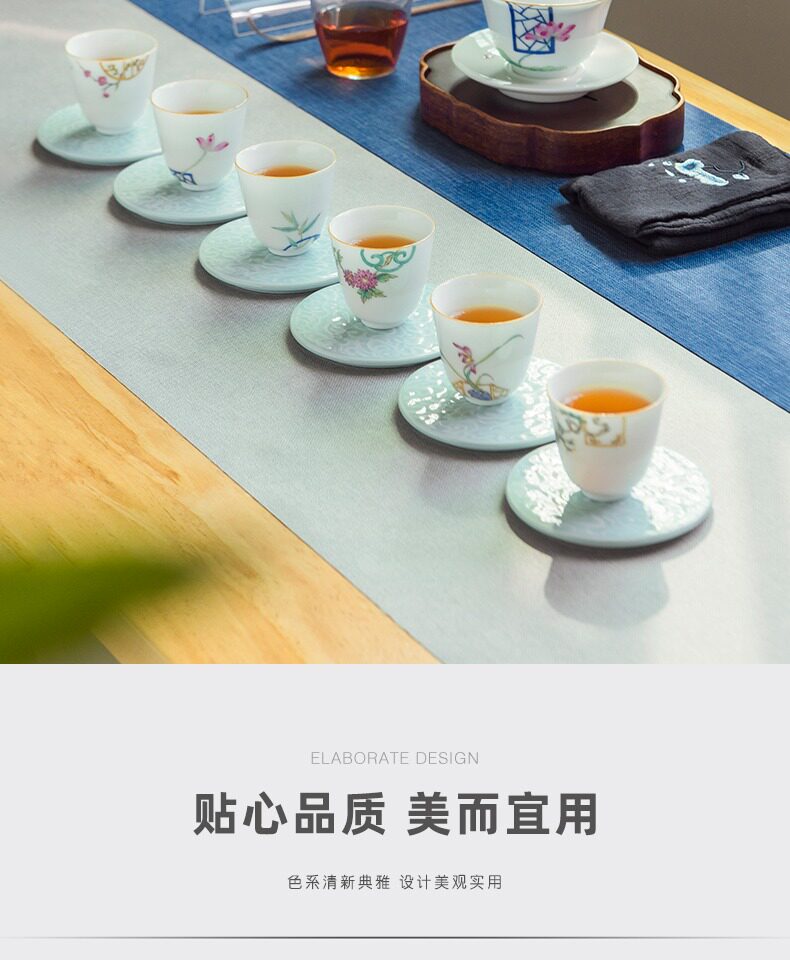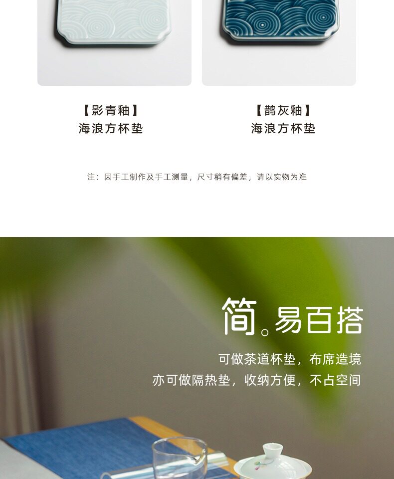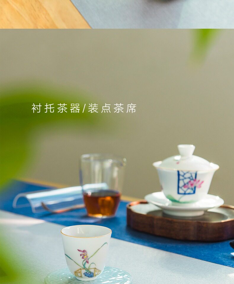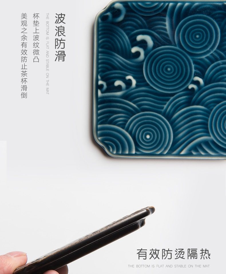 景德镇圆形祥云陶瓷浮雕图案杯垫茶托简约家用客厅功夫茶具配件