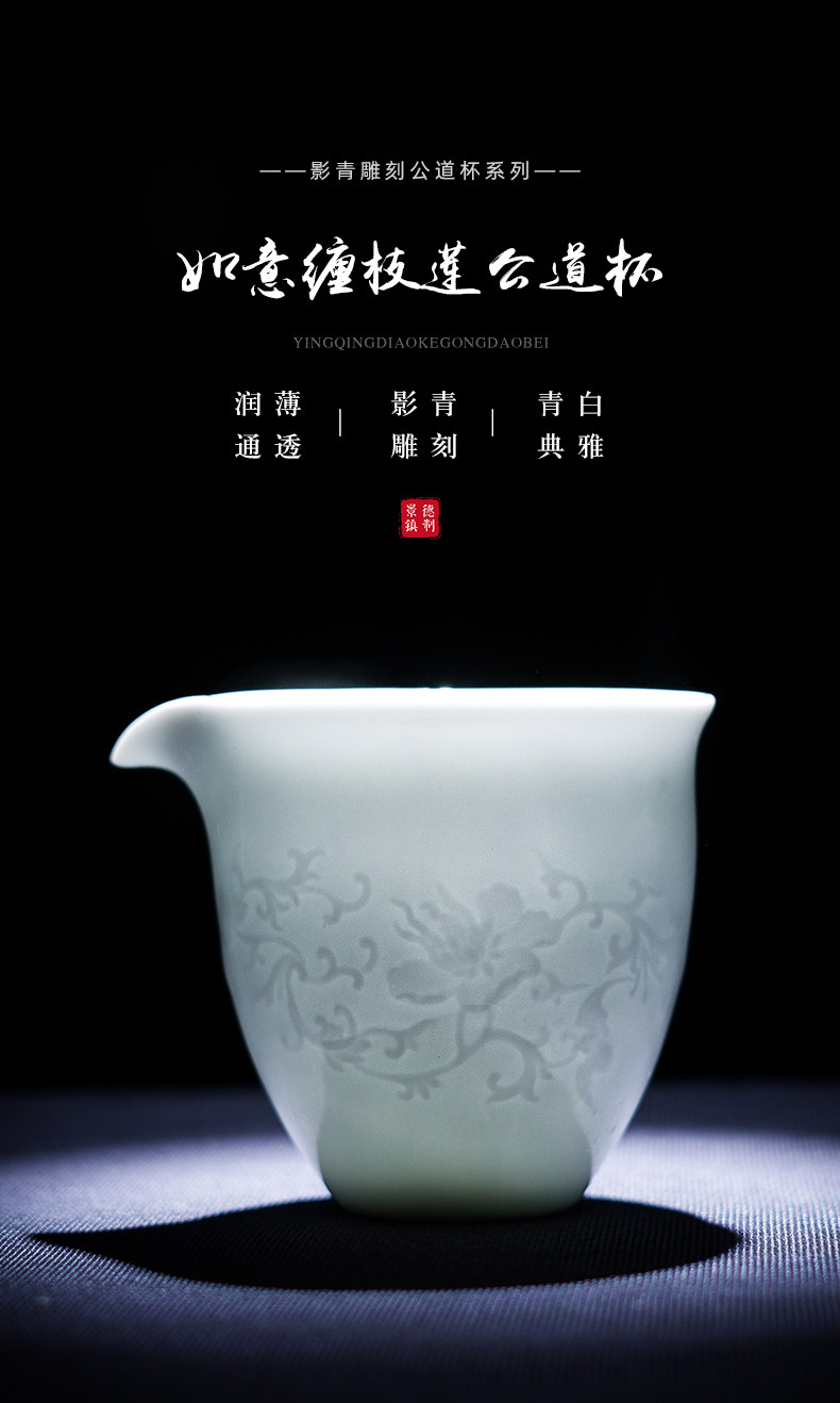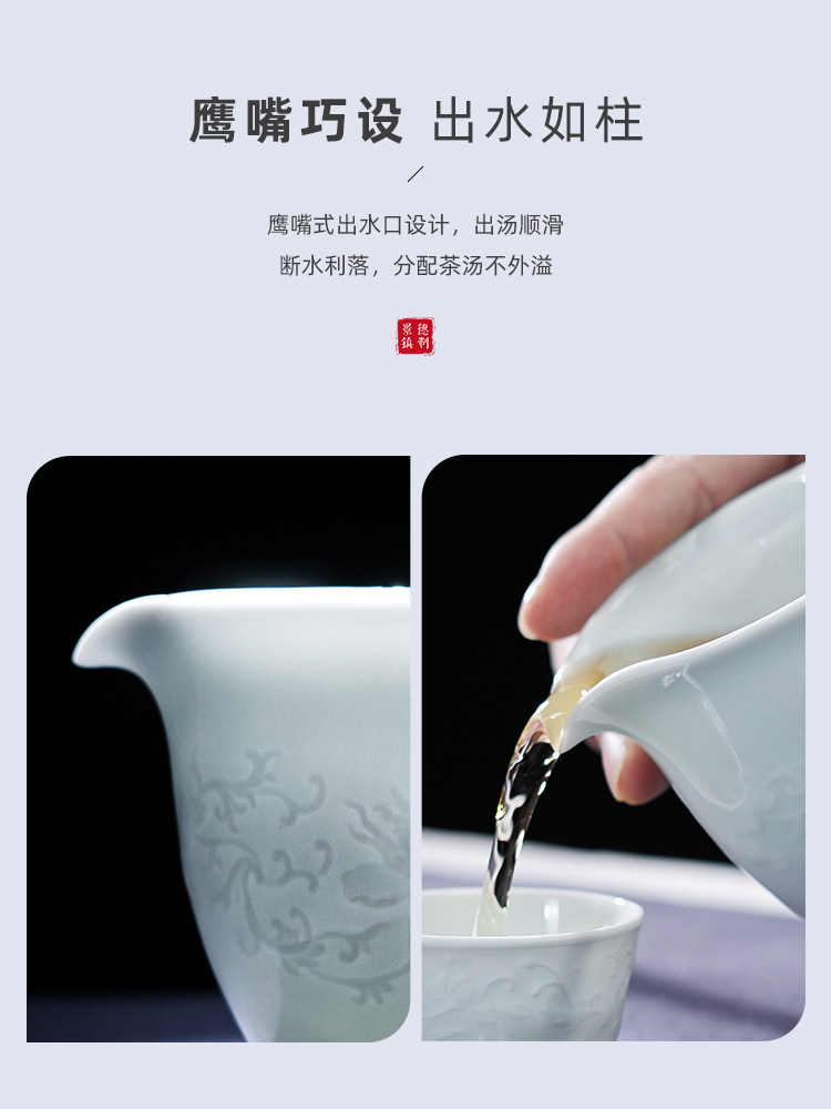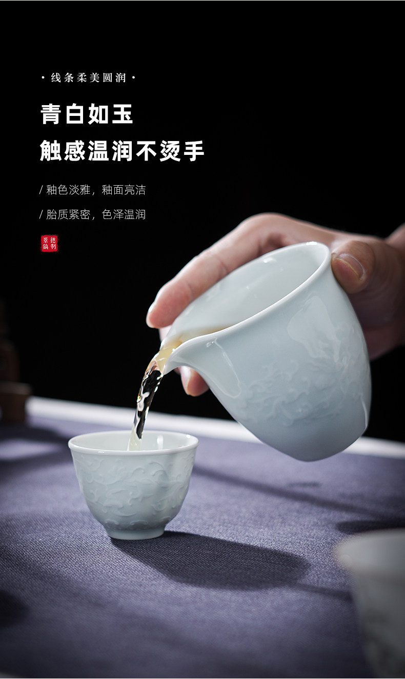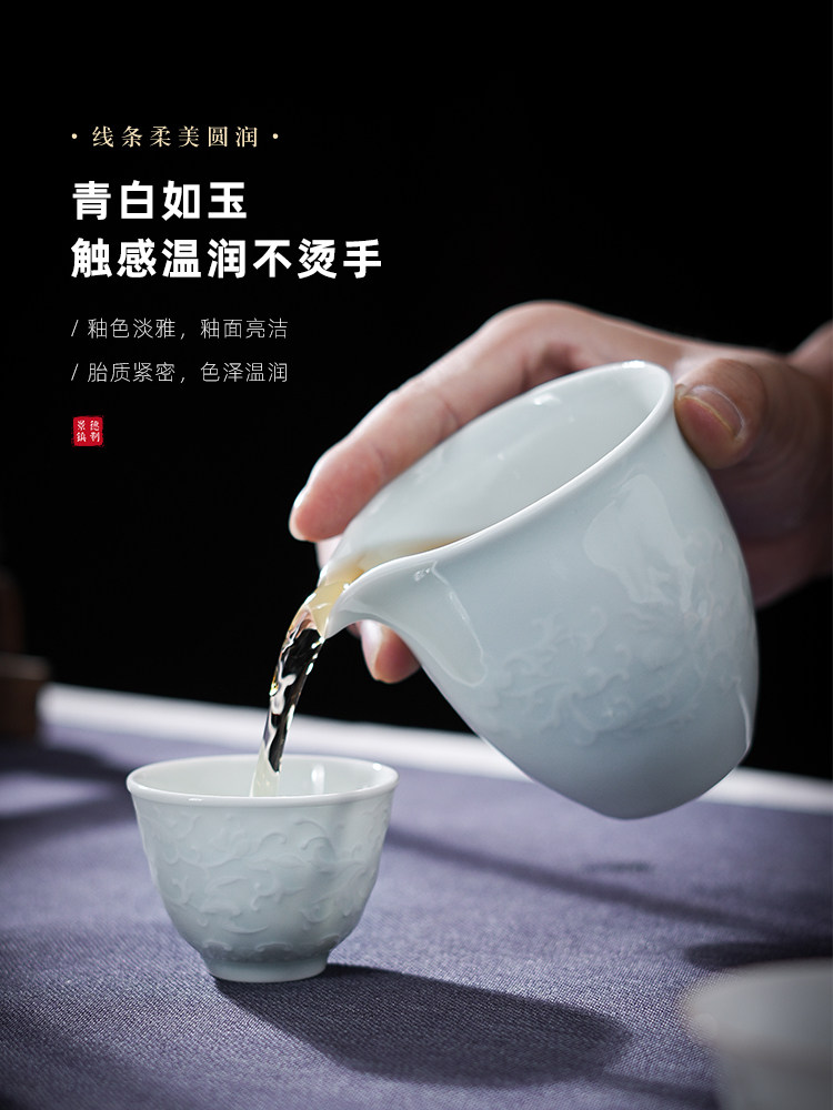 景德镇高端手工雕刻影青白瓷公道杯茶海分茶器防烫公杯陶瓷茶具