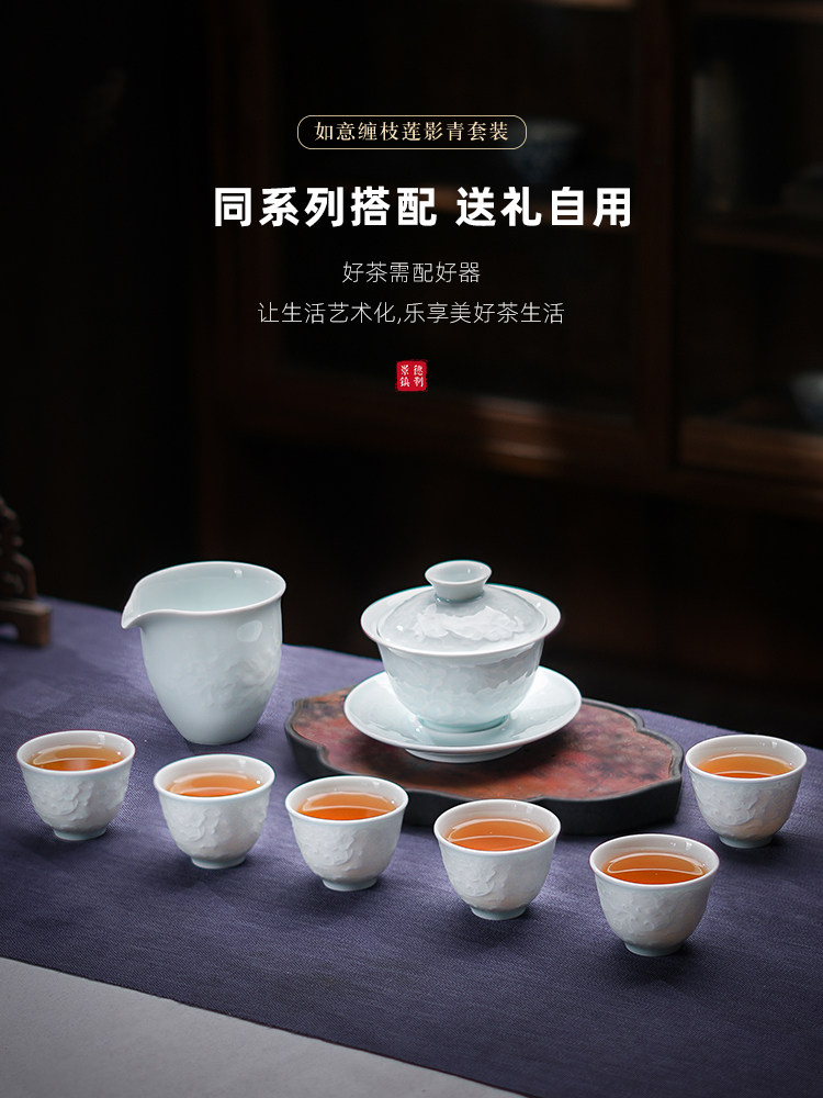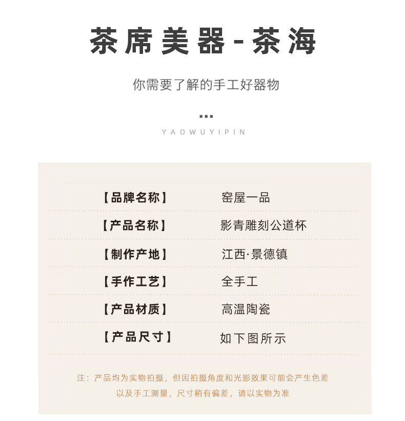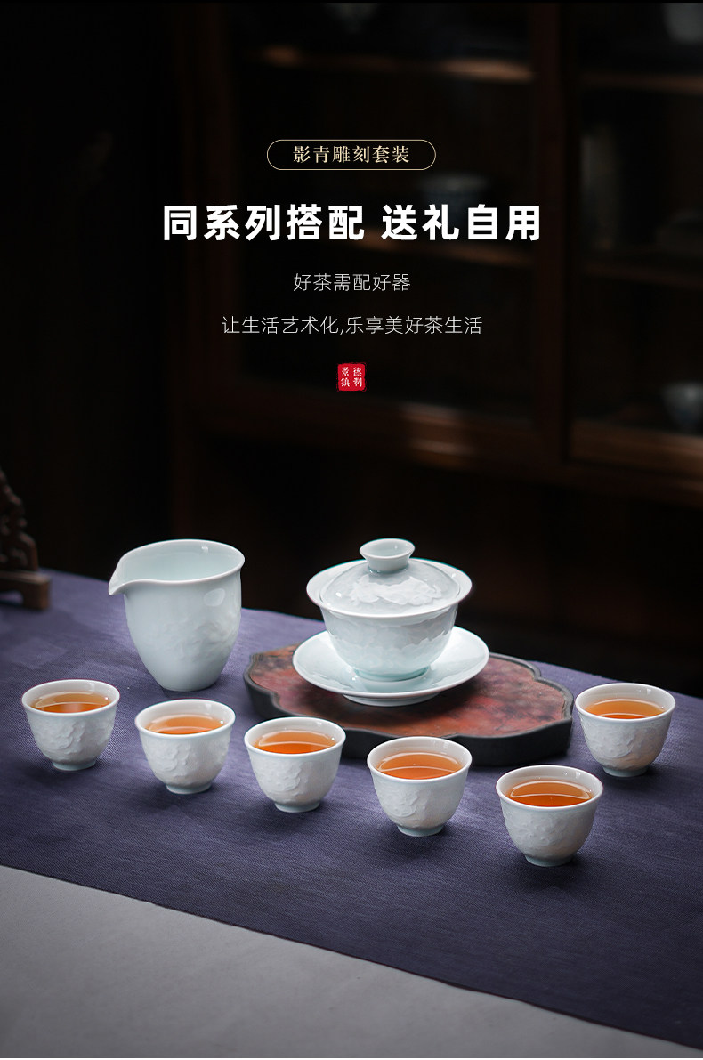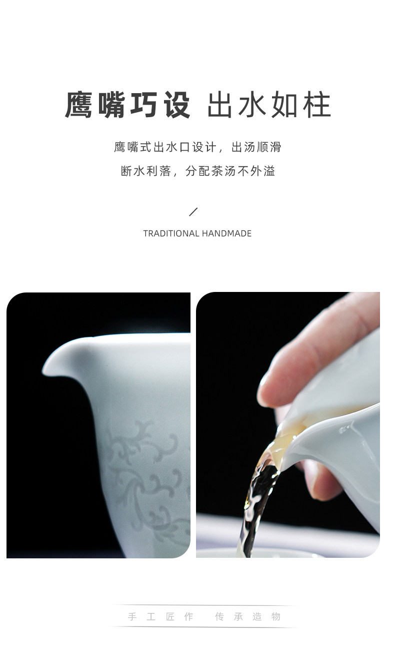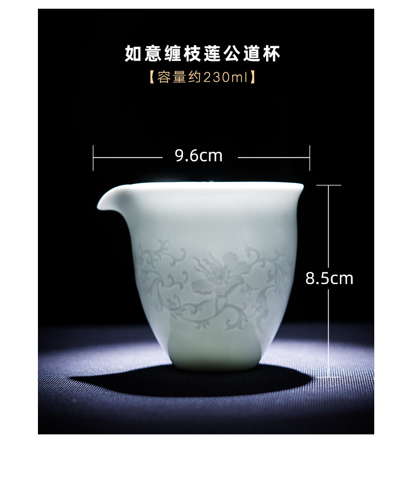 景德镇高端手工雕刻影青白瓷公道杯茶海分茶器防烫公杯陶瓷茶具