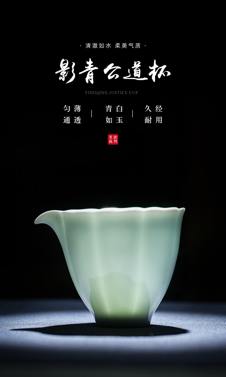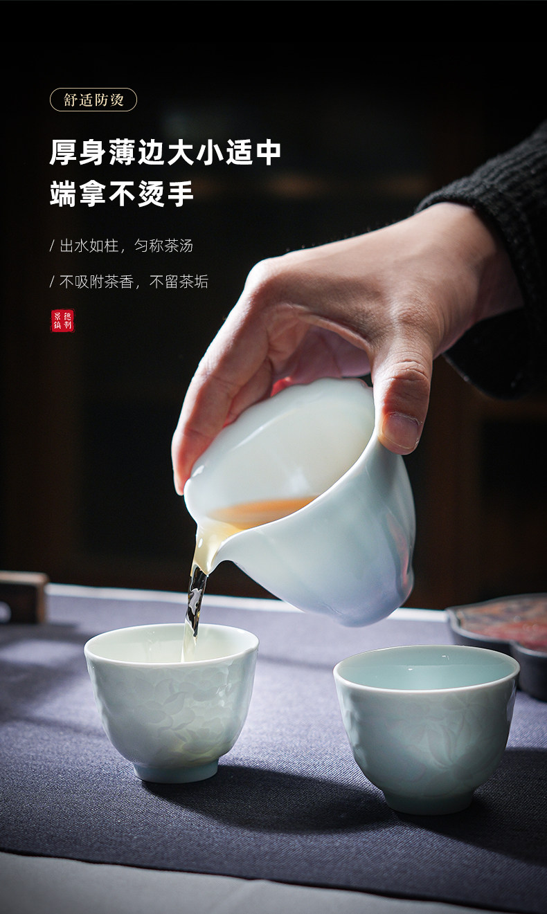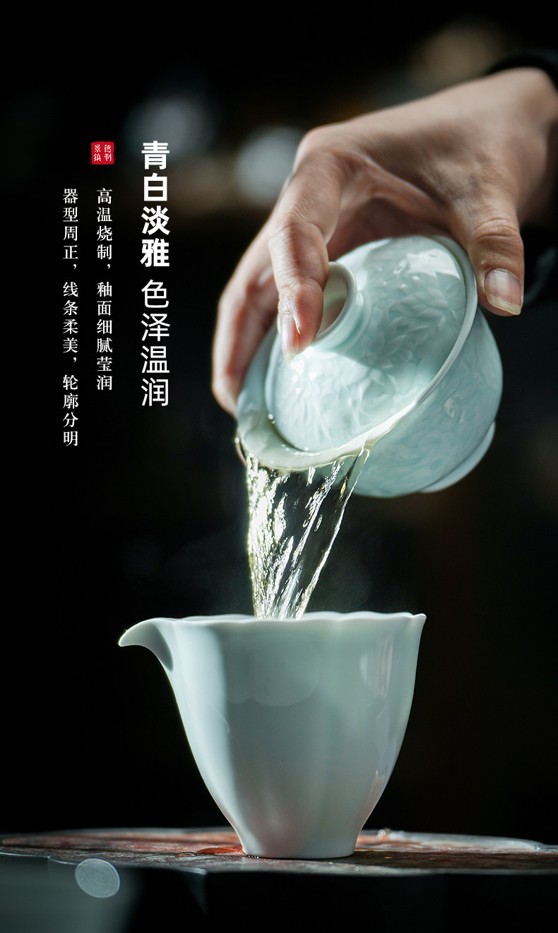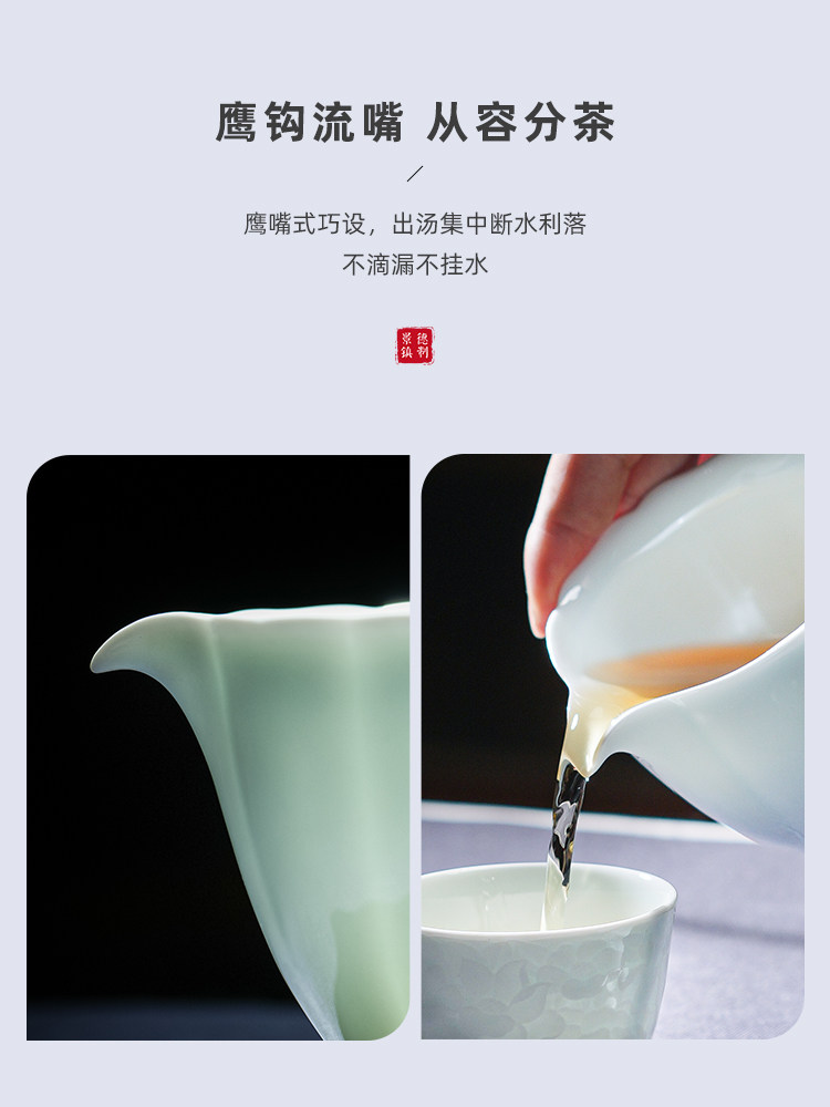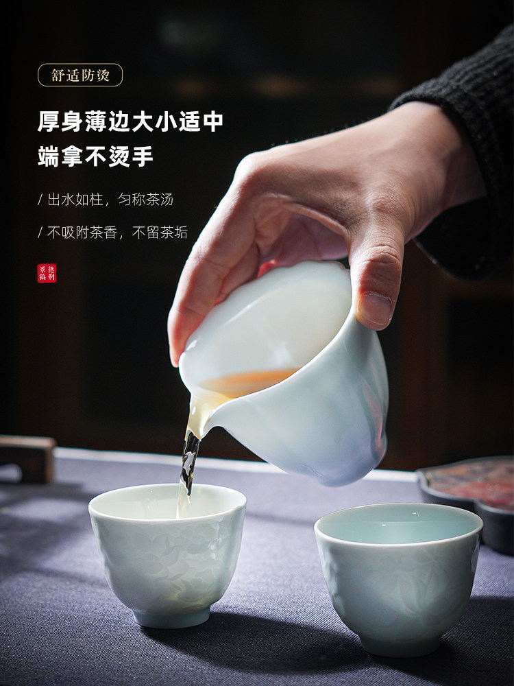景德镇陶瓷雕刻茶具影青白瓷公道杯茶海分茶器防烫公杯