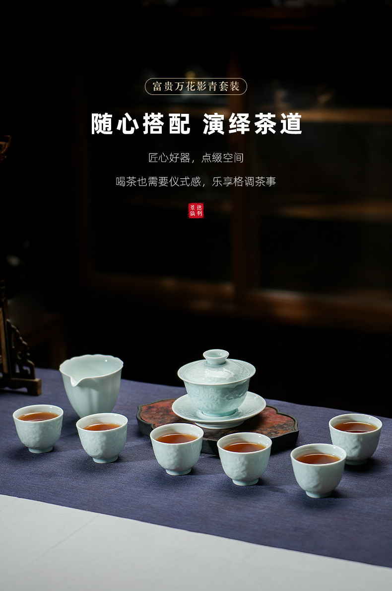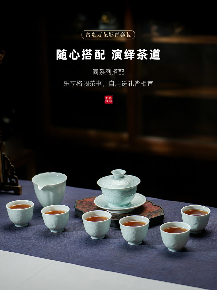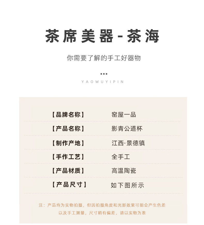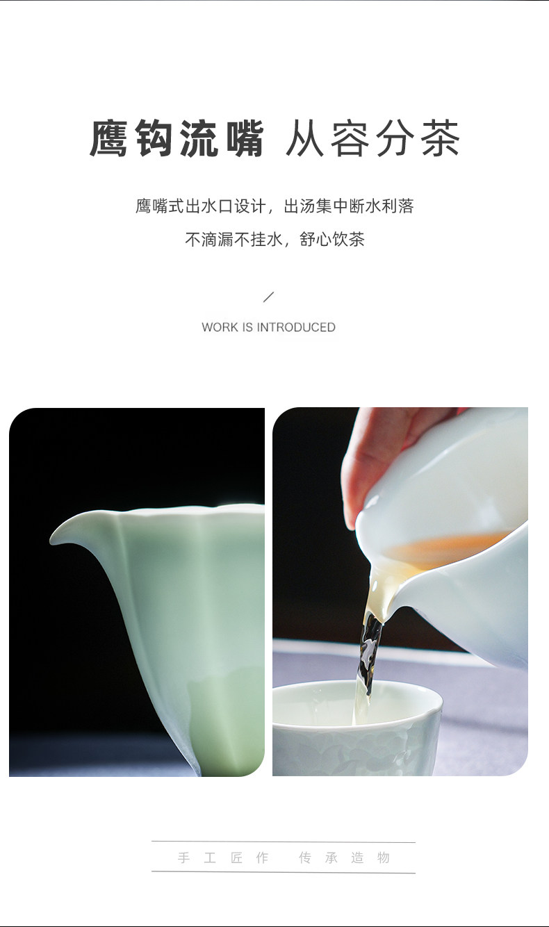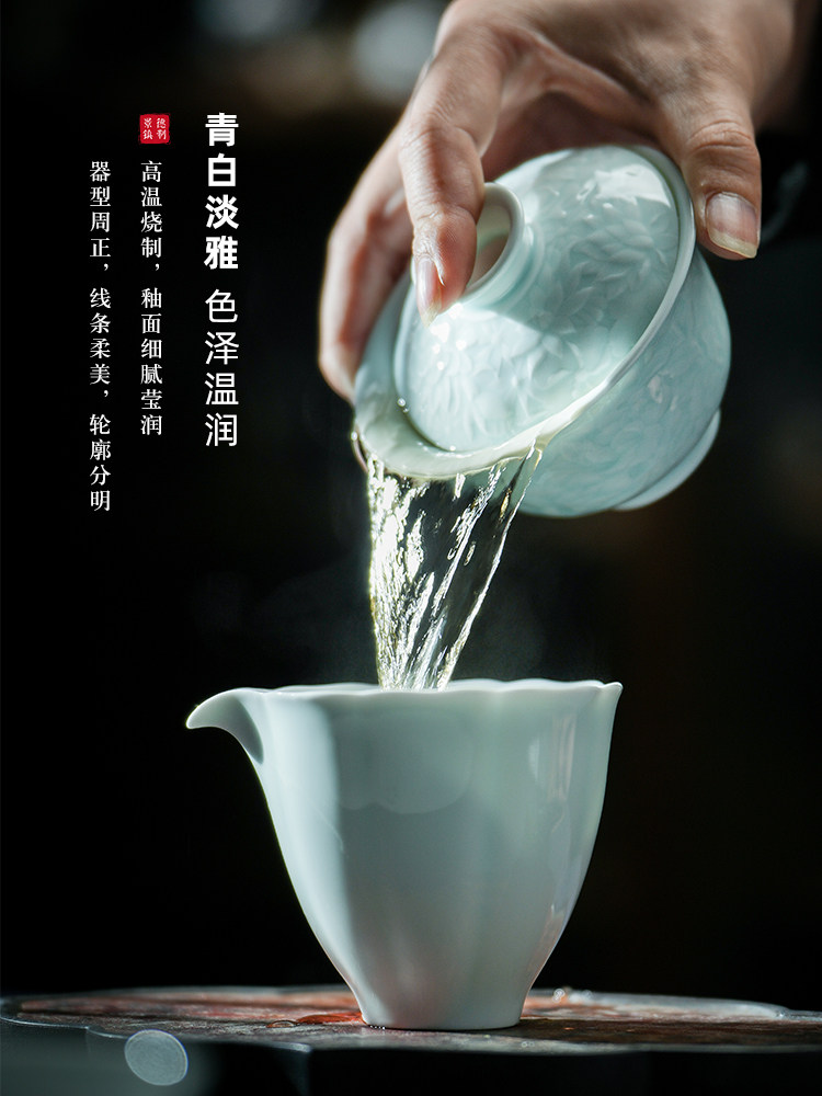 景德镇陶瓷雕刻茶具影青白瓷公道杯茶海分茶器防烫公杯
