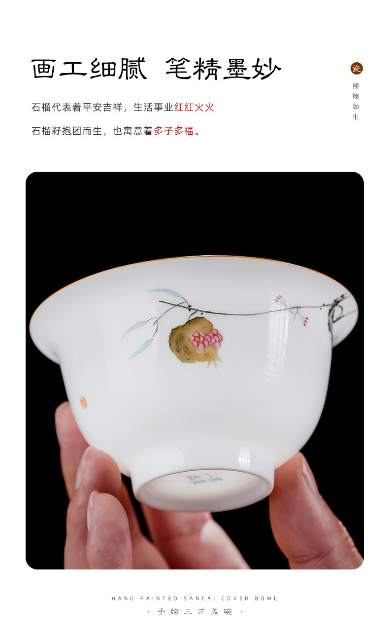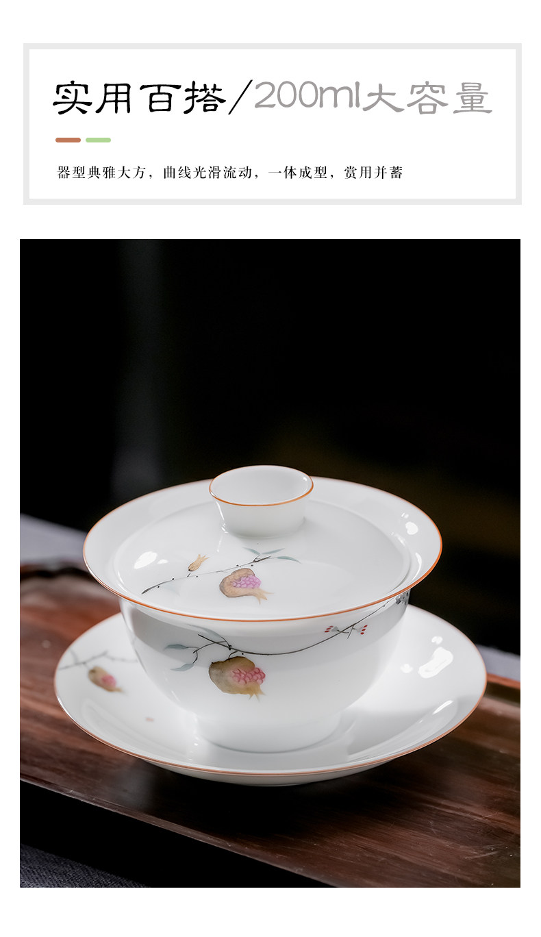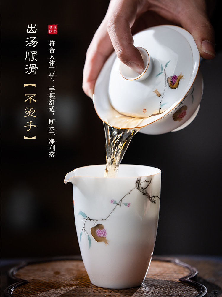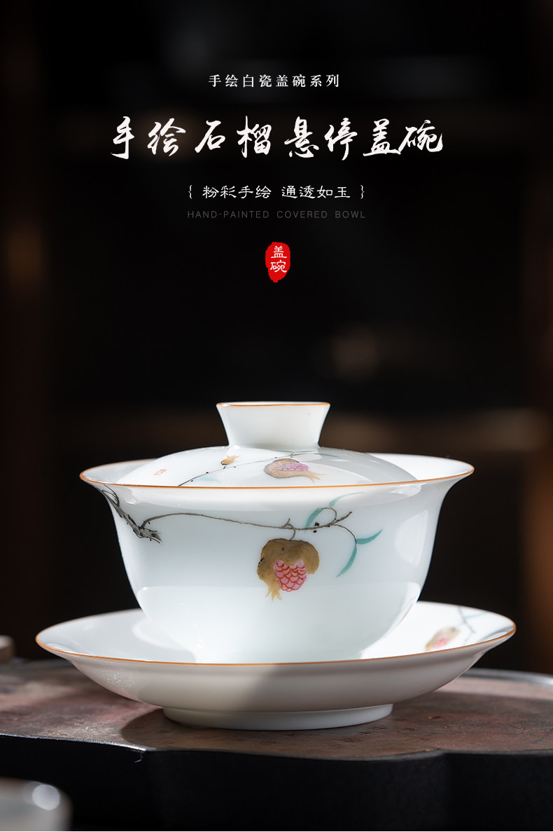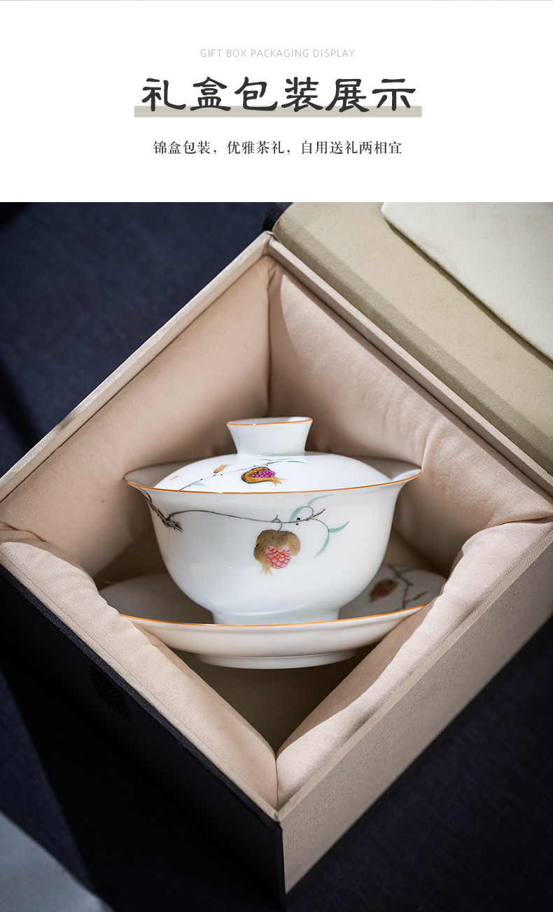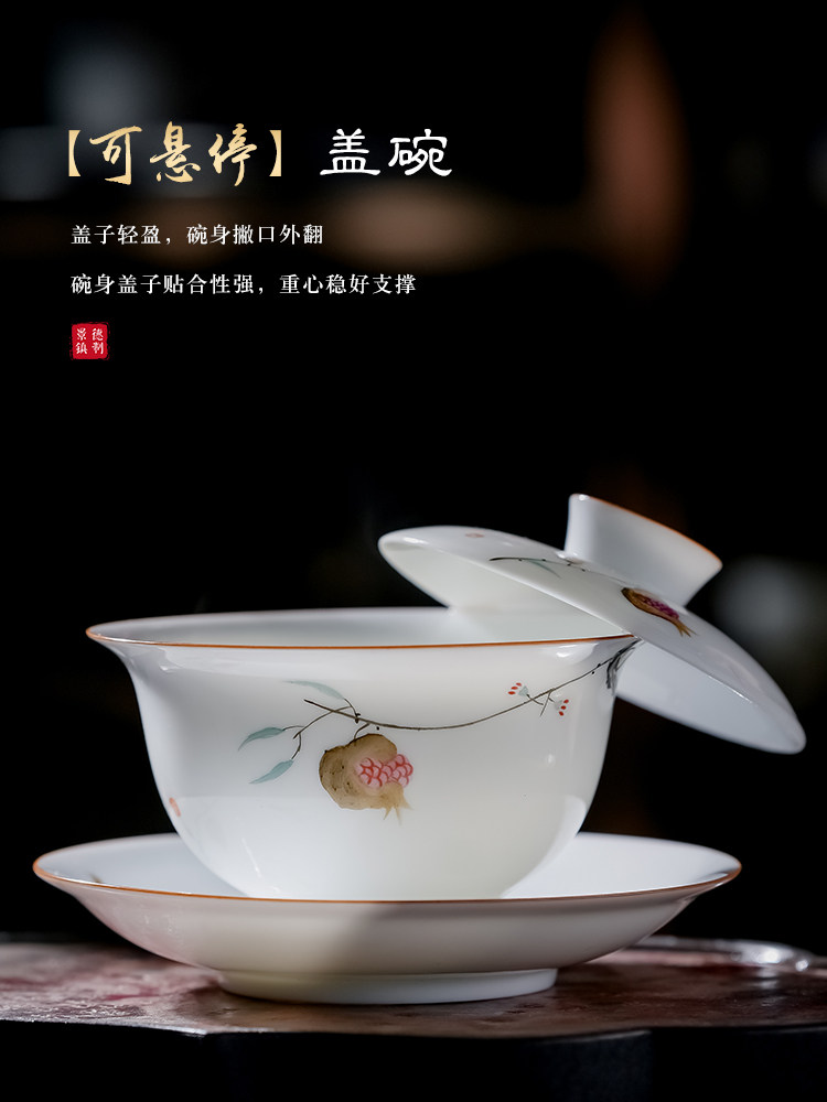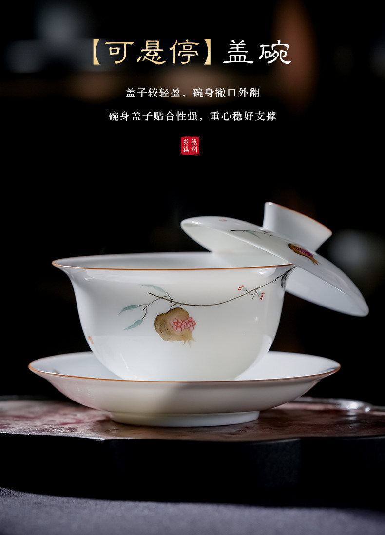 景德镇手绘白瓷三才盖碗茶杯薄胎大号不烫手陶瓷泡茶茶碗茶具套装