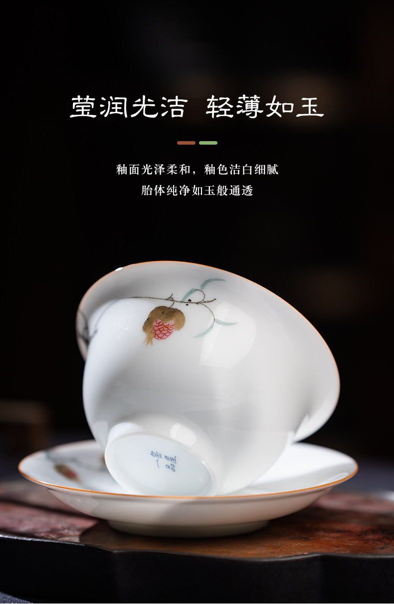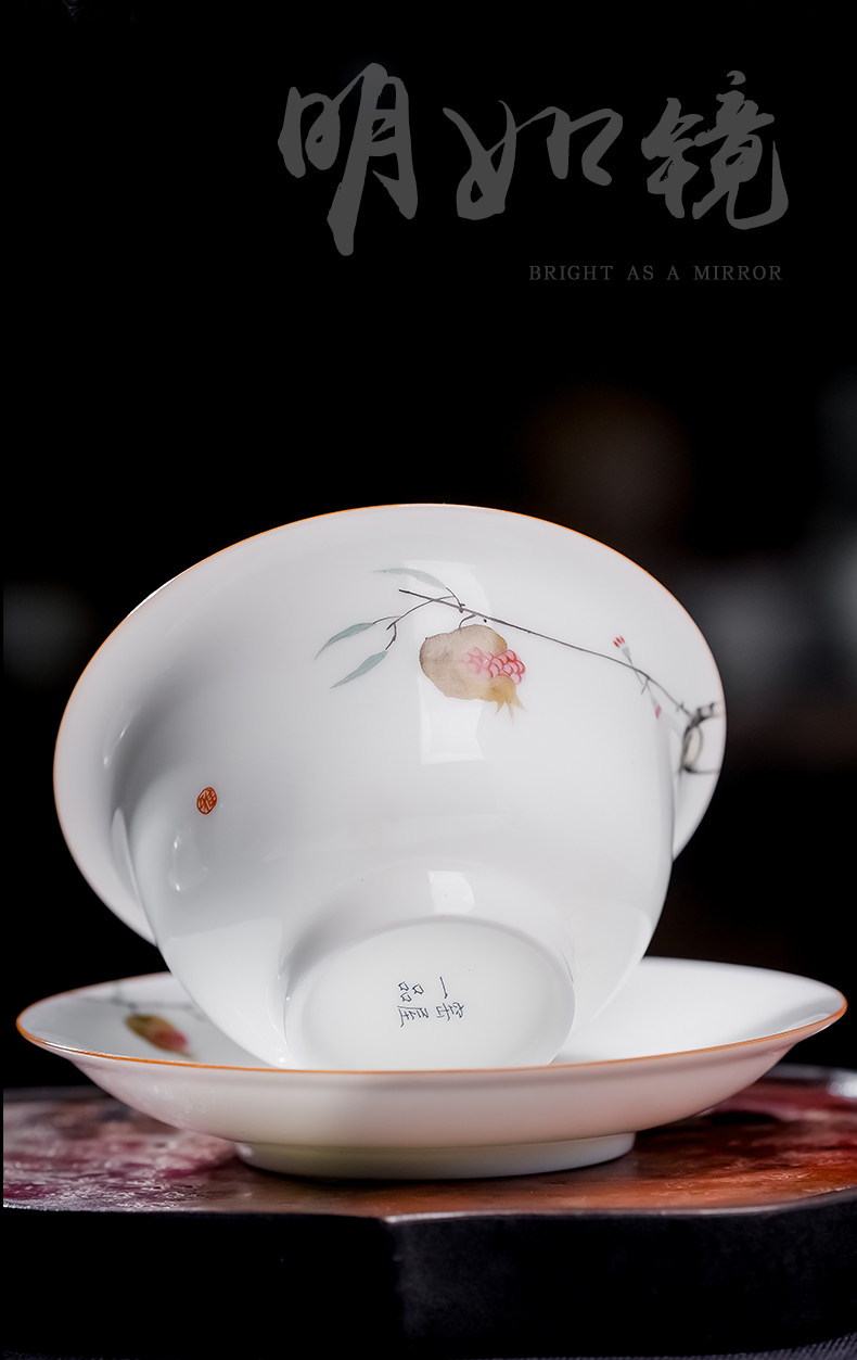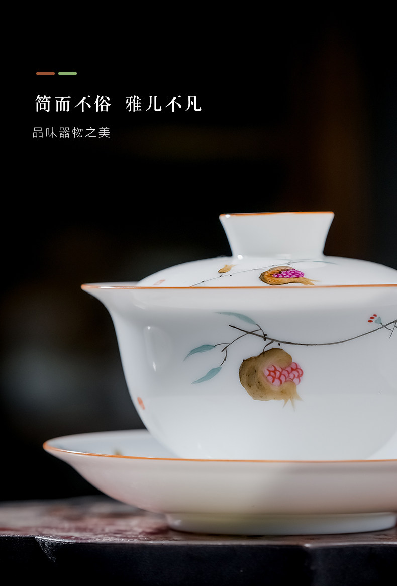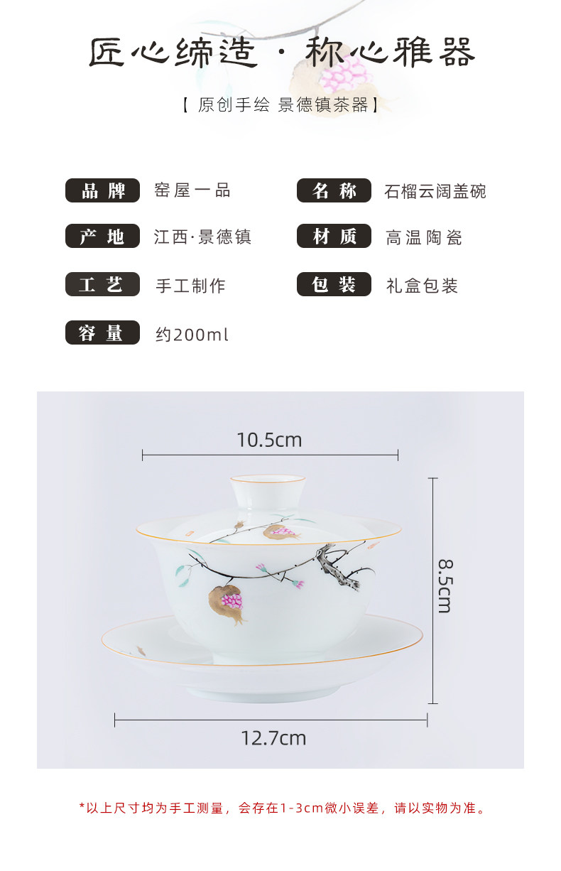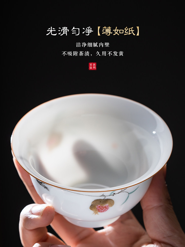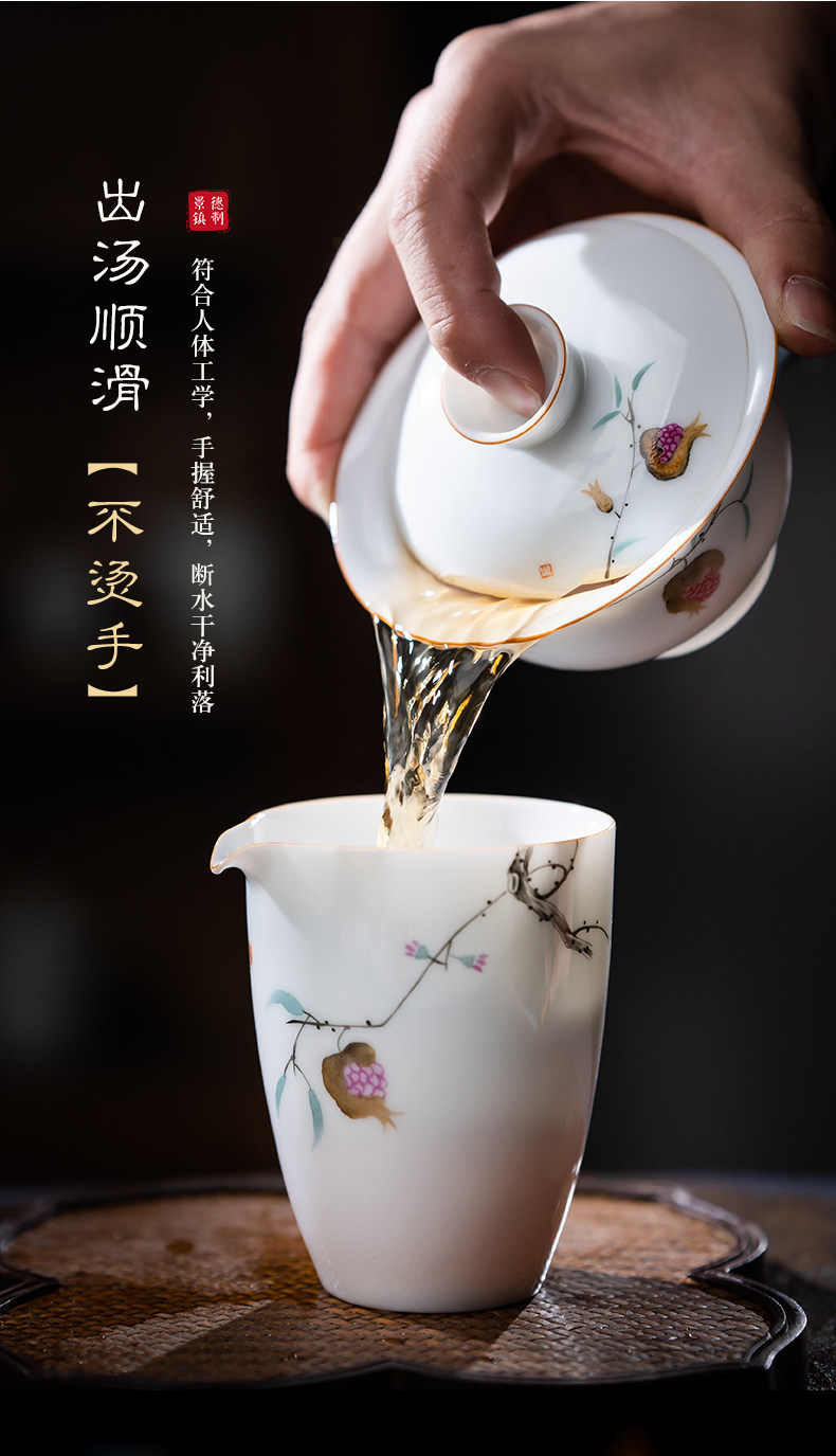 景德镇手绘白瓷三才盖碗茶杯薄胎大号不烫手陶瓷泡茶茶碗茶具套装