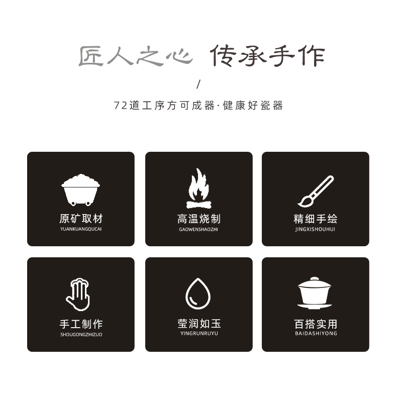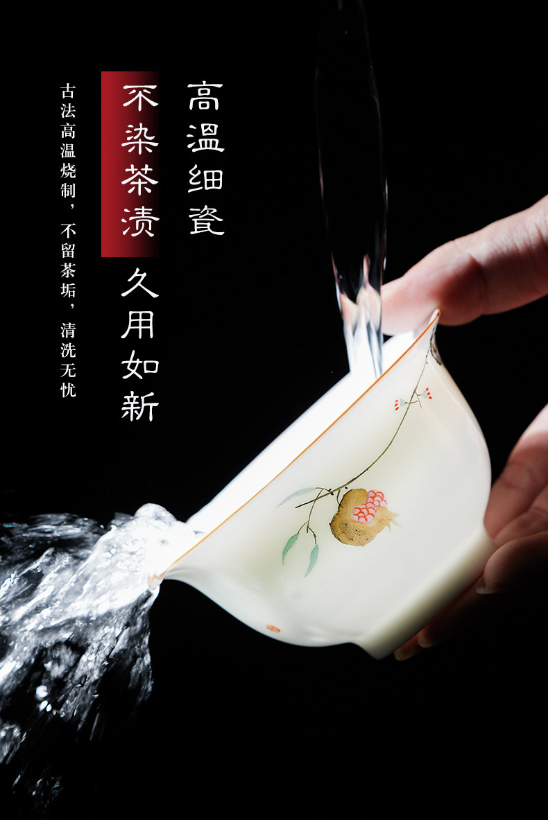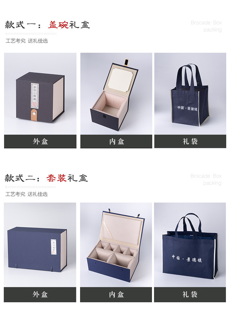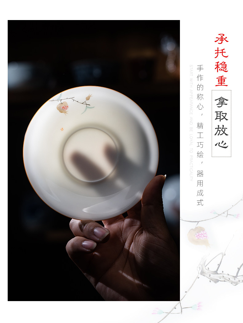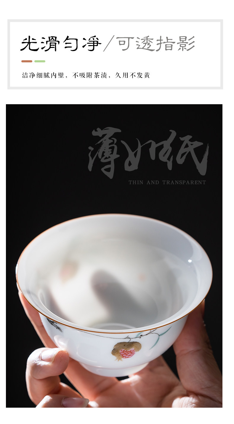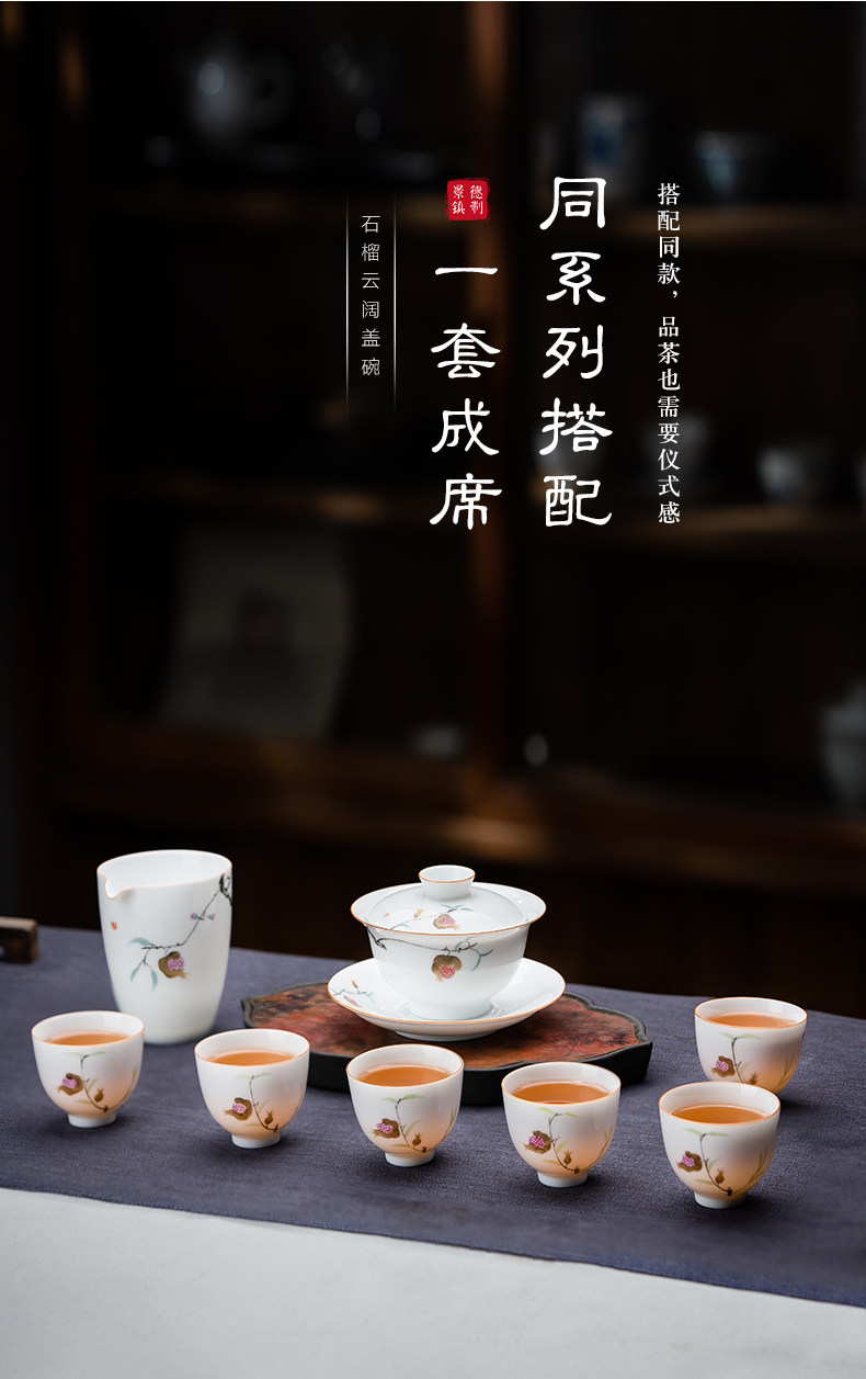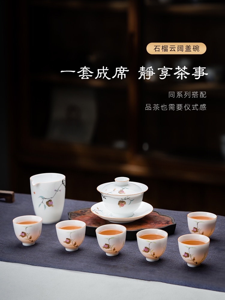 景德镇手绘白瓷三才盖碗茶杯薄胎大号不烫手陶瓷泡茶茶碗茶具套装