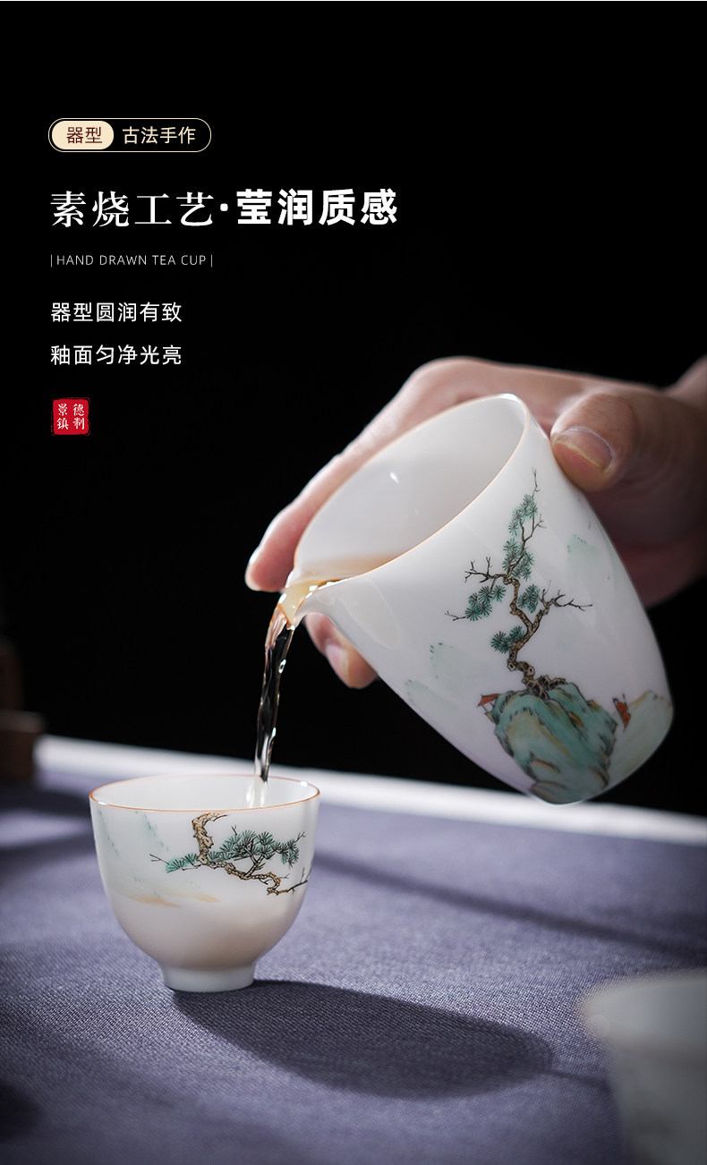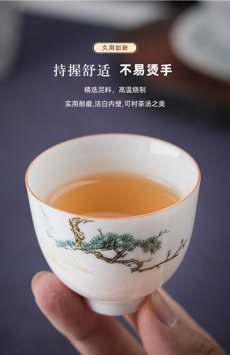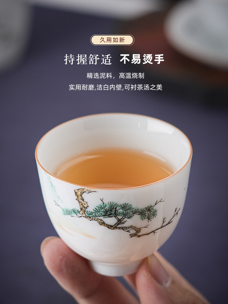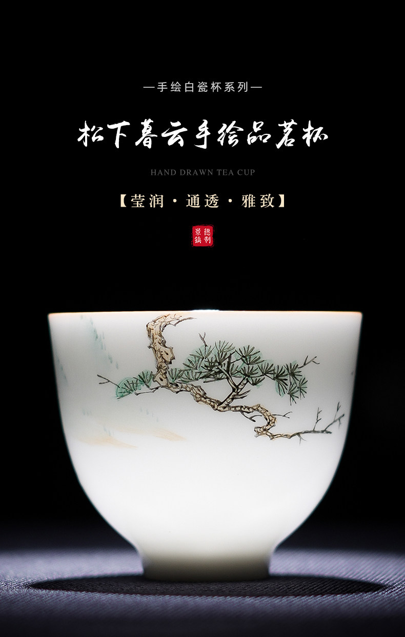 景德镇手绘山水功夫茶杯白瓷品茗杯小茶蛊喝茶杯子陶瓷单杯茶具