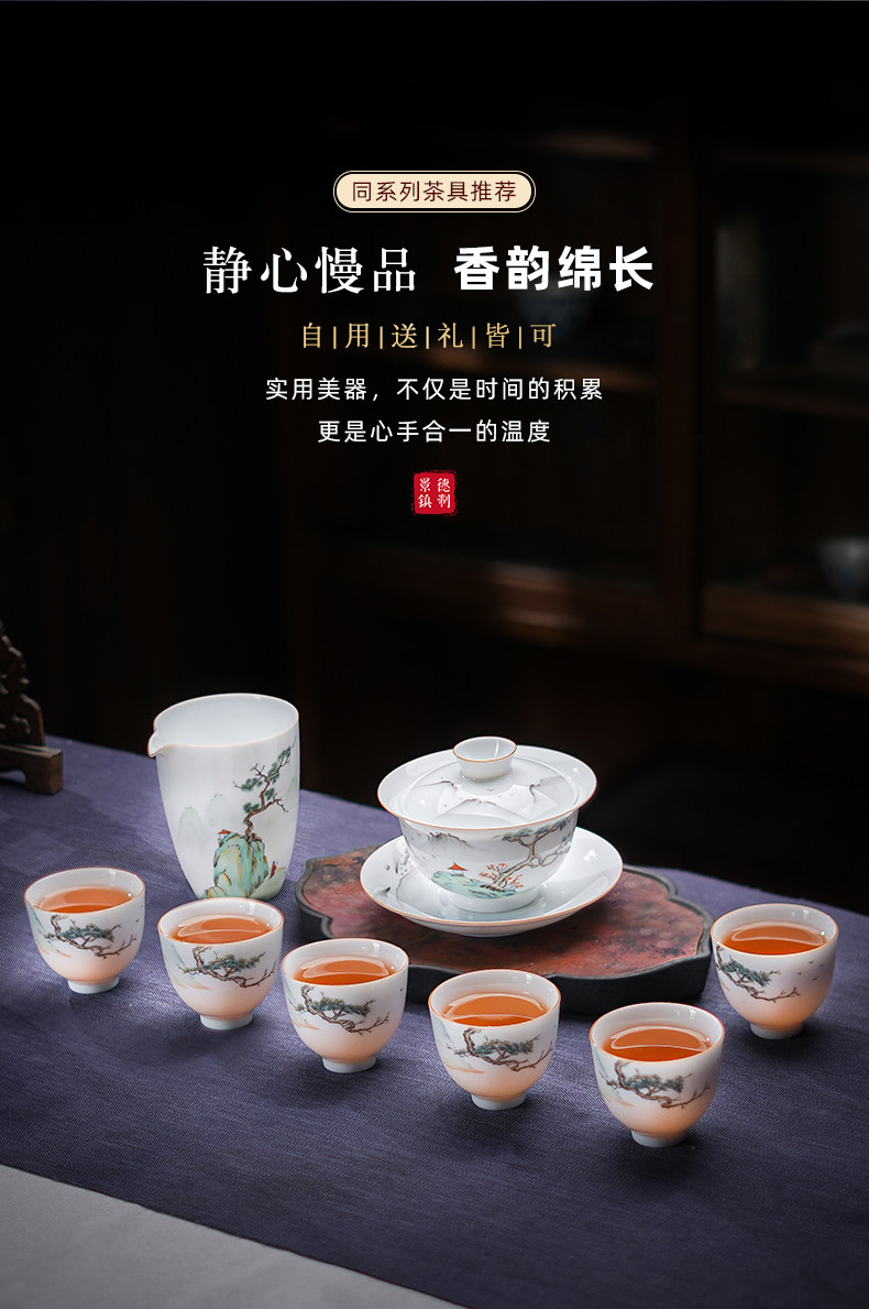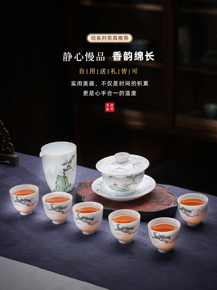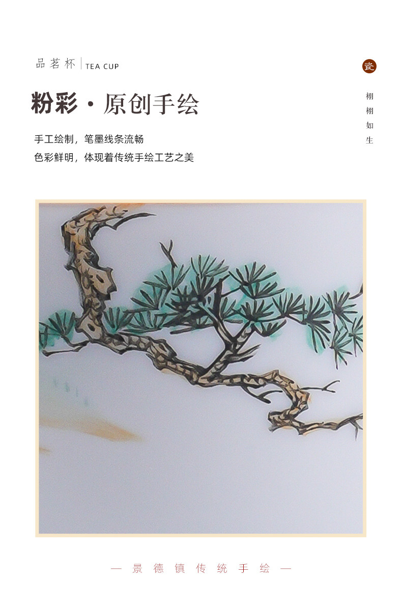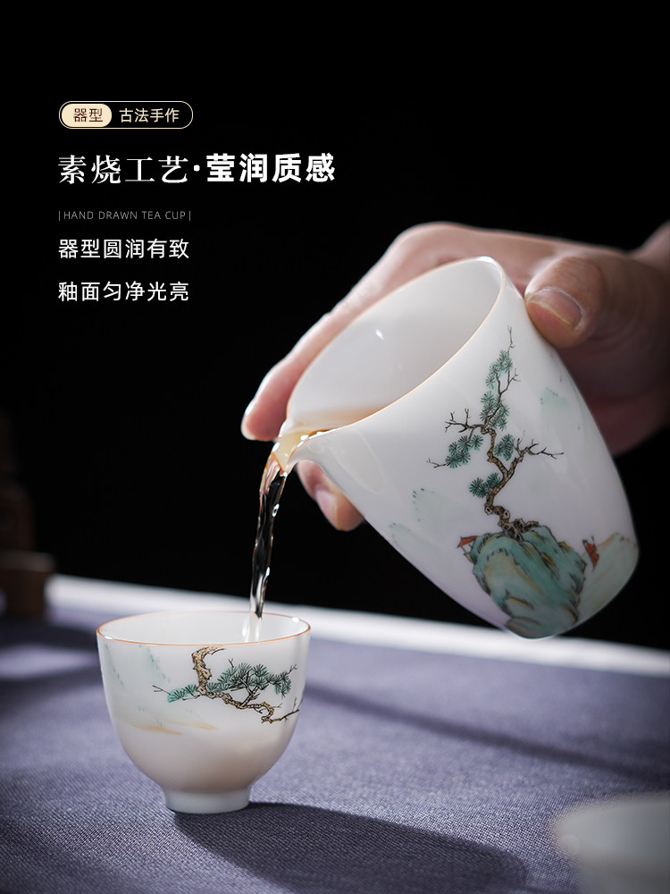 景德镇手绘山水功夫茶杯白瓷品茗杯小茶蛊喝茶杯子陶瓷单杯茶具