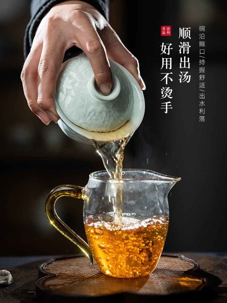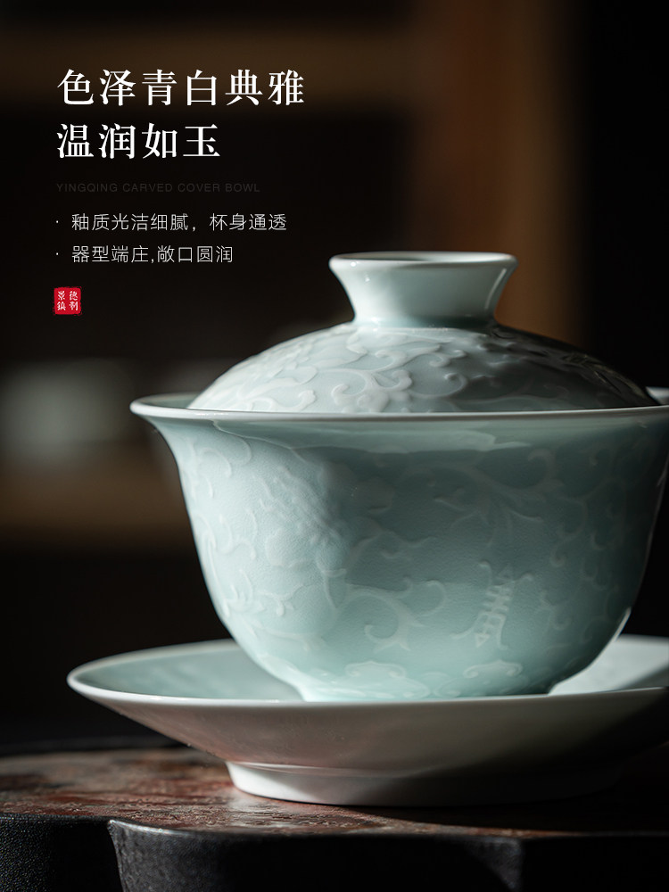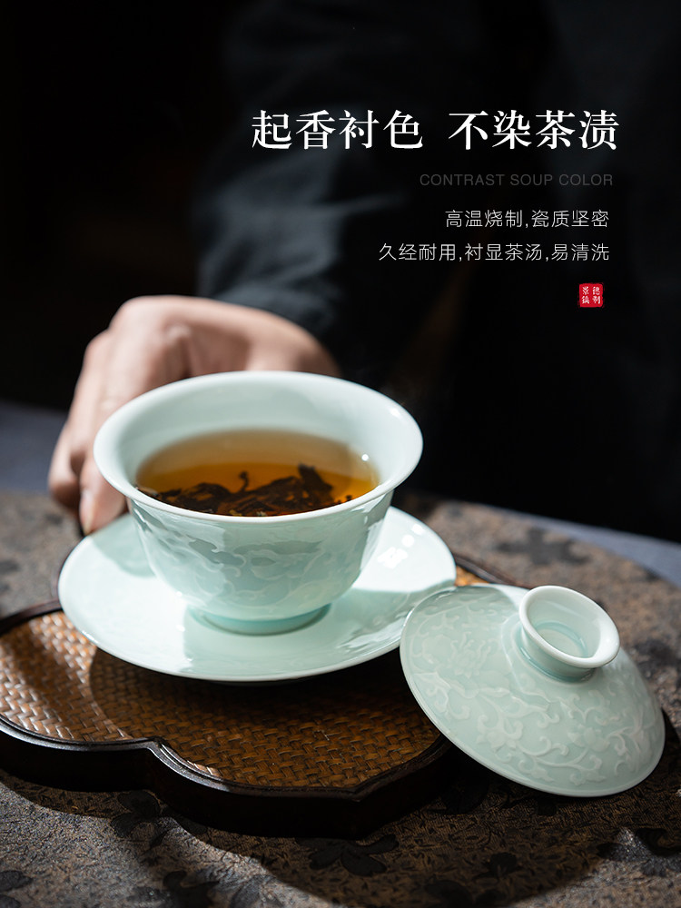 jingdezhen ceramic white porcelain sancai gaiwan tea cup kung fu tea set suit single high-end tea bowl not hot