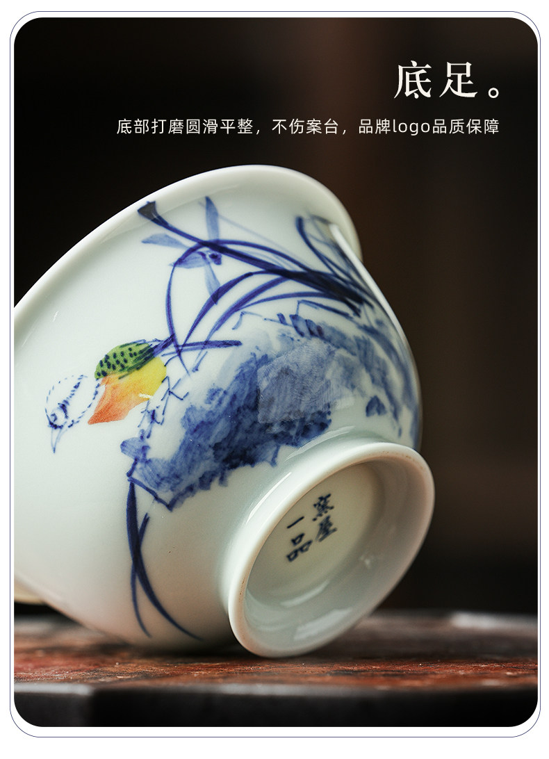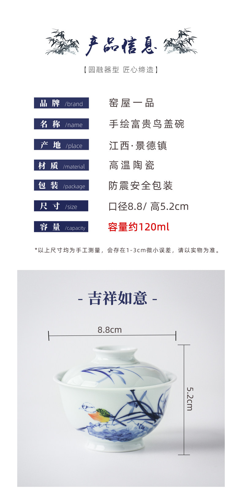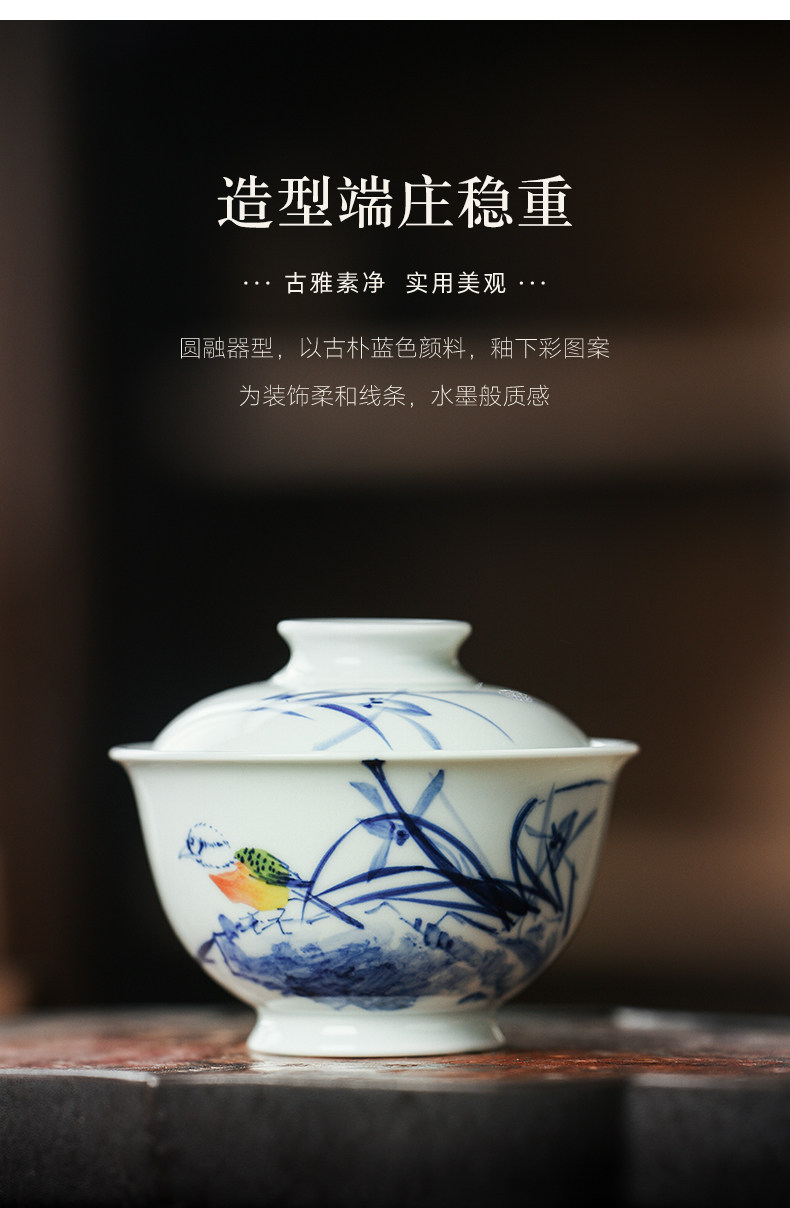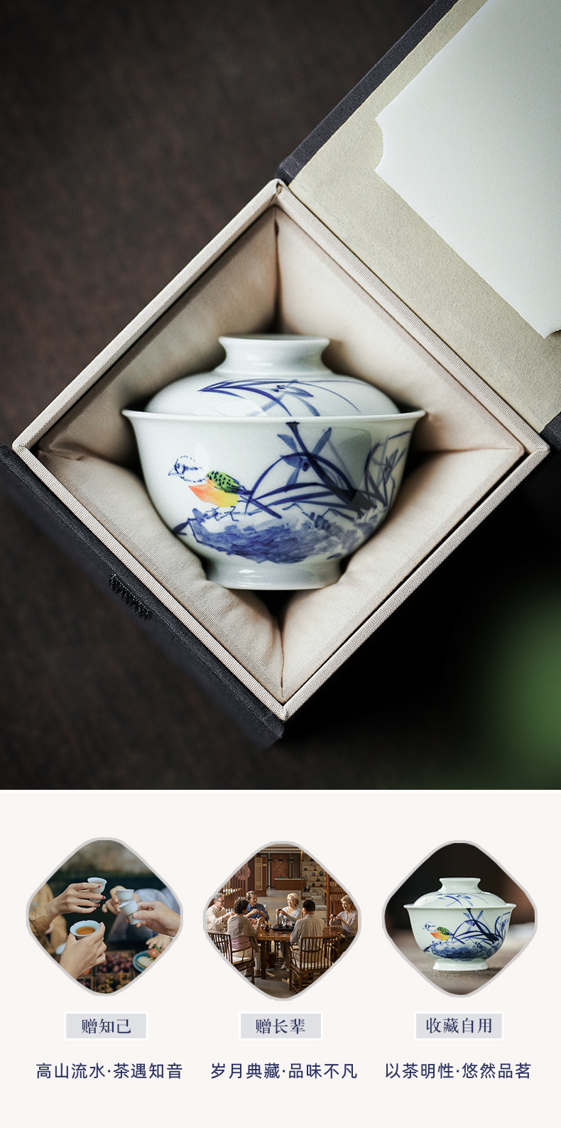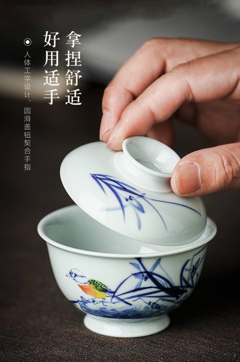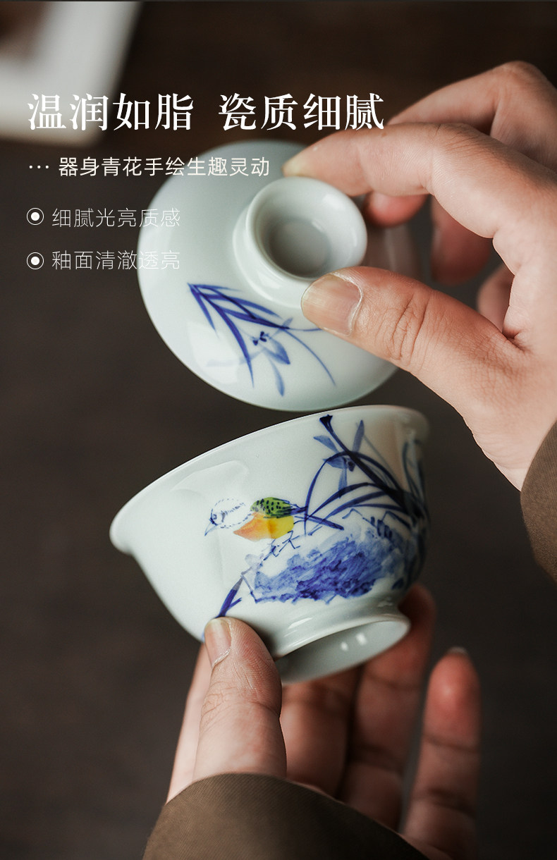 景德镇陶瓷釉下彩青花功夫茶具 岩茶小盖碗茶杯 单个高档茶碗泡茶