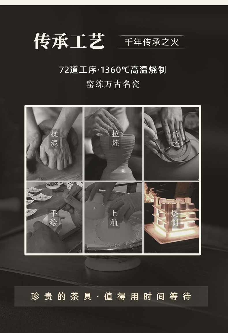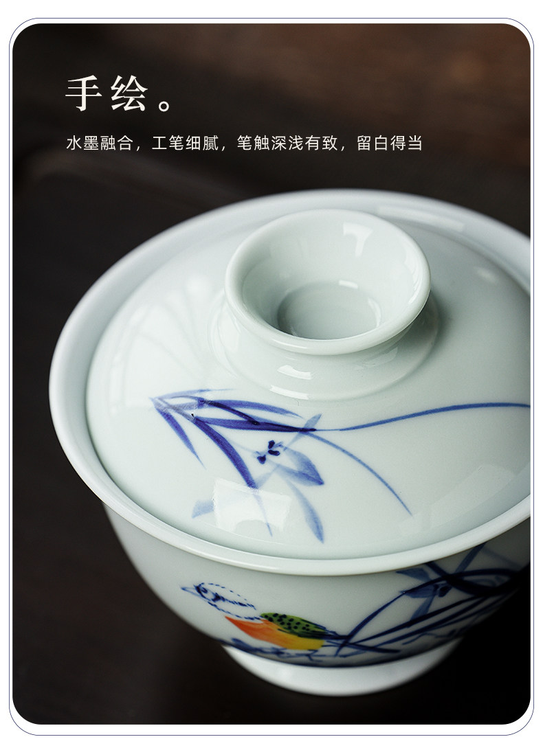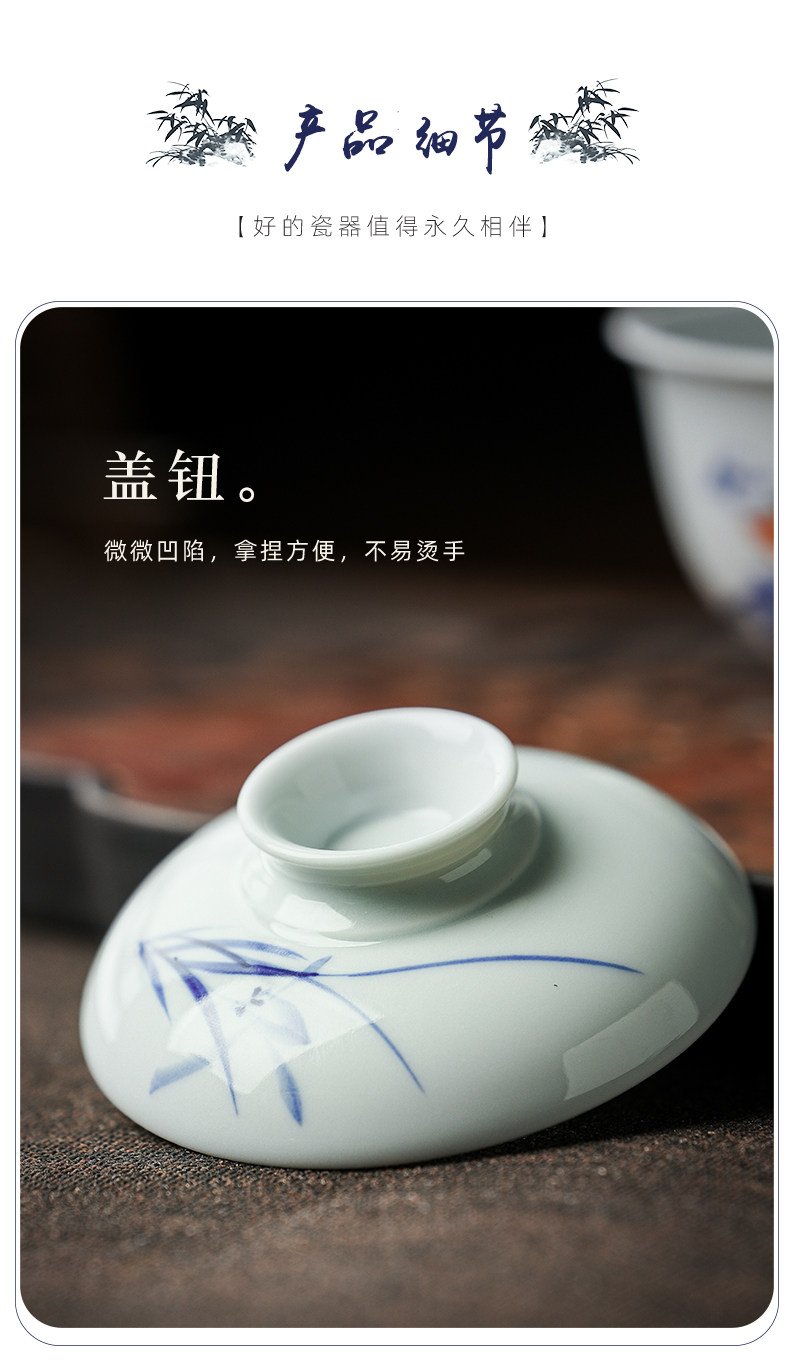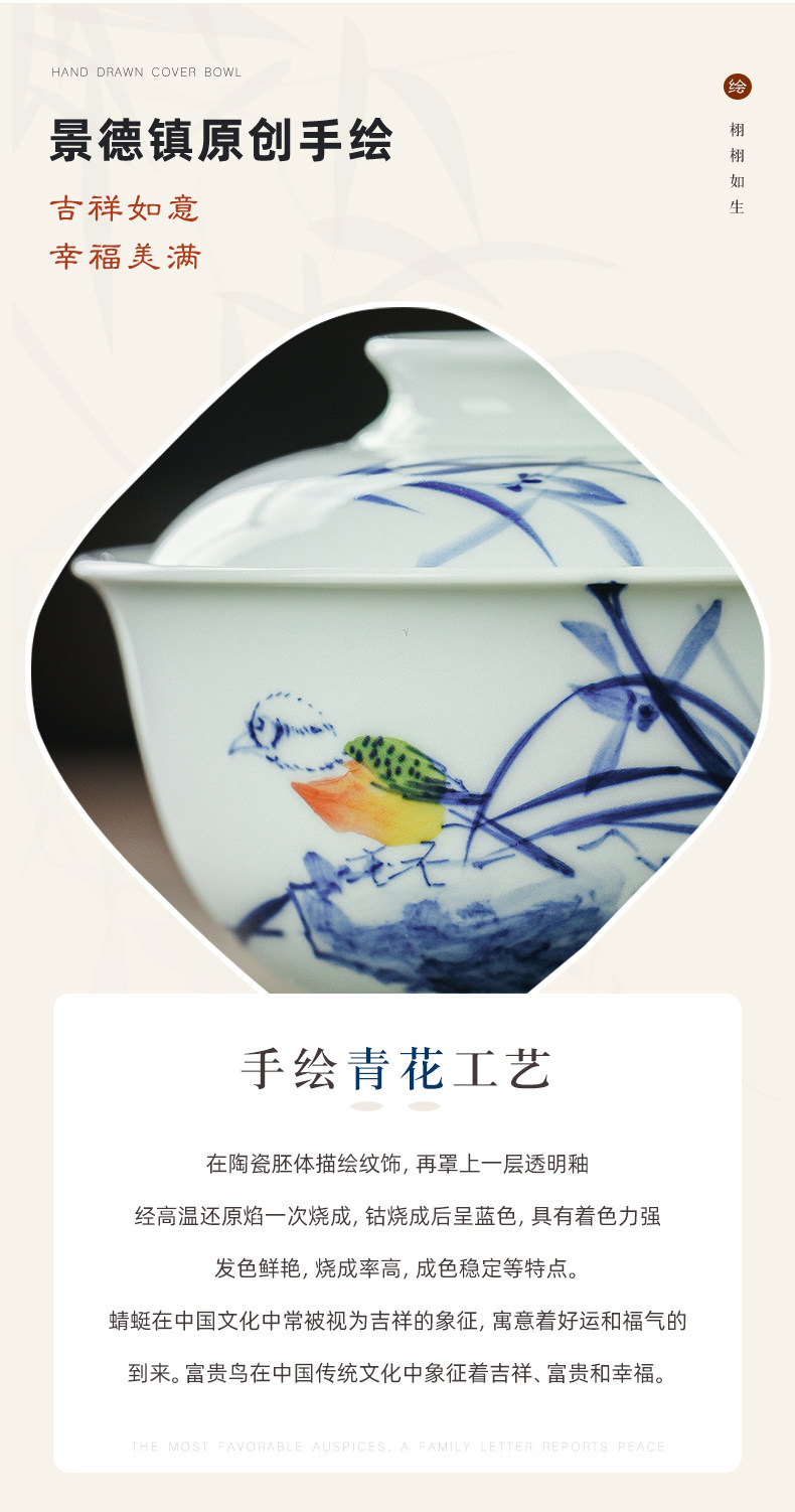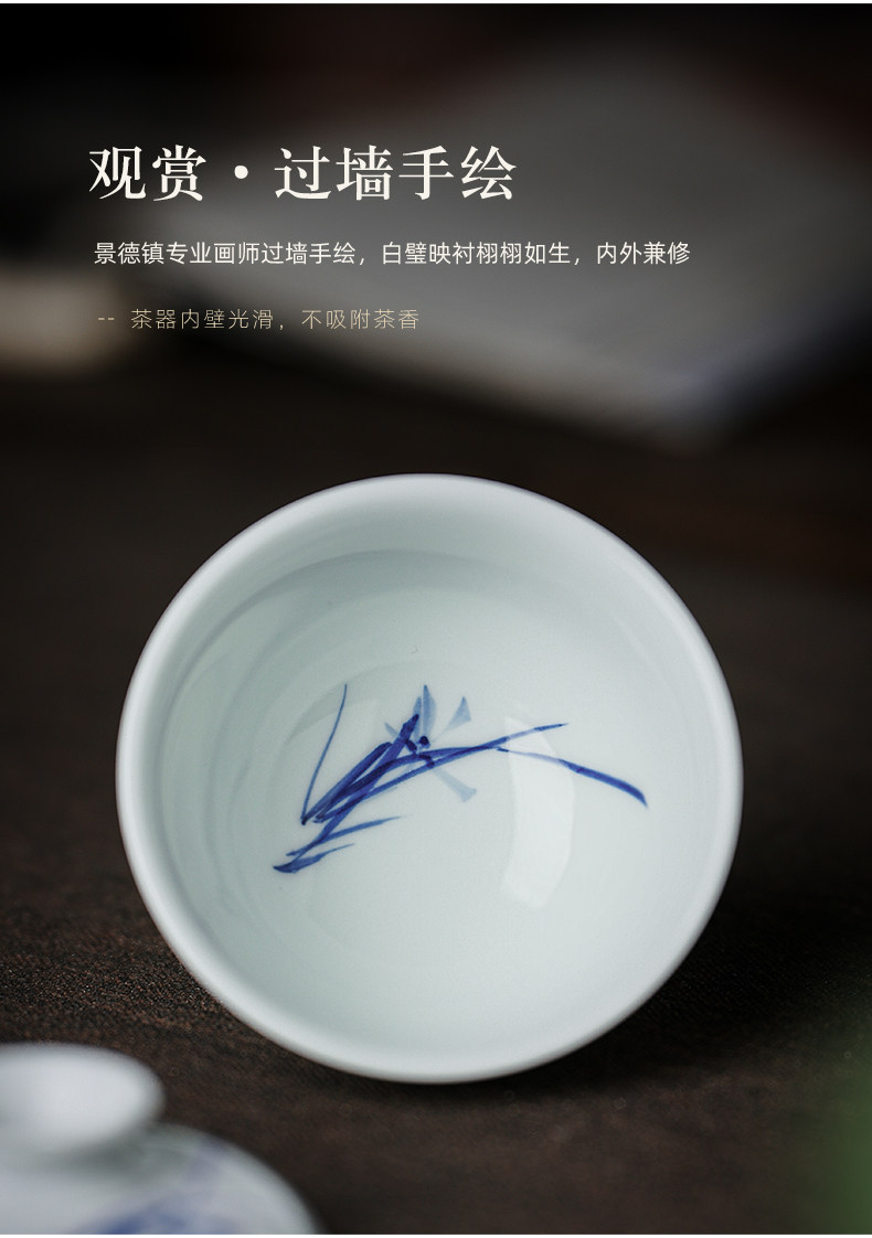 景德镇陶瓷釉下彩青花功夫茶具 岩茶小盖碗茶杯 单个高档茶碗泡茶