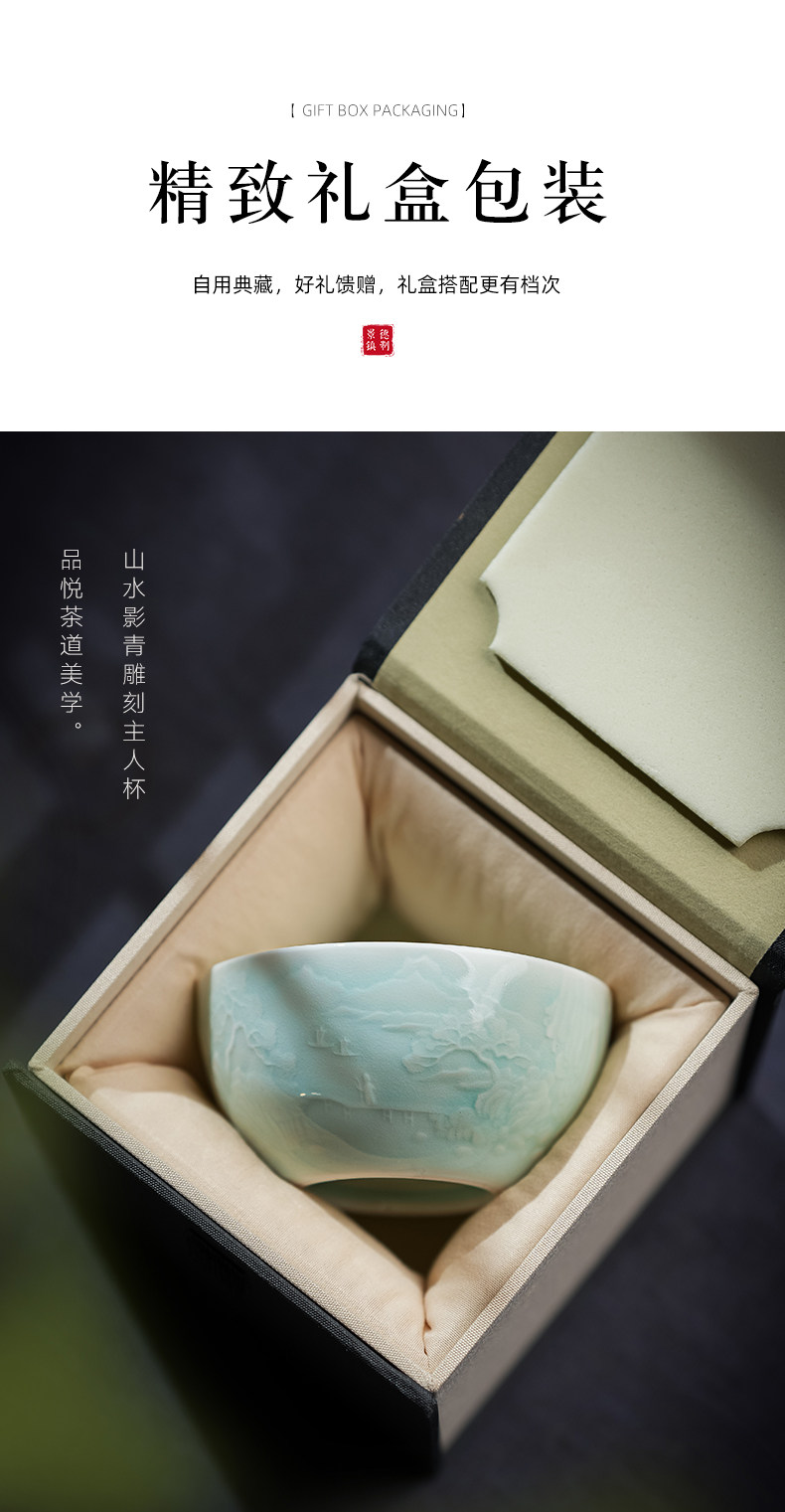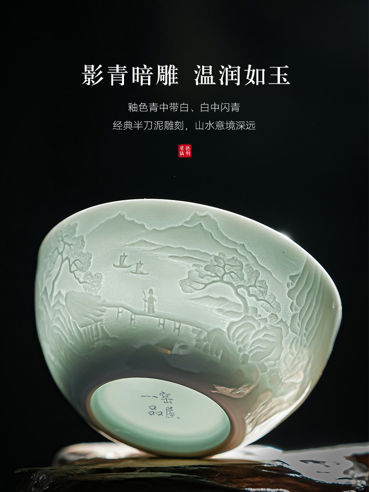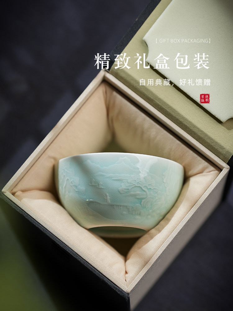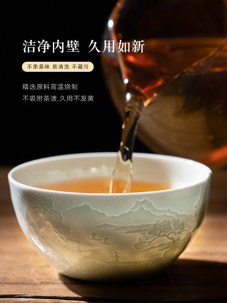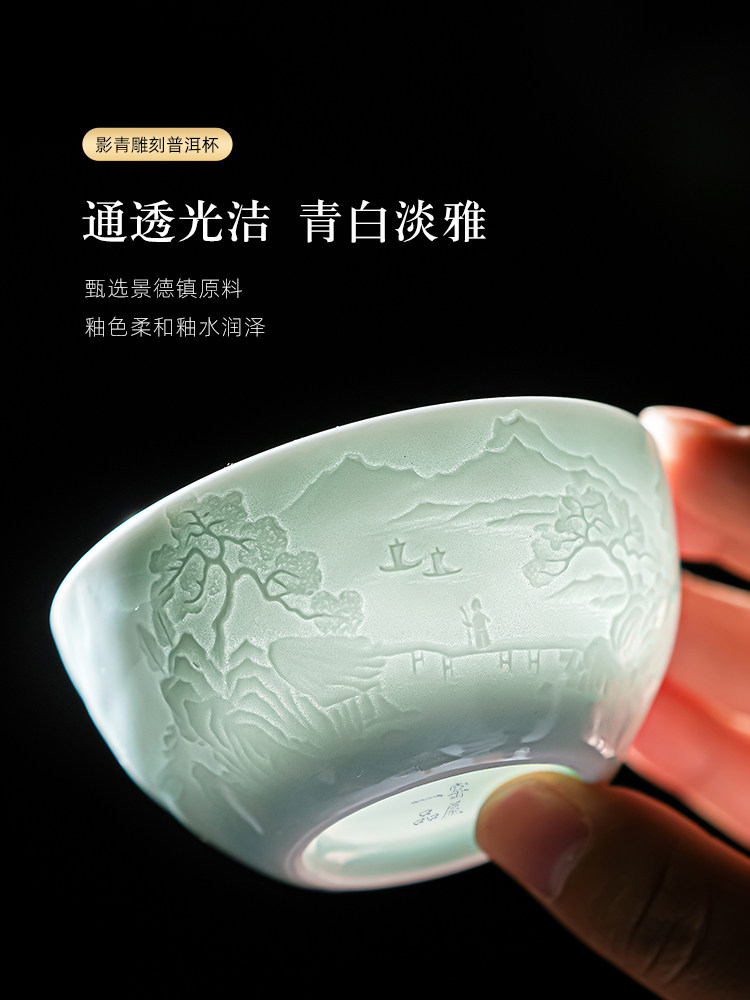 景德镇陶瓷功夫小茶杯单个主人杯单杯影青白瓷品茗杯喝茶杯普洱杯