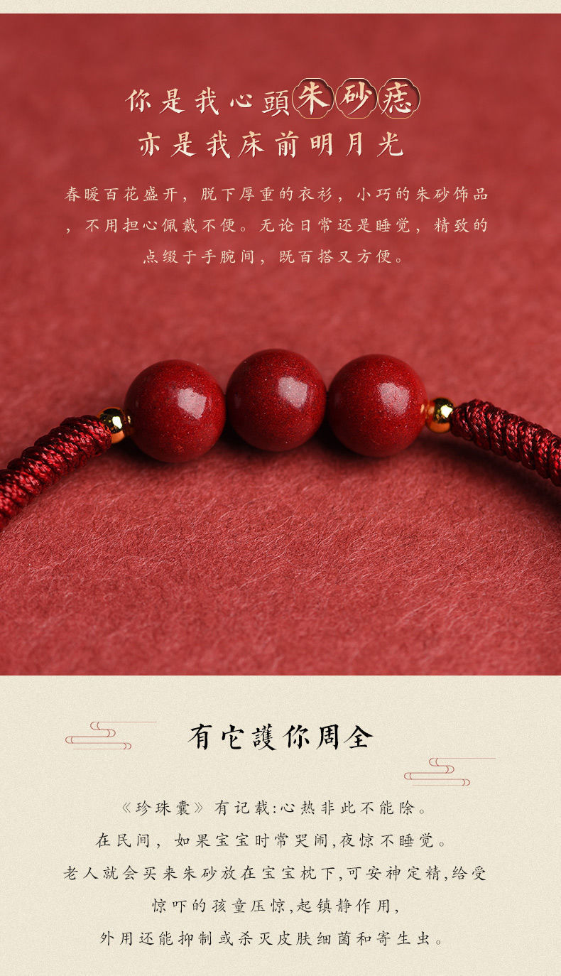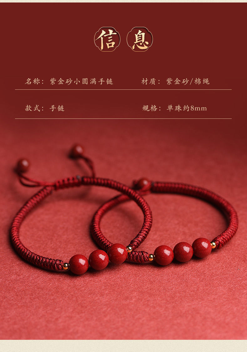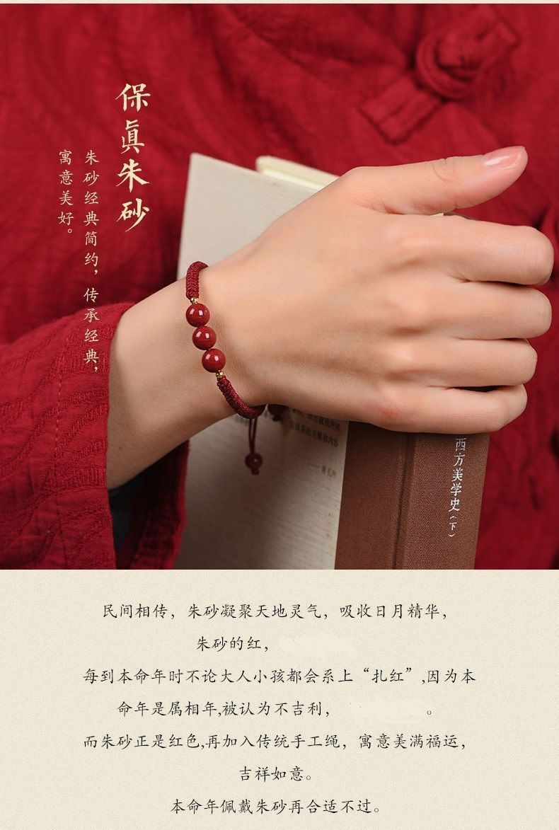 2024龙年本命年手工编织朱砂小圆满红绳手绳手链女朱砂手串自然