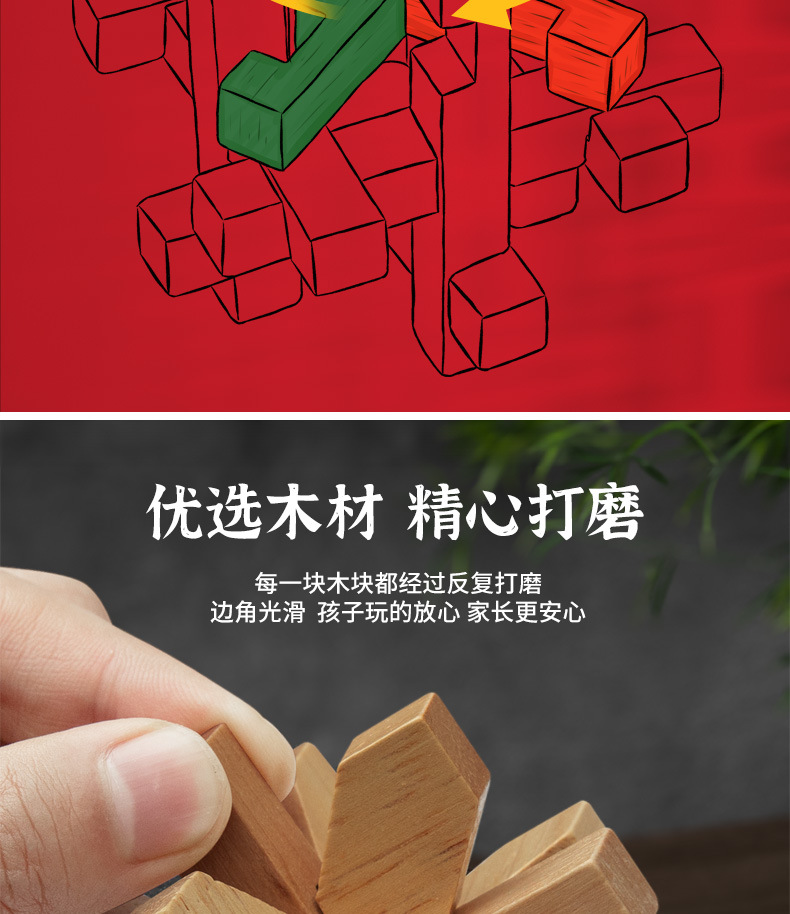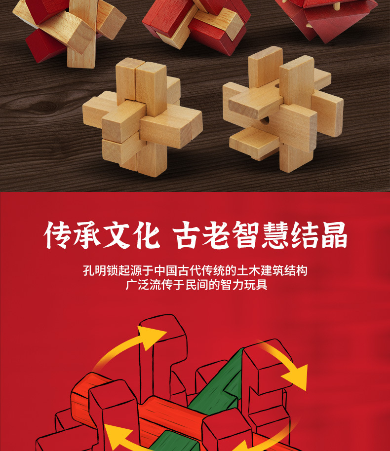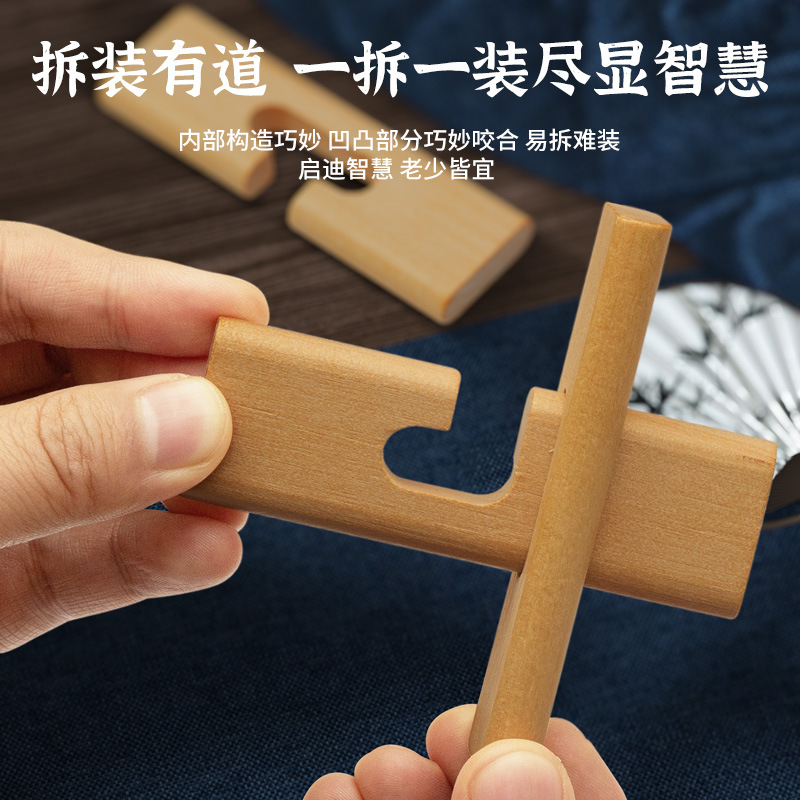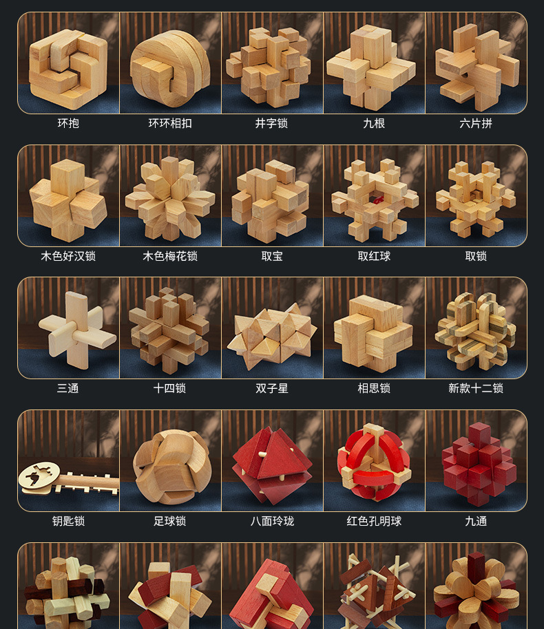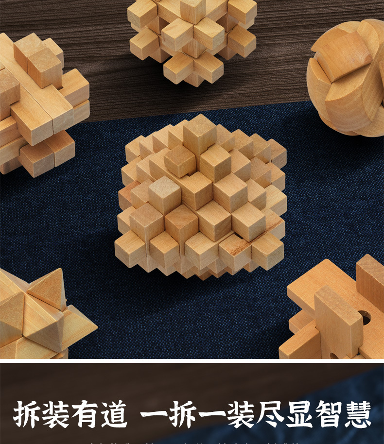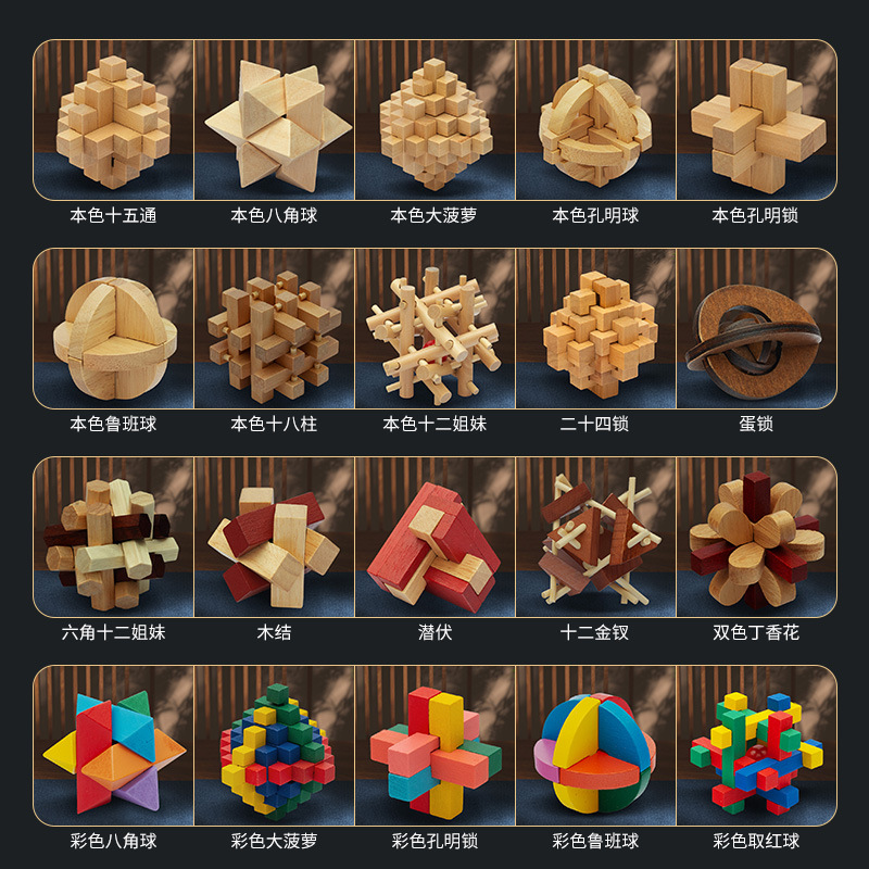 孔明锁鲁班锁全套智力解环套装小学生儿童木制益智玩具积木高难度