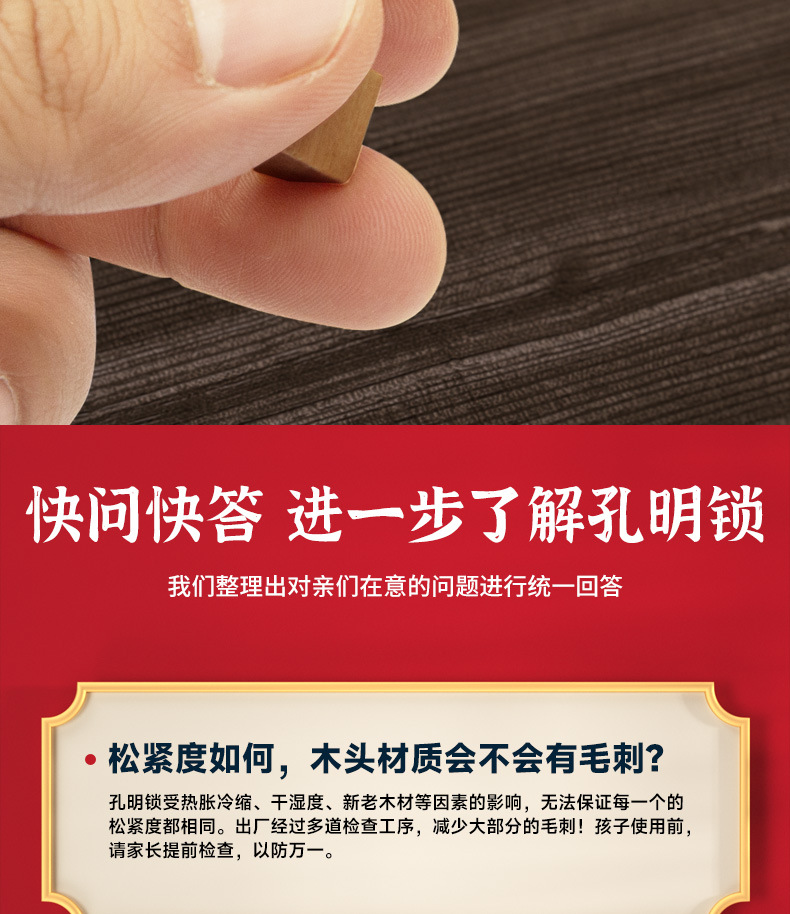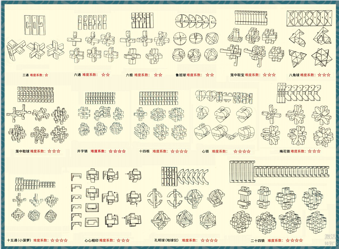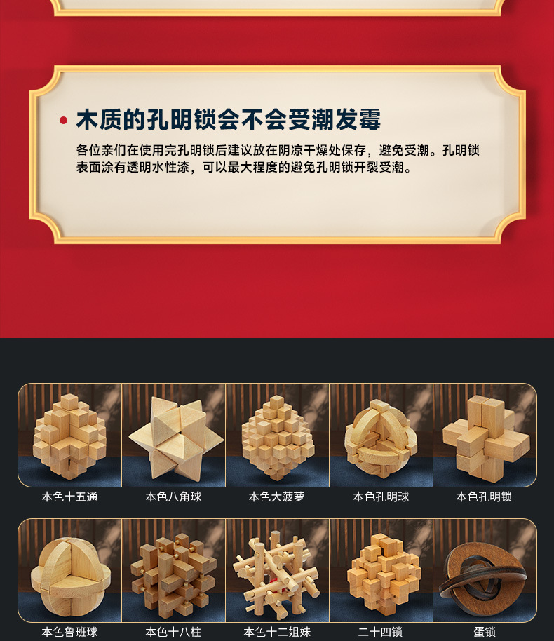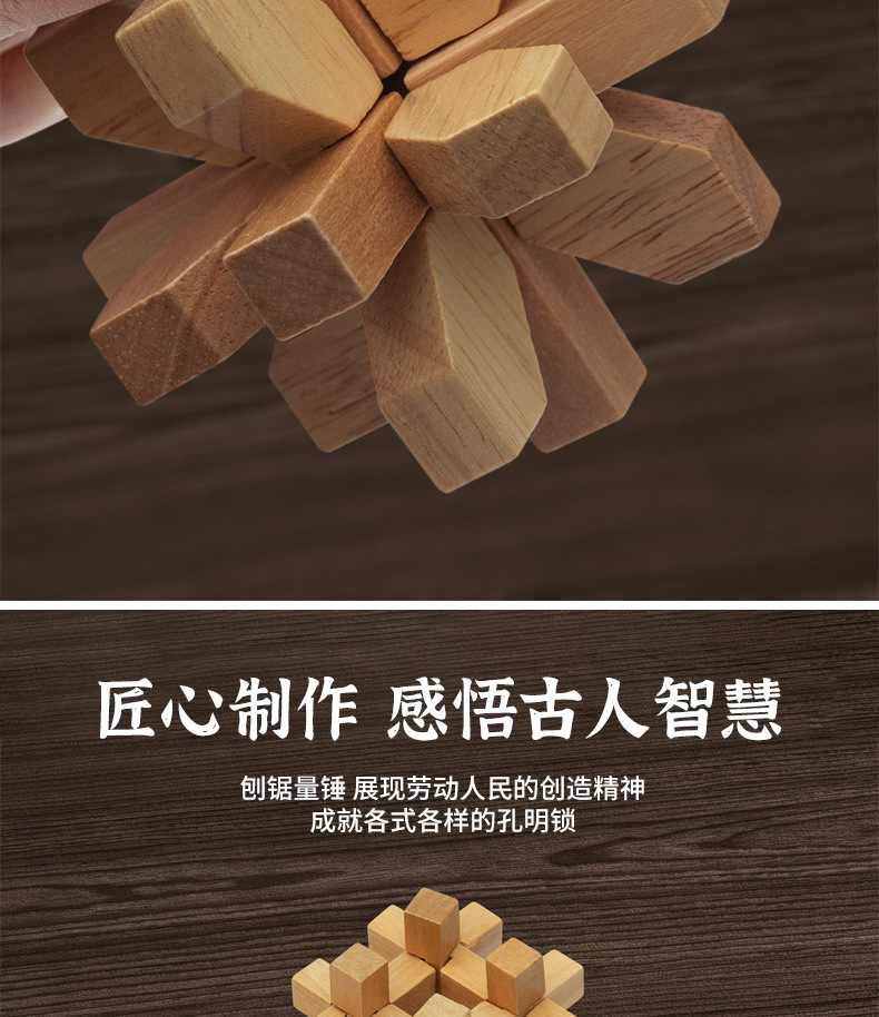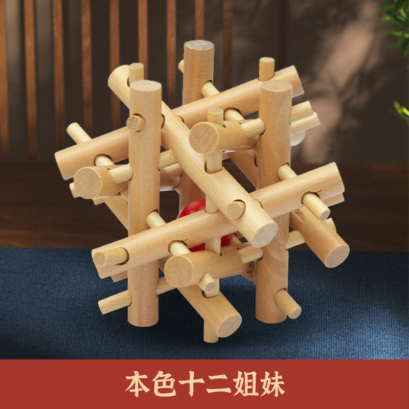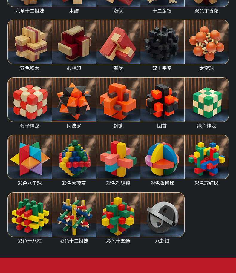 孔明锁鲁班锁全套智力解环套装小学生儿童木制益智玩具积木高难度