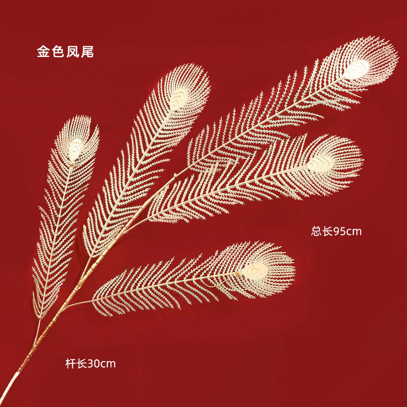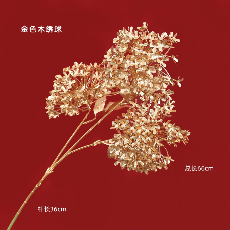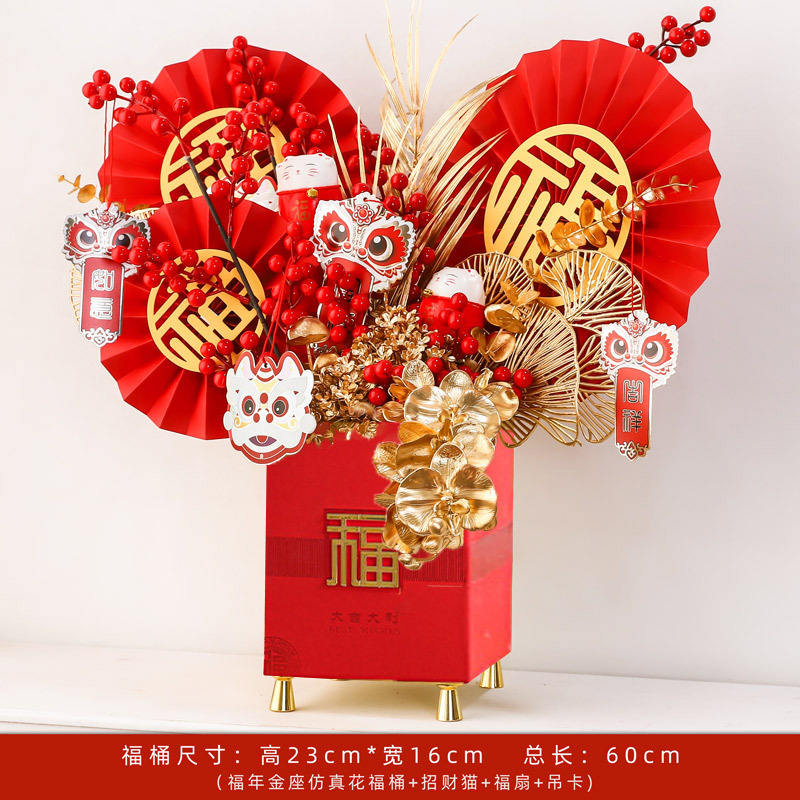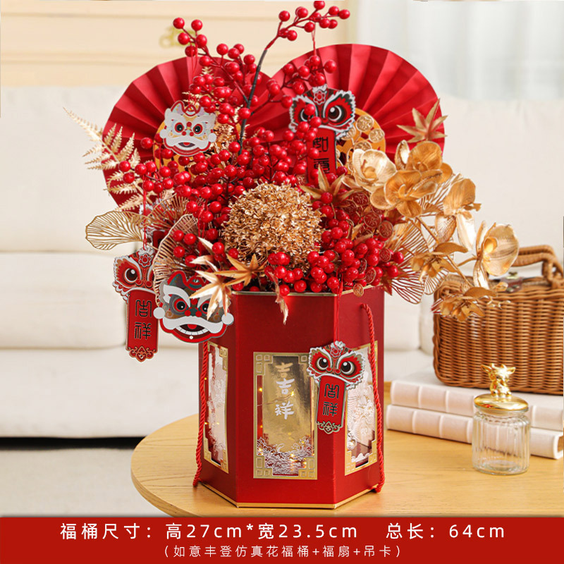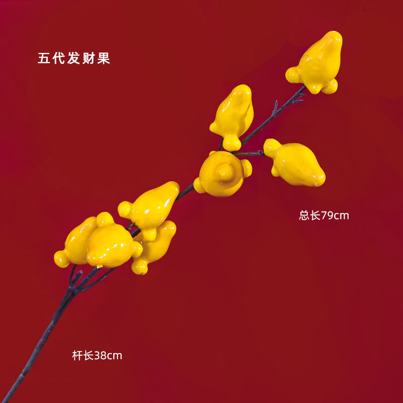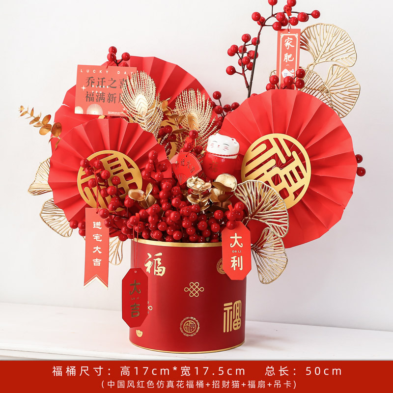 居家新年福桶插花仿真红果冬青果金色尤加利银杏叶发财果装饰摆件
