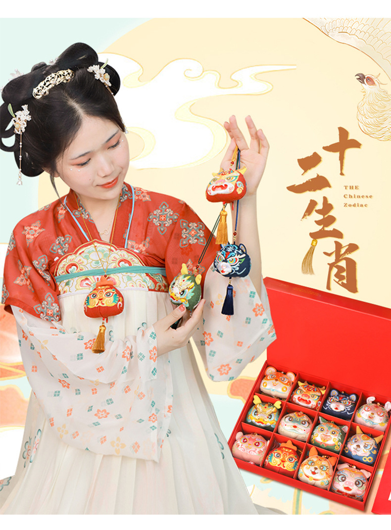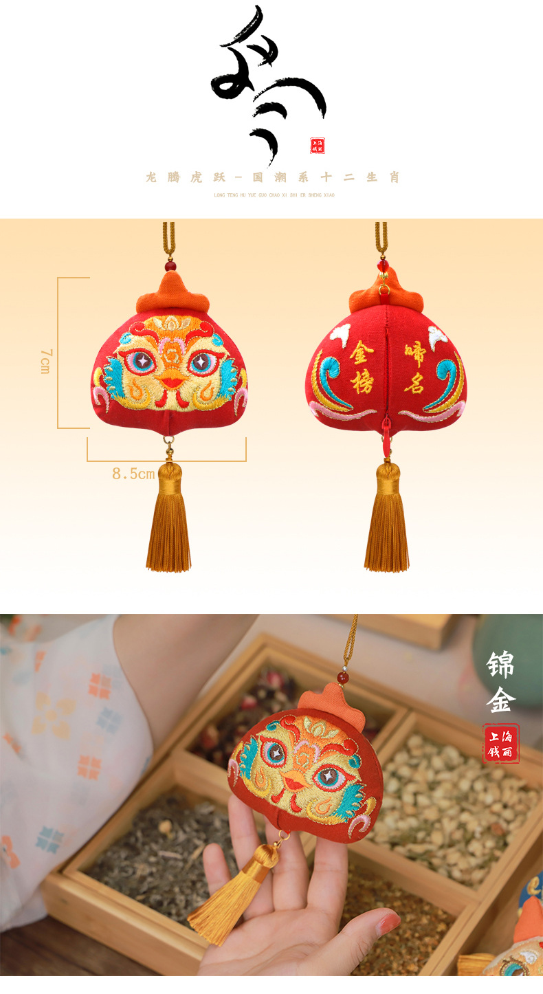 【钱丽】新年香包十二生肖香囊流苏香袋立体刺绣青龙平安福袋成品