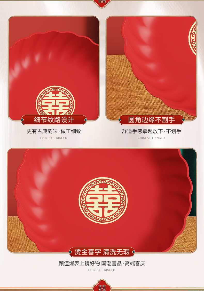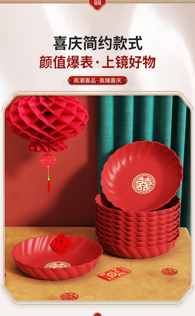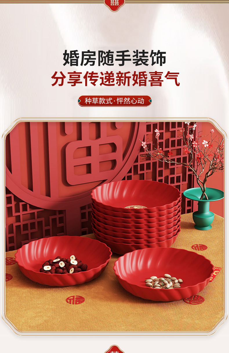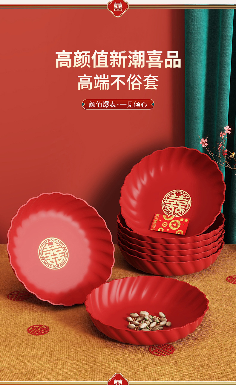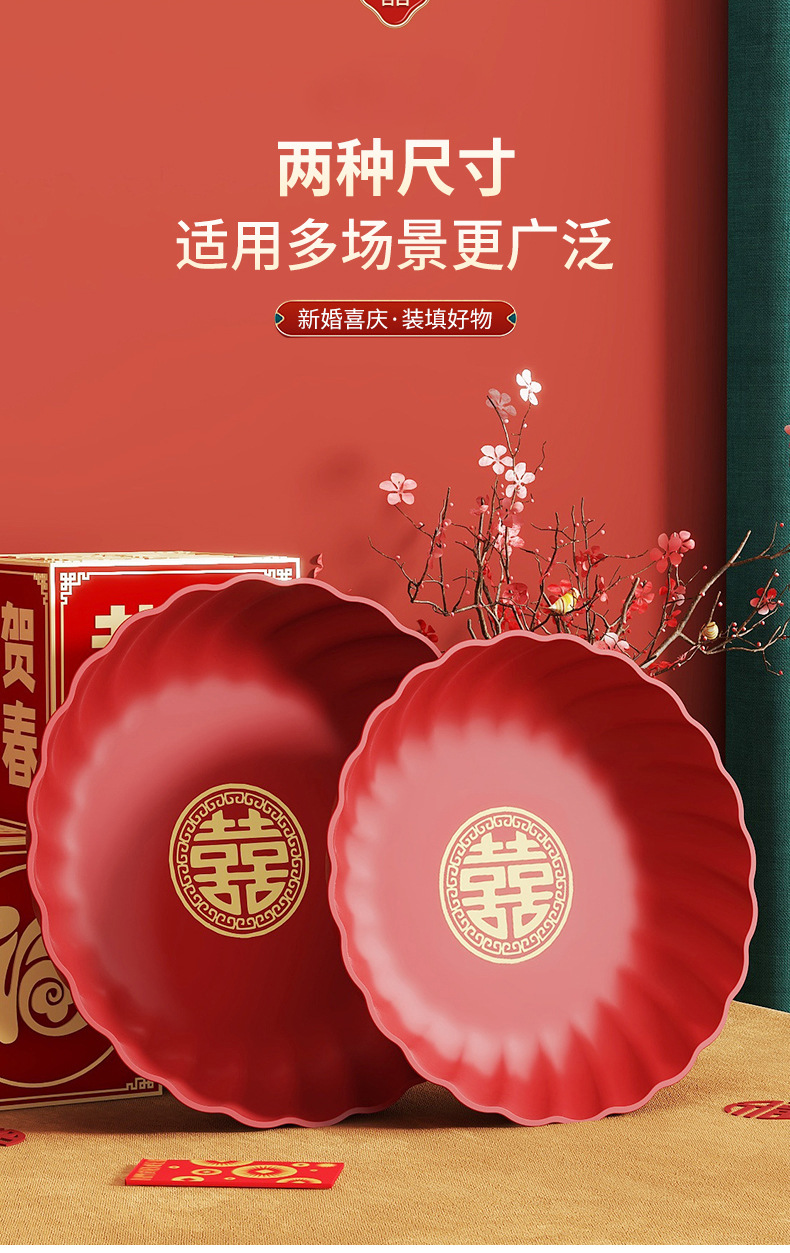 果盘过年红色喜庆瓜子糖果盘家用零食盘塑料喜字结婚庆水果盘新年