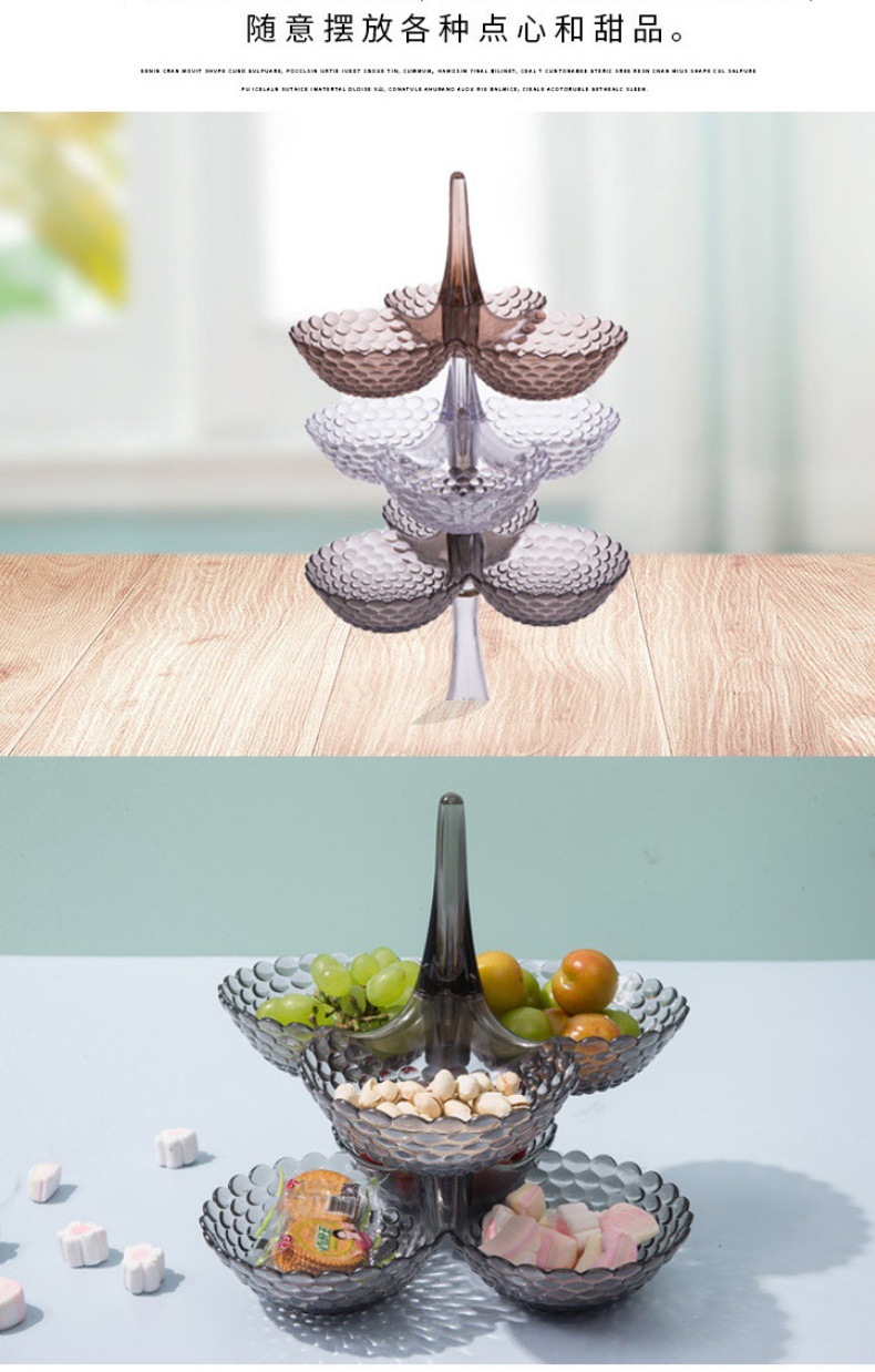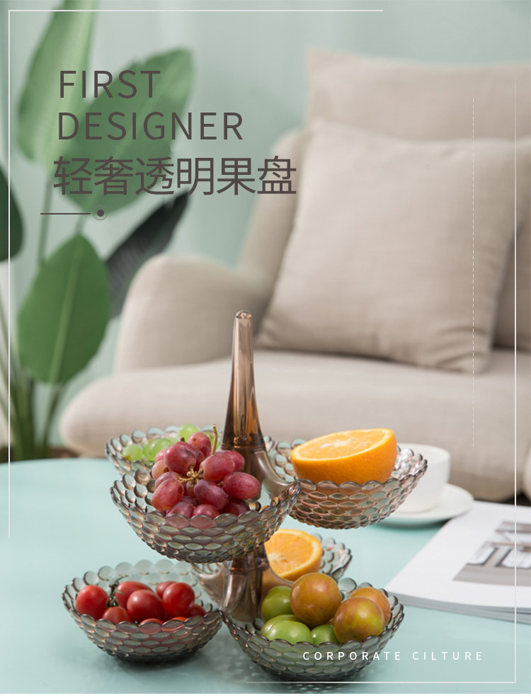 果盘客厅高颜值批发家用轻奢塑料透明水果高脚多层中式茶点水果盘