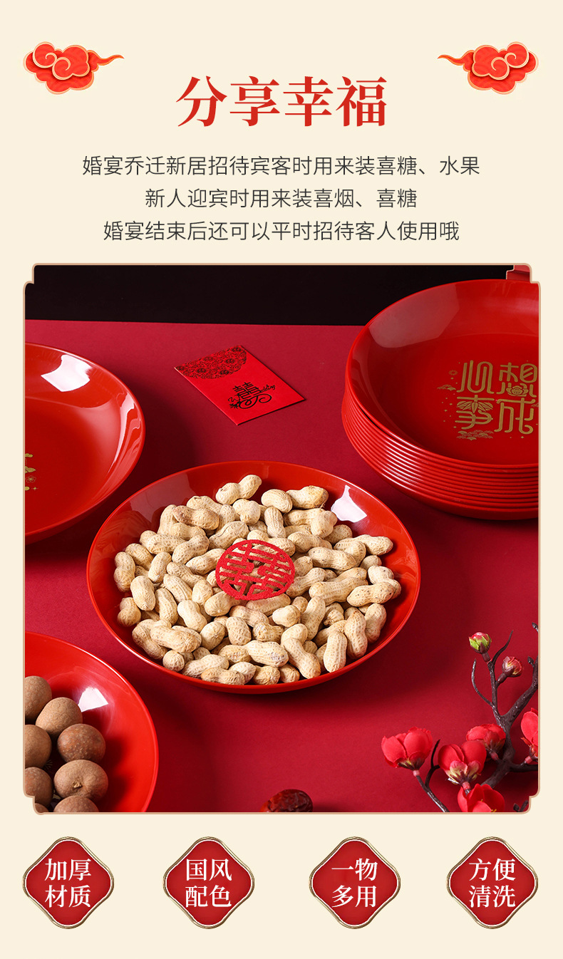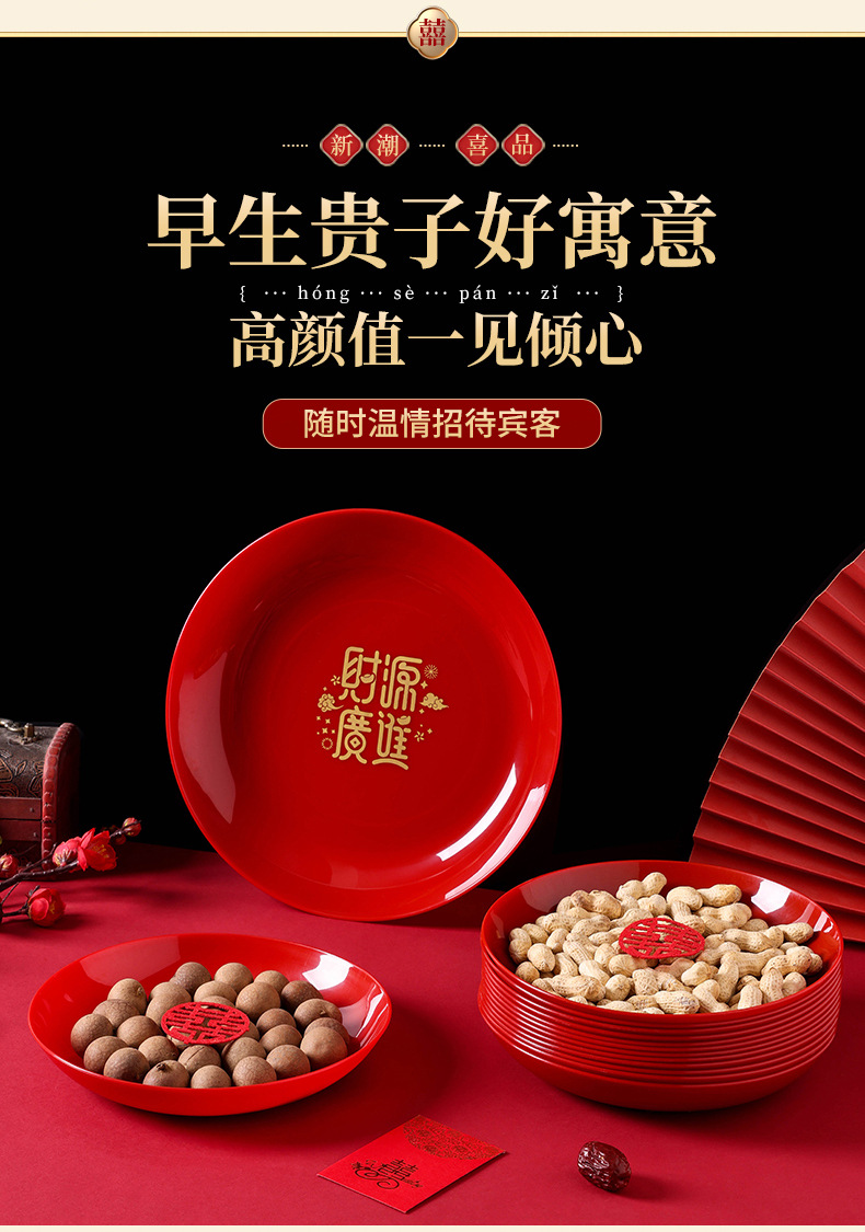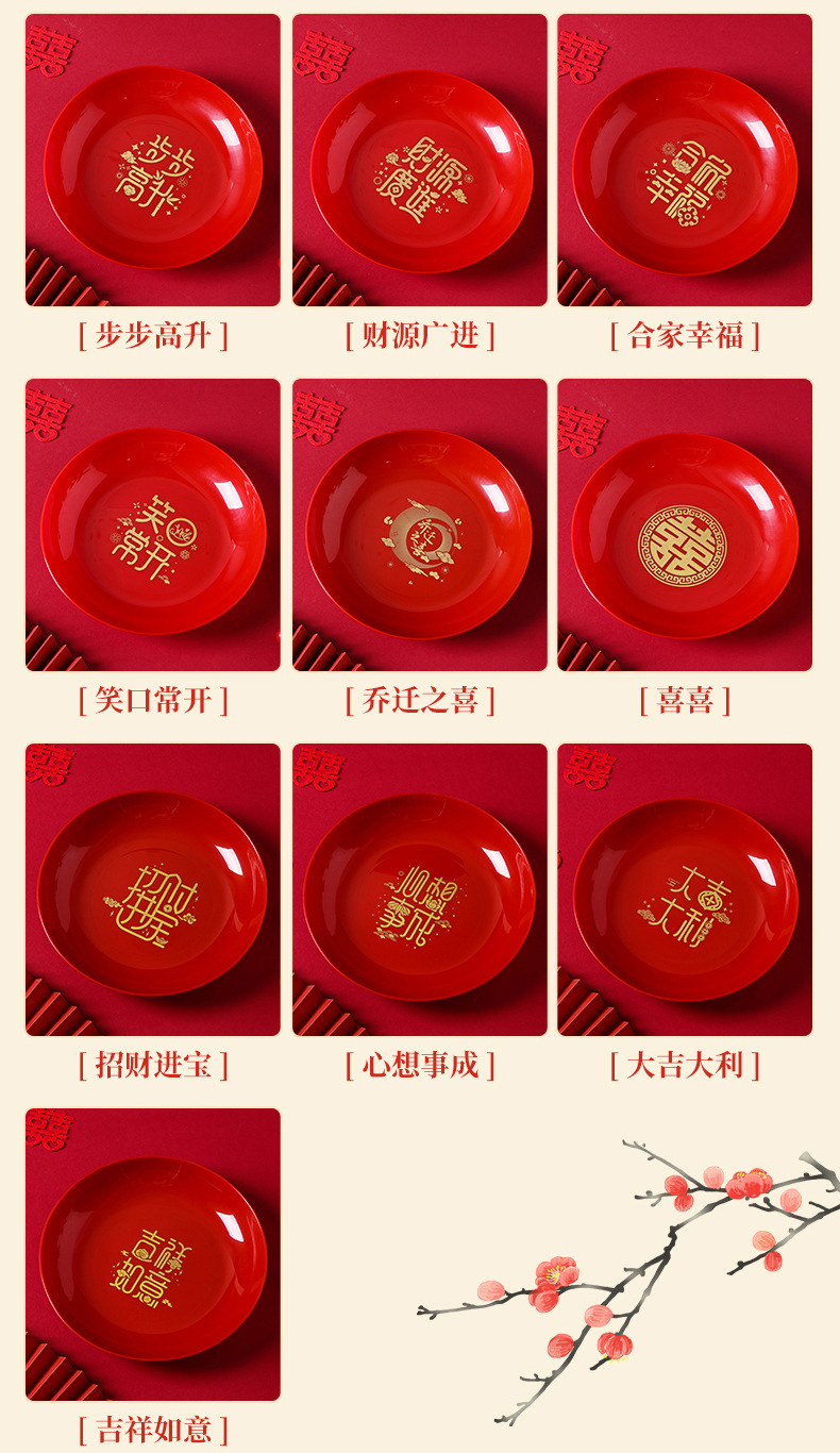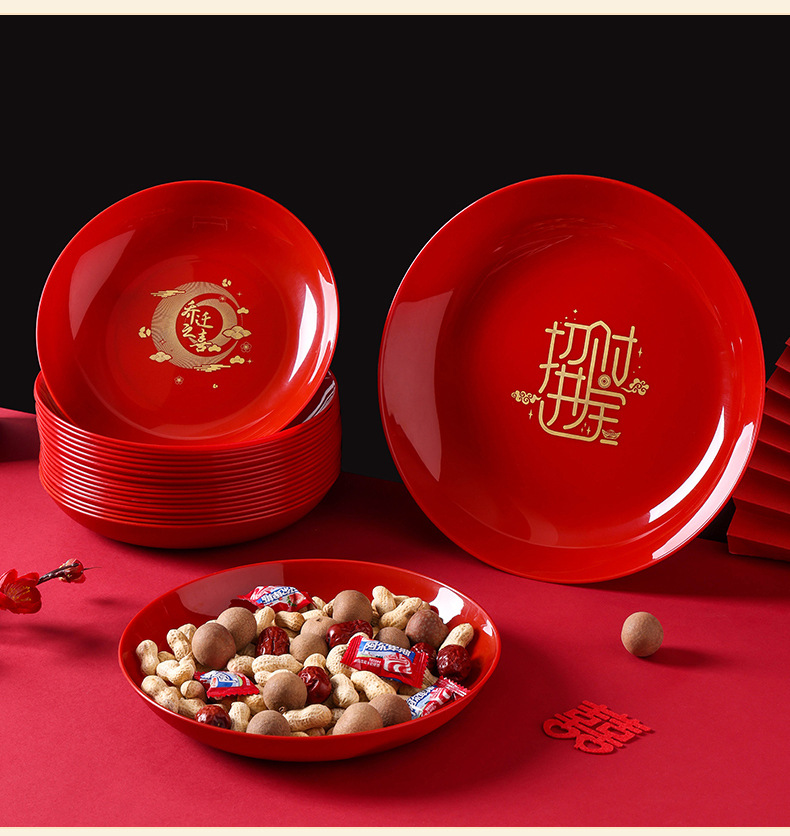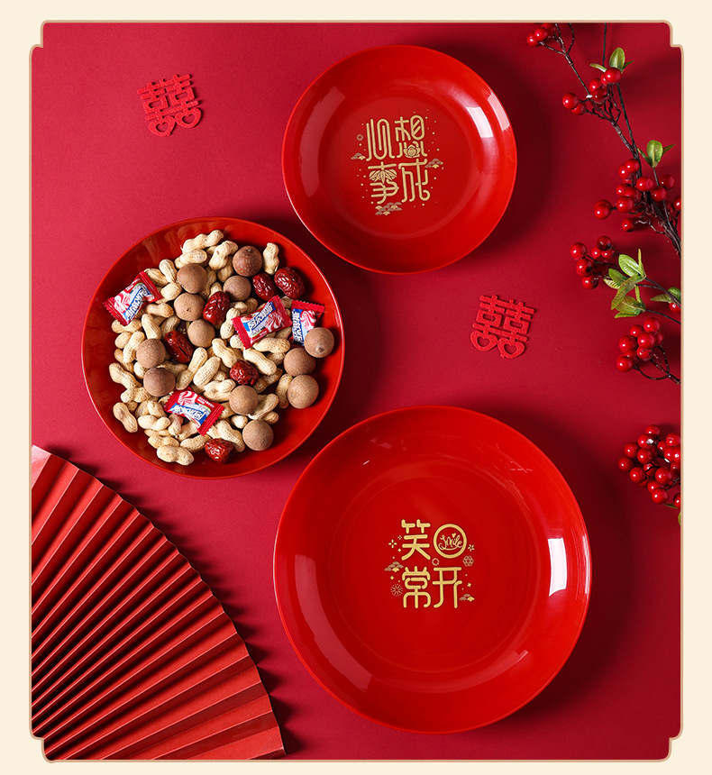 乔迁之喜果盘红色搬家入宅新家装饰布置开业喜庆干果盆糖果零食盘
