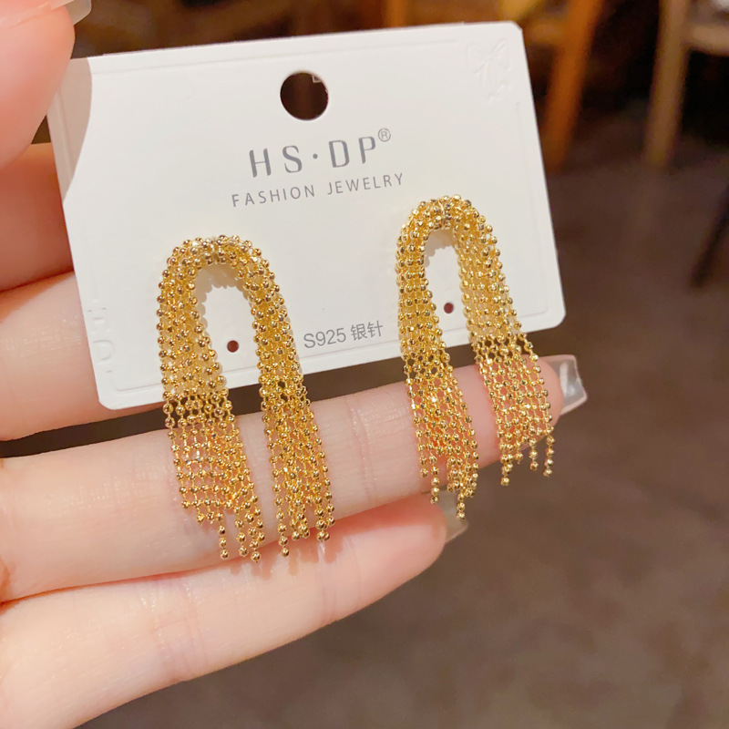 抖音热门同款推荐100款925银针耳环耳坠经典几何长款流苏耳饰批发
