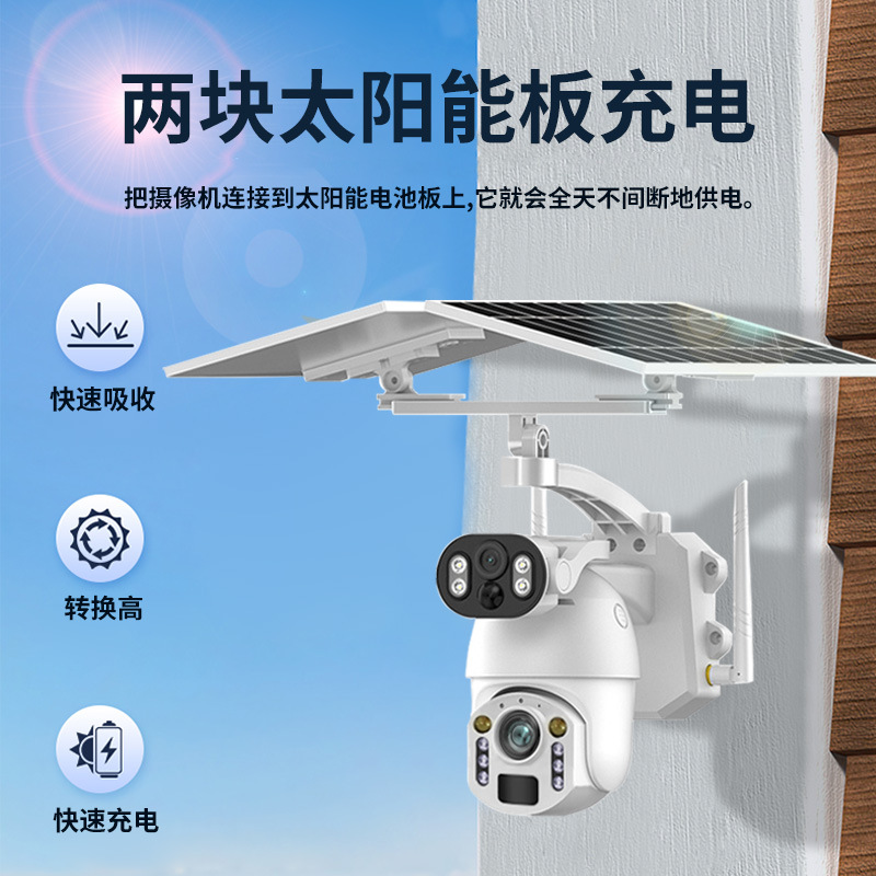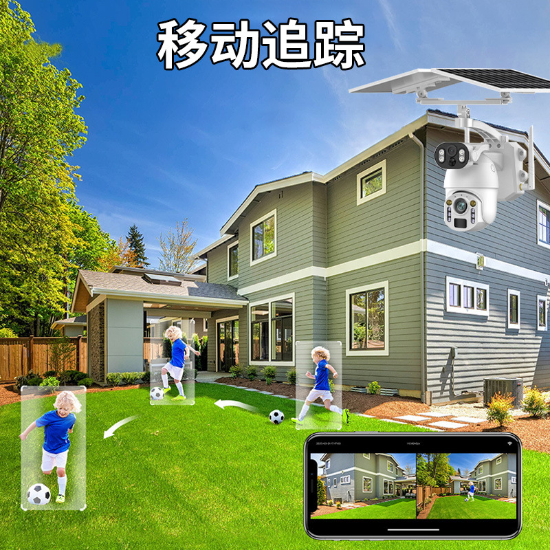太阳能摄像头 60倍变焦高清无线免插电双画面监控器360可视厂家