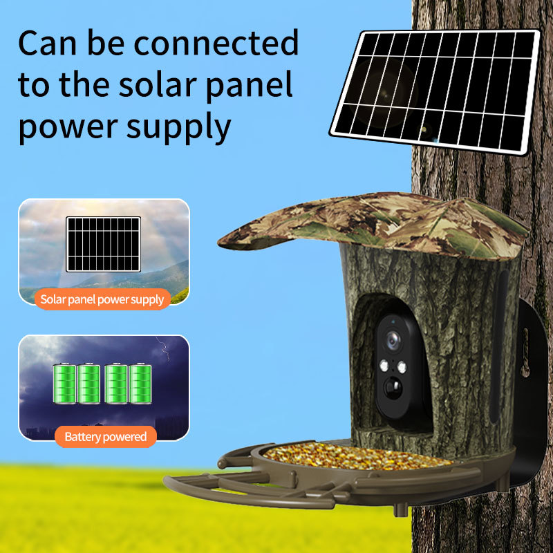 AI智能观鸟摄像头 家用庭院喂养投食器识别鸟类太阳能户外摄像头