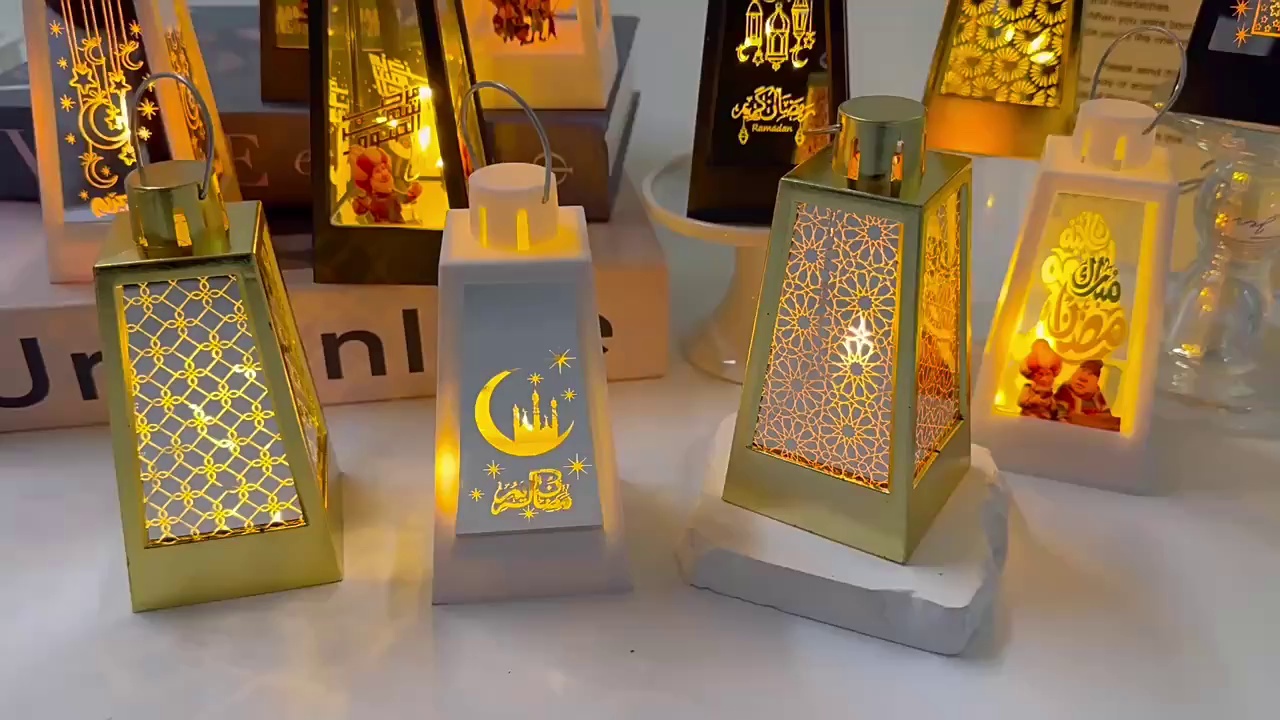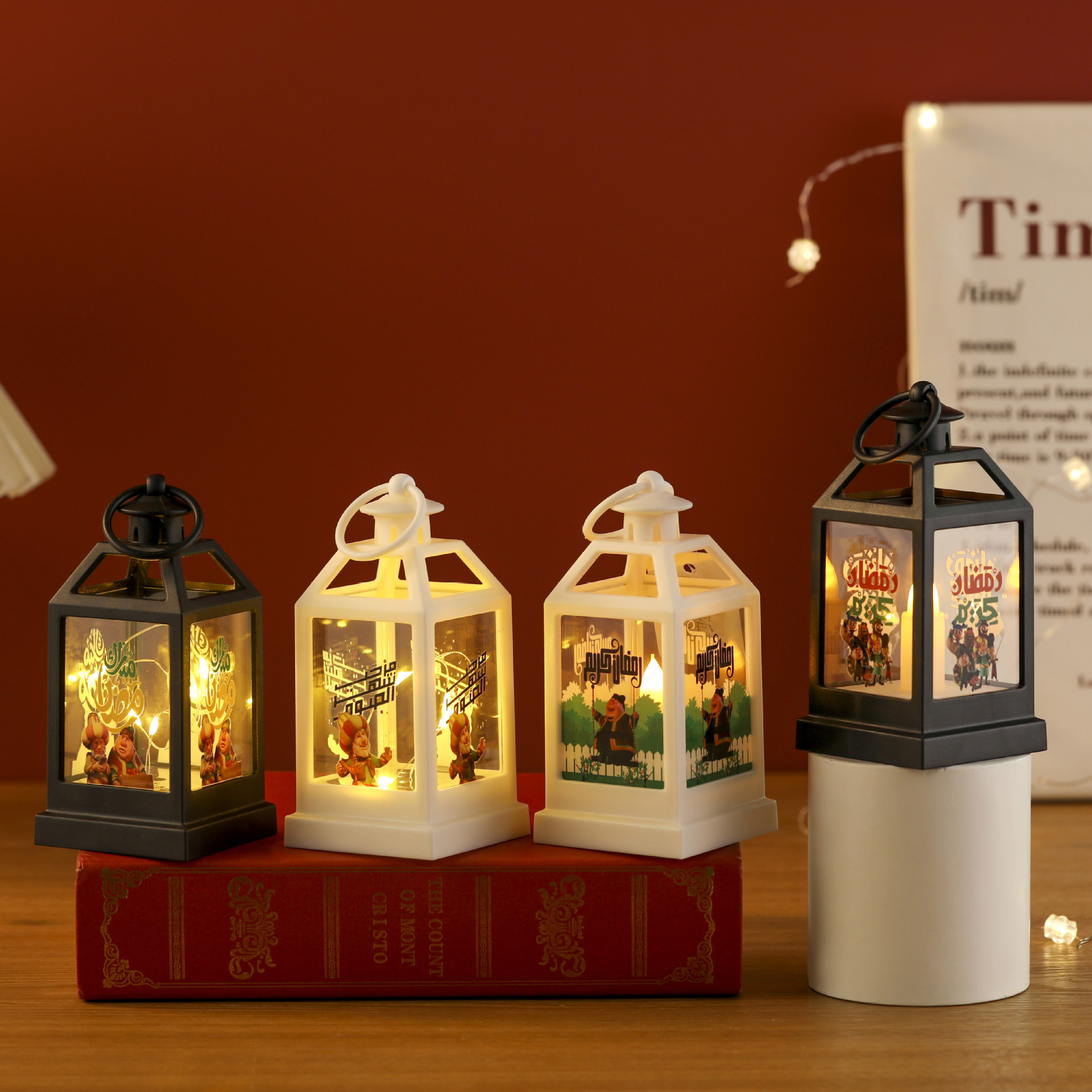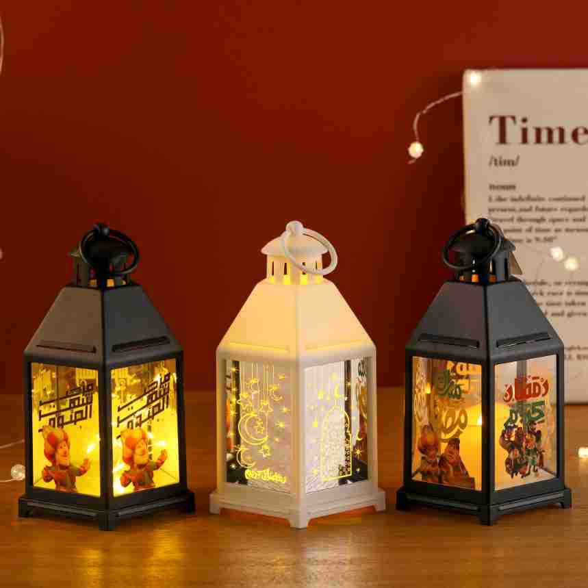 跨境新款烛台风灯中东节庆LED灯笼电子蜡烛家居装饰道具塑料风灯