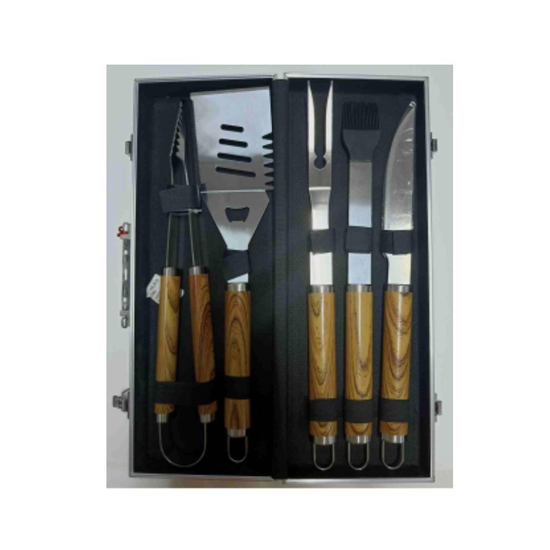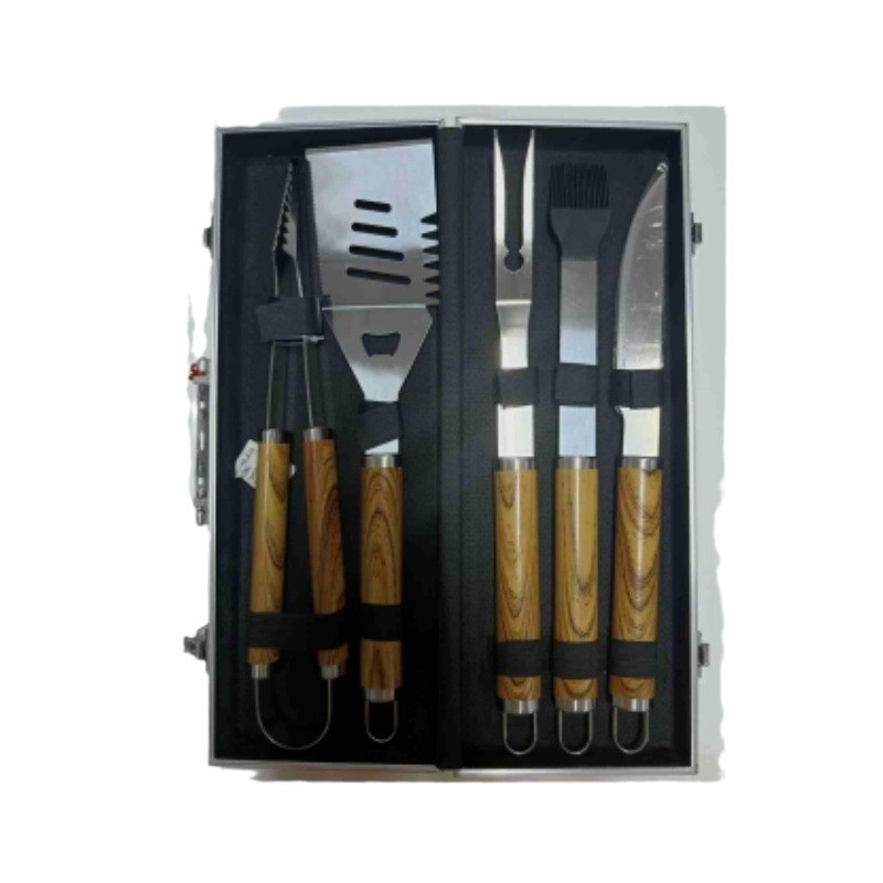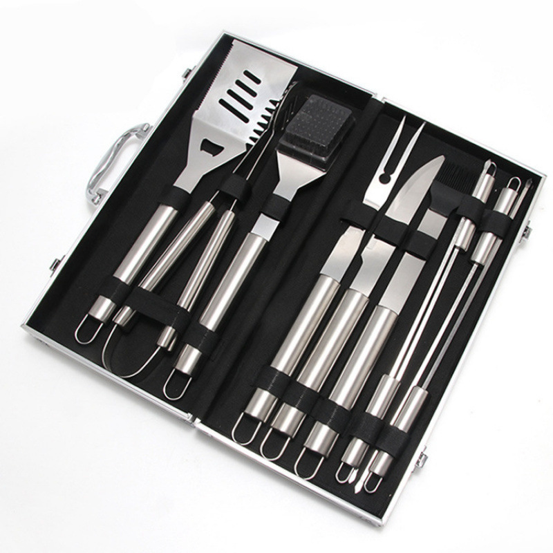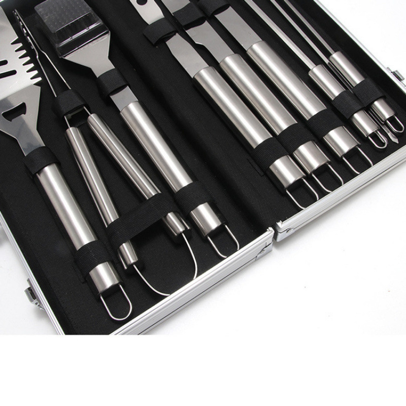 亚马逊跨境不锈钢烤具户外工具套装BBQ塑料手柄布袋烧烤组合套装
