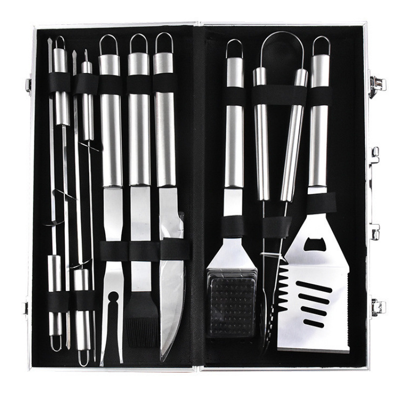 亚马逊不锈钢烤具套装烧烤组合工具 户外野炊BBQ烧烤套装烤具套装